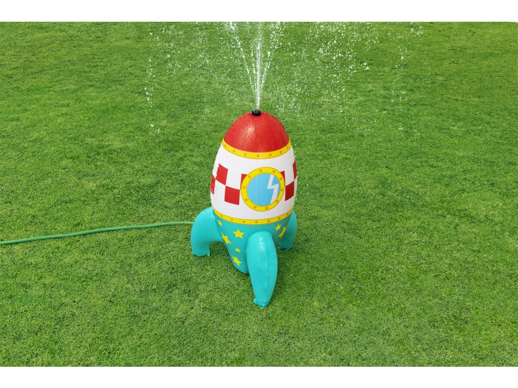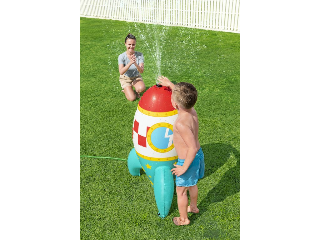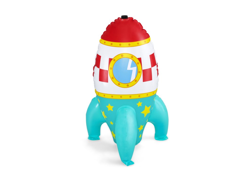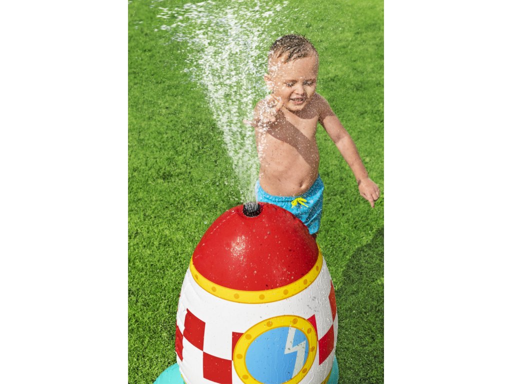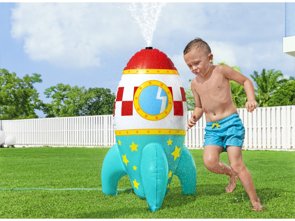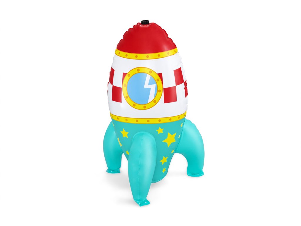Zábavná zahradní fontána ve tvaru rakety. Bezpečnostní ventily pro snadné nafouknutí a vyfouknutí. Rozměr 64 x 61 x 102 cm, Balení: 19,8x19,8x8cm. Věk: 2+