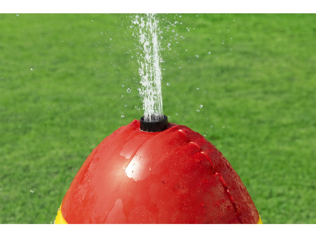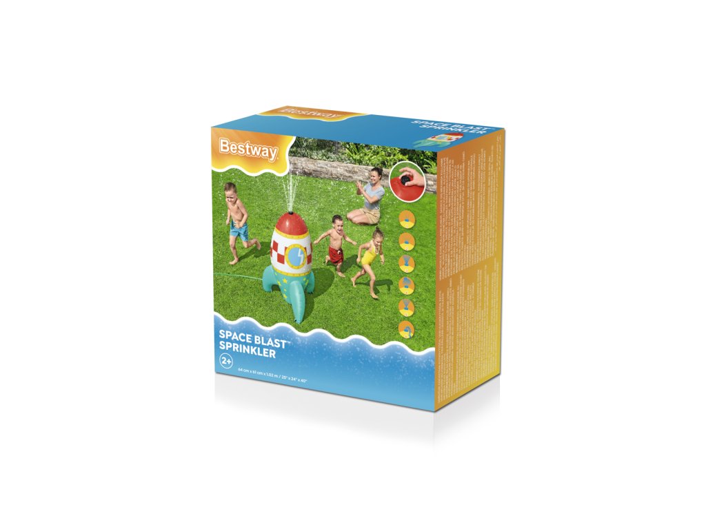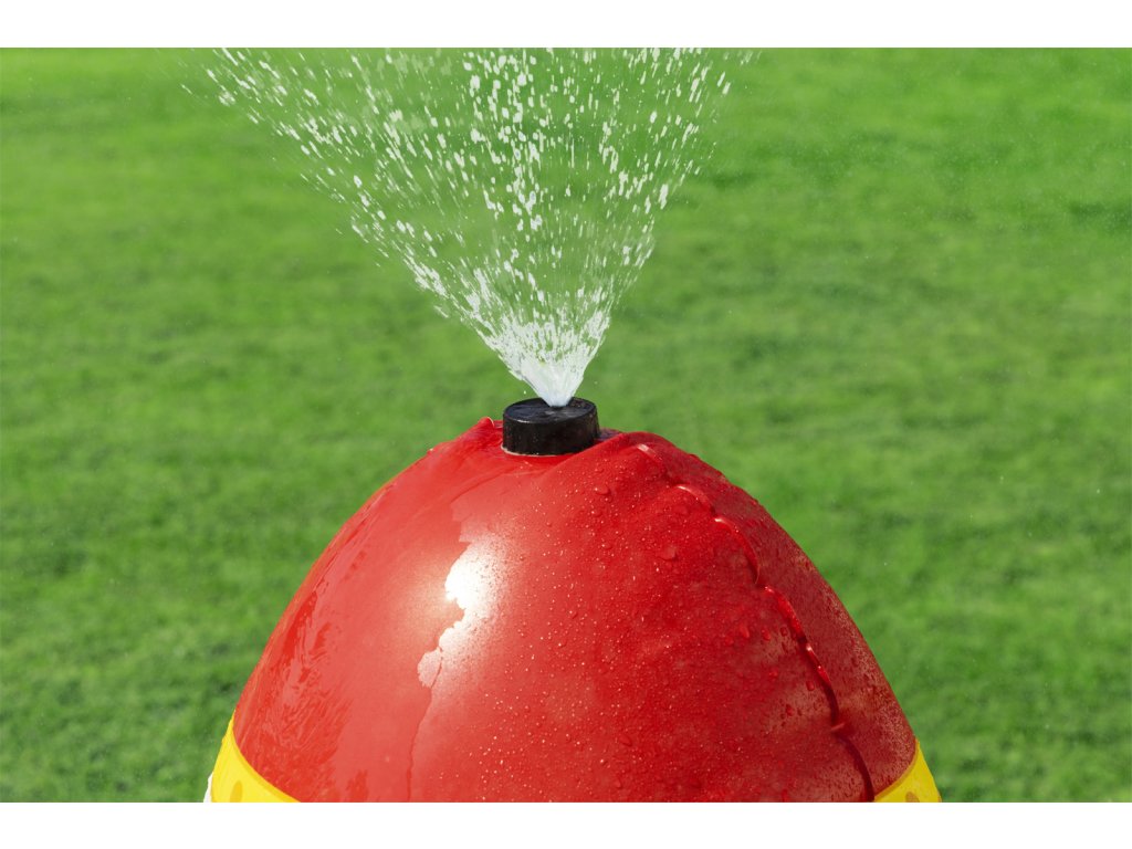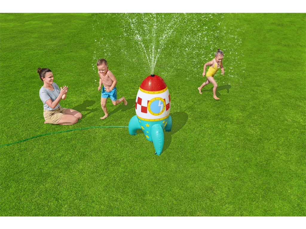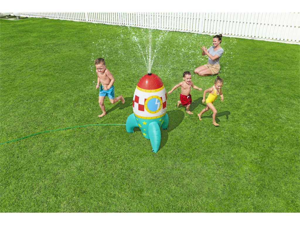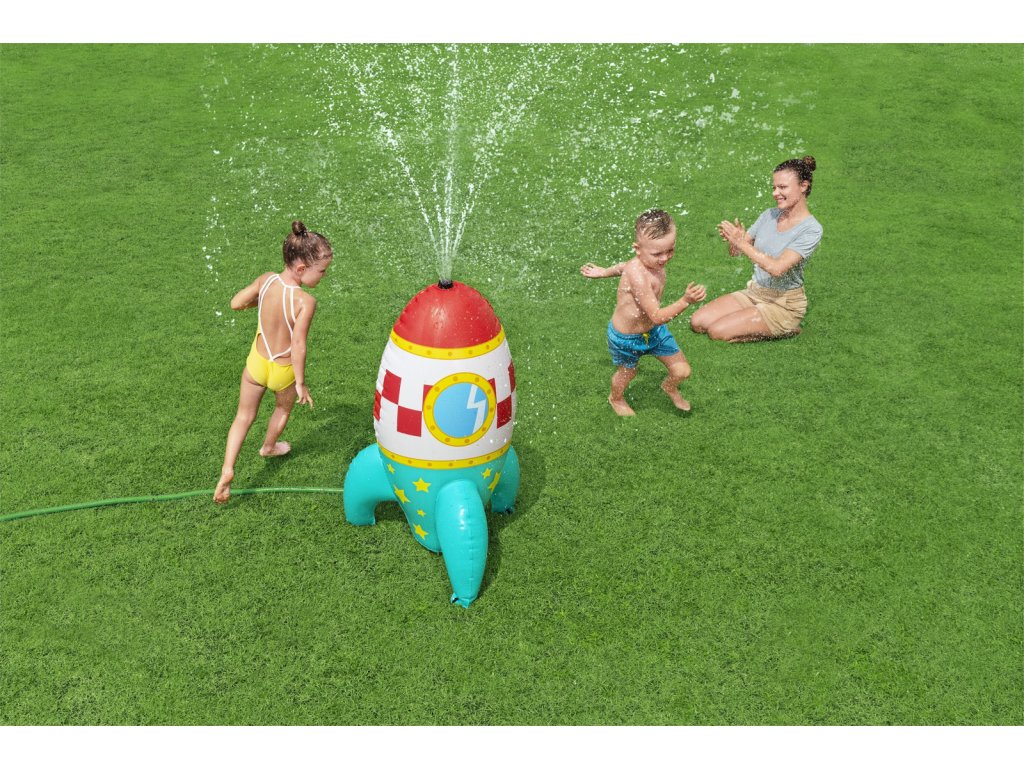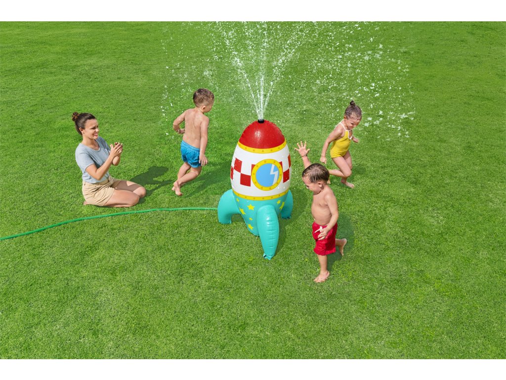 Zábavná zahradní fontána ve tvaru rakety. Bezpečnostní ventily pro snadné nafouknutí a vyfouknutí. Rozměr 64 x 61 x 102 cm, Balení: 19,8x19,8x8cm. Věk: 2+