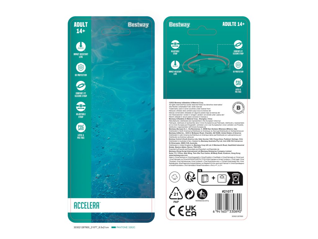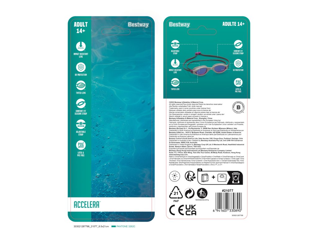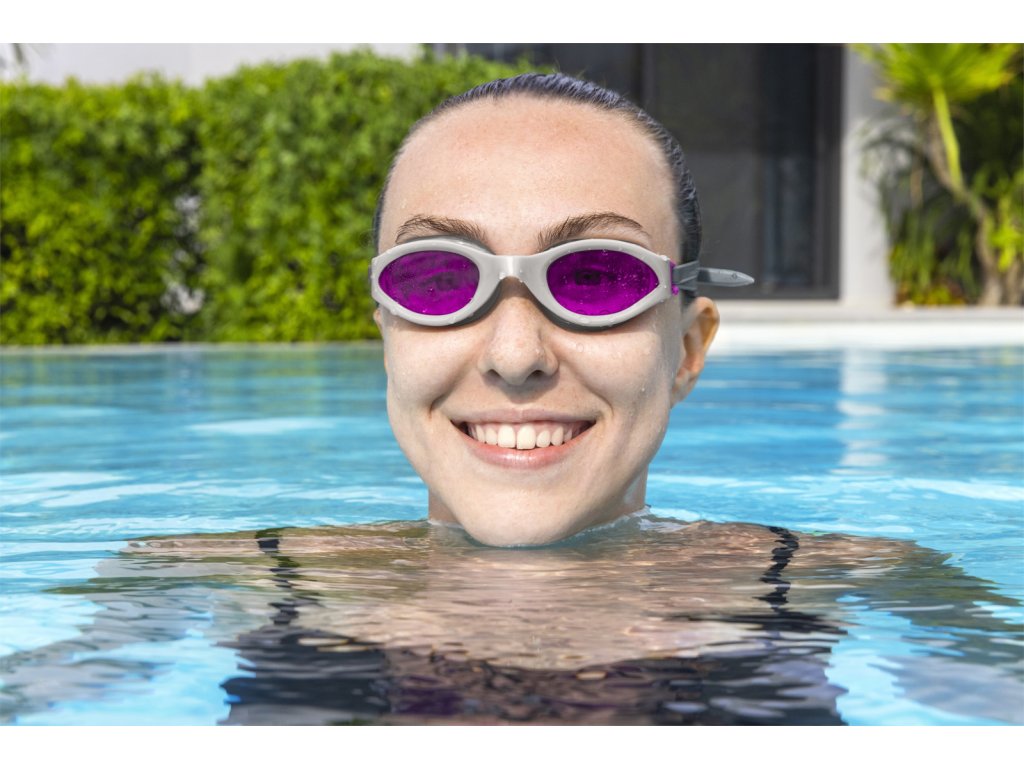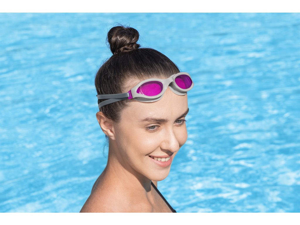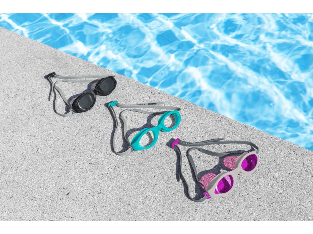 Bestway plavecké brýle IX-1400 mají měkké obruby z jednoho kusy a pohodlné očnice. Polykarbonátové, zabarvené čočky s ochrannou vrstvou proti UV záření. Povrch odolný proti zamlžení. Plně nastavitelný silikonový pásek. 100% bez latexu. 3 barevné proveden(růžová,modrá, šedáí. Věk: 14+