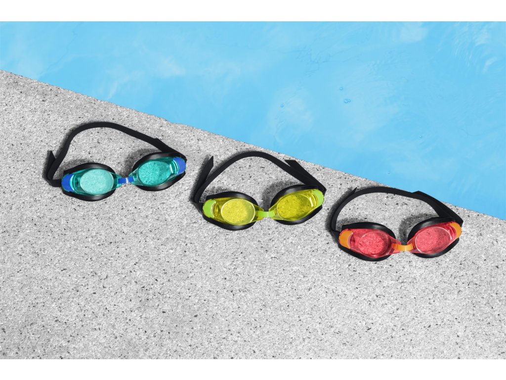 Bestway plavecké brýle FOCUS mají měkké, pohodlné a přiléhající očnice. Kouřová skla s vysokým rozlišením a povrchem chránícím proti UV záření. Plně nastavitelný nánosník a silikonový pásek na hlavu. 100 % bez latexu. 3 barevné provedení - zelená, žlutá, červená. Obsahuje: 1 plavecké brýle. Věk: 7+