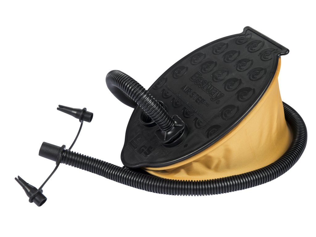 Nožní dvoučinná pumpa k nafukování všech hraček do vody, člunů, kruhů atd. Pumpa je vyrobena z odolného plastu. Pumpa má ohebnou hadici, 3 vyměnitelné nástavce, objem 3000 cc. Snadné přepnutí nafukování a vyfukování. Rozměr: 28 x 19 cm. Hmotnost: 0,53 kg. Věk: 3+.