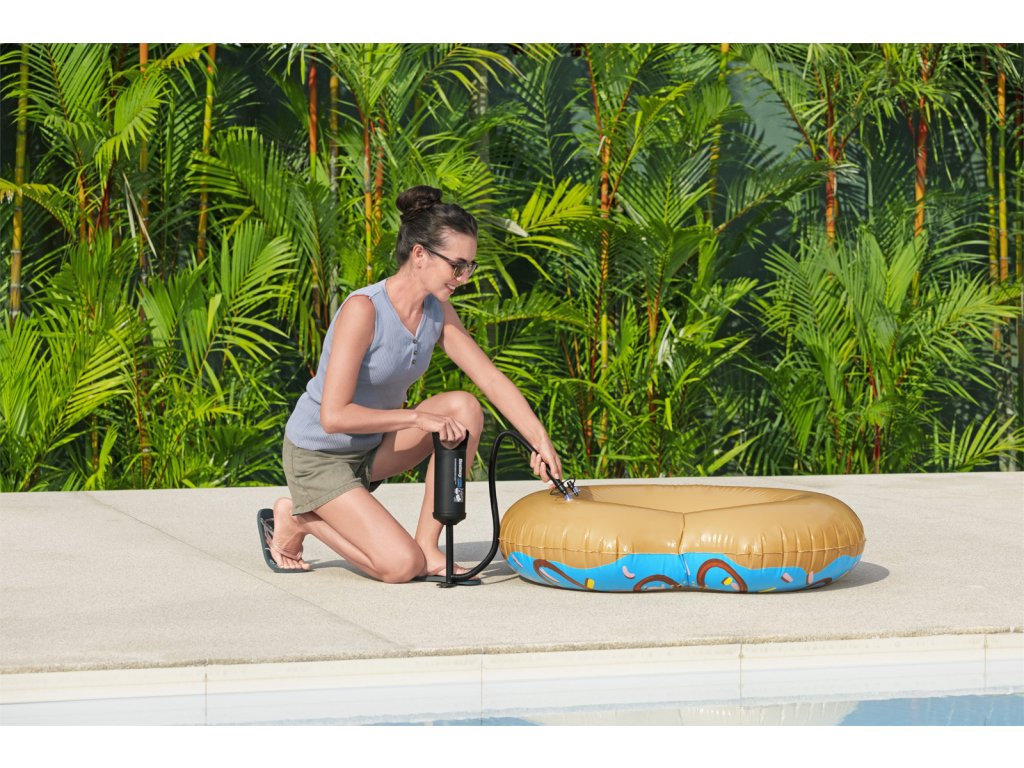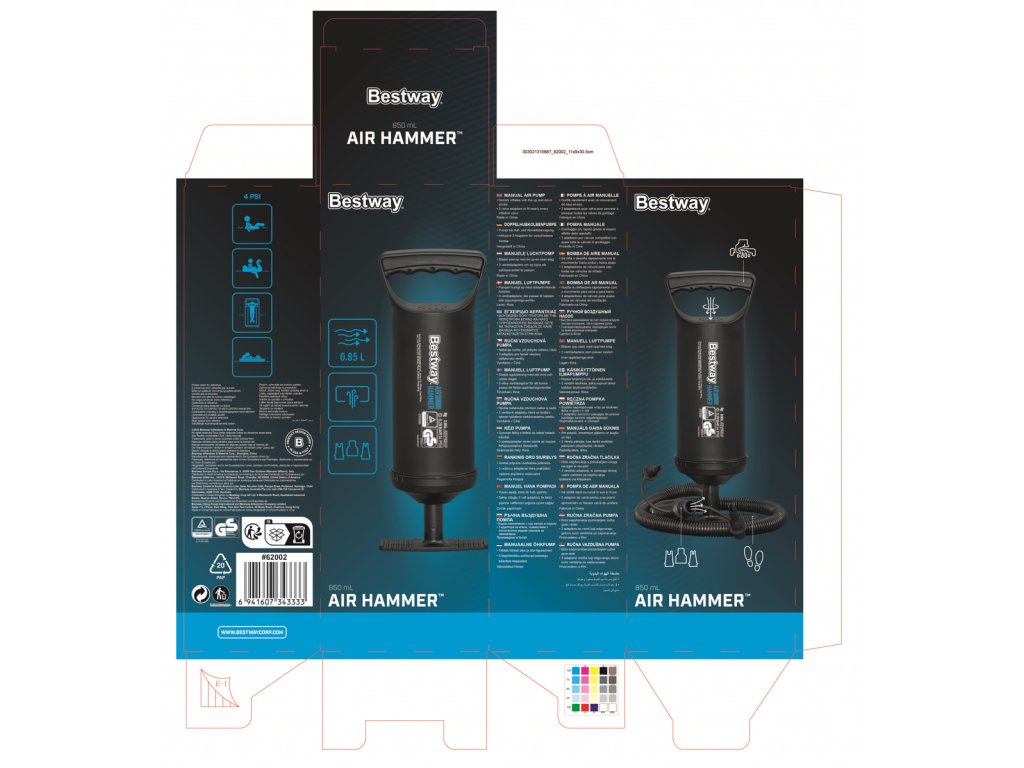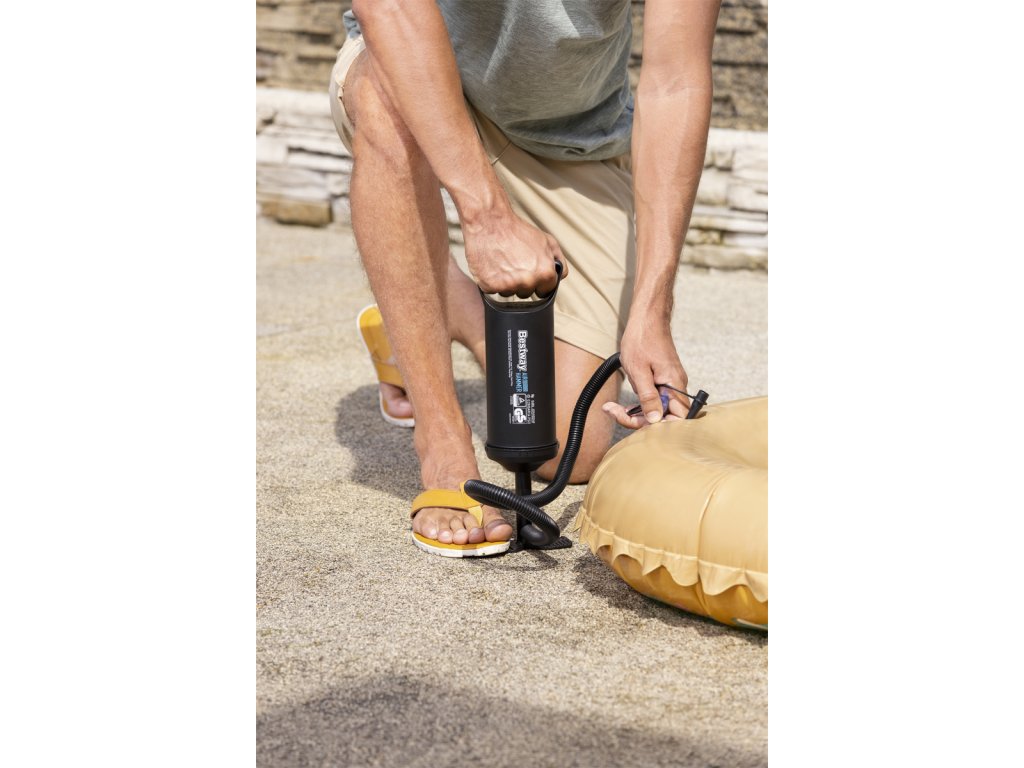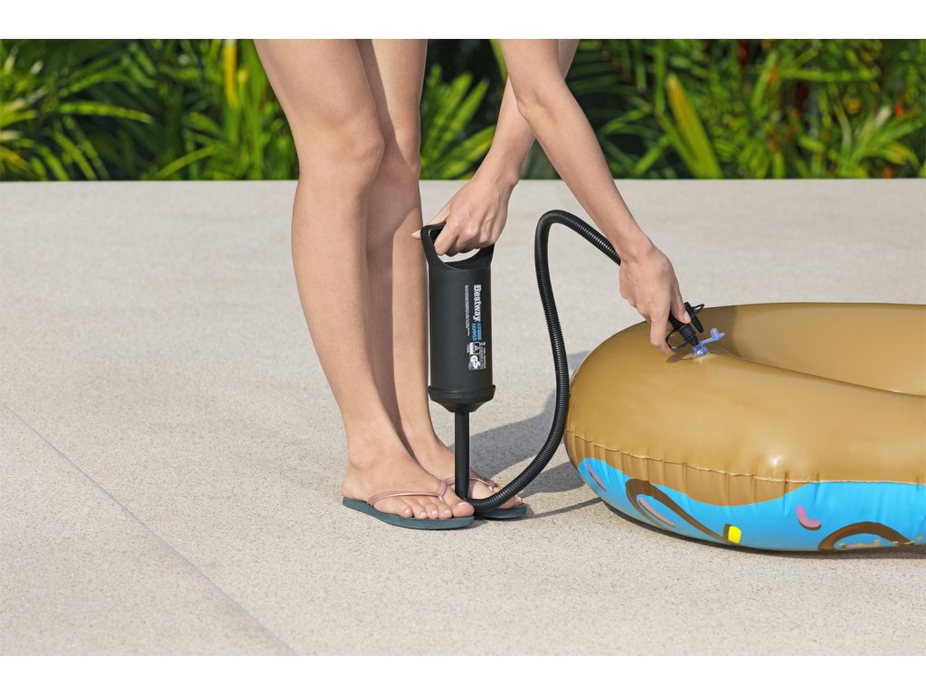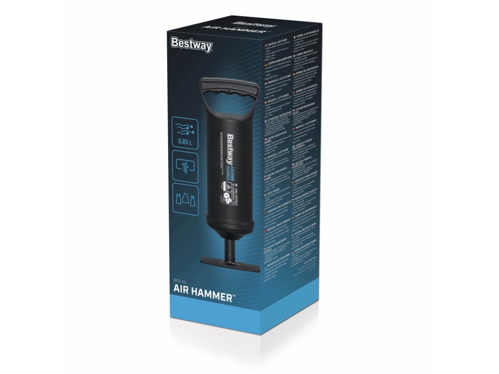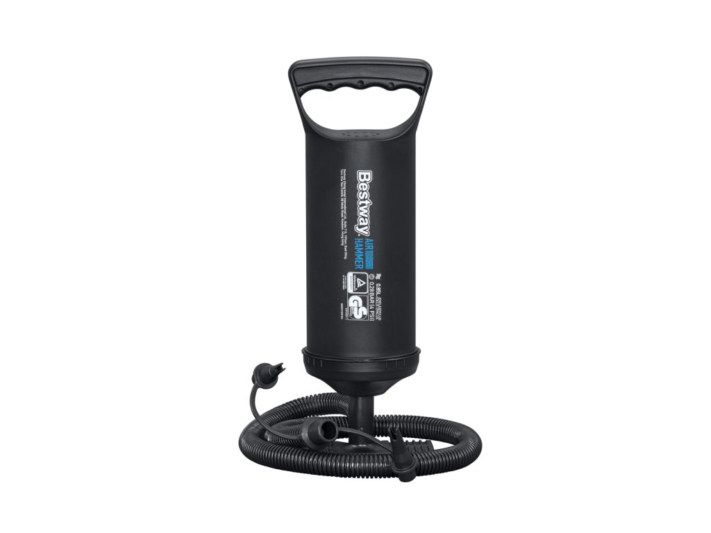 Ruční pumpa Air Hammer bude vaším pomocníkem pro vodní hry! Pumpa o objemu 0,85 l/cyklus disponuje velkou vzduchovou komorou pro rychlé nafukování. Je navržena tak, aby v ní byl maximální proud vzduchu. Nafukování při pohybu nahoru i dolů. Součástí pumpy je pružná hadice. Balení obsahuje 3 adaptéry pro téměř všechny nafukovací ventily. Velikost výrobku: 30 cm