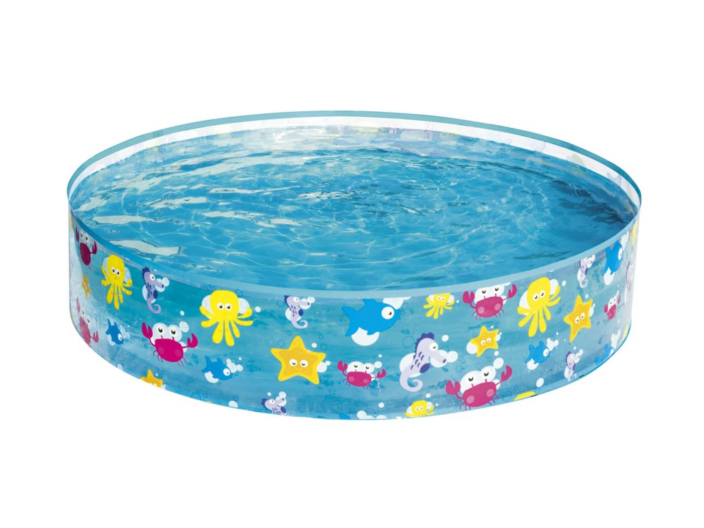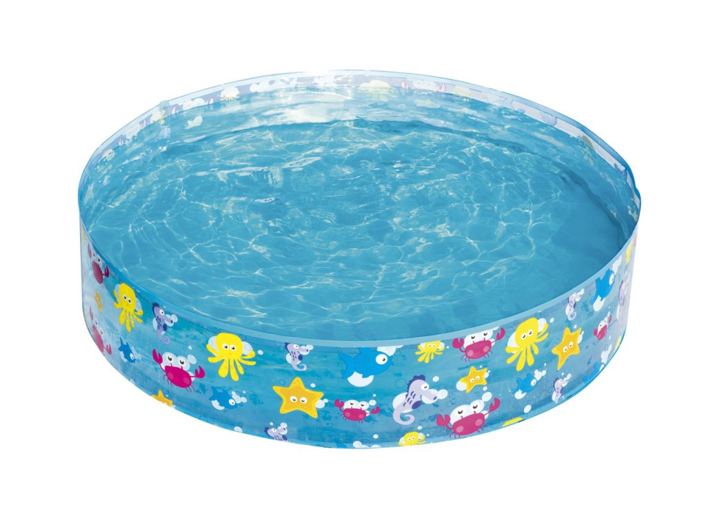 Bestway samostojný kulatý bazén Fill-n-Fun je navržený tak, aby si v něm děti užili bezpečně vodní radovánky. Vnější stěnu bazénu zdobí veselá mořská zvířátka. Stěna bazénu je z pevného, průhledného, odolného PVC a je trvale připevněna k pevnému vinylovému dnu. Cákání, cachtání a koupání nebylo nikdy zábavnější než s bazénem Bestway Fill-n-Fun. Navržený objem vody: 227 l. Obsahuje: 1 bazén, 1 opravná sada. Rozměr: 122 x 25 cm. Rozměr balení: 31 x 12 x 12 cm. Věk: 2+. Používejte výhradně venku a pouze pod dohledem dospělé osoby.