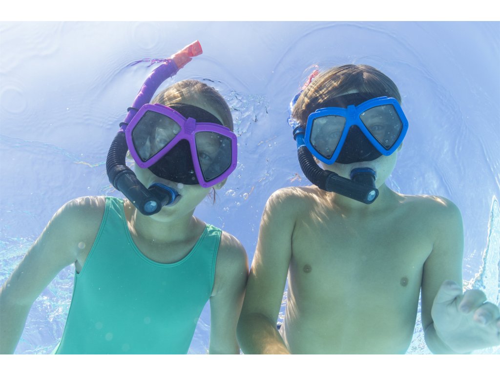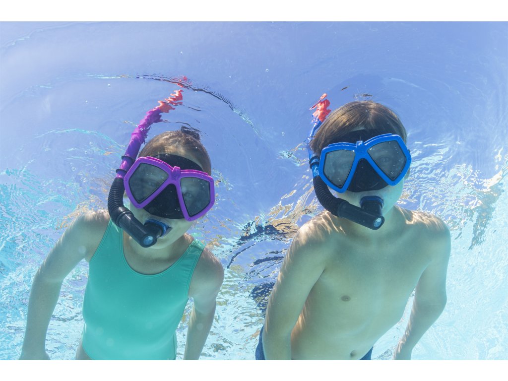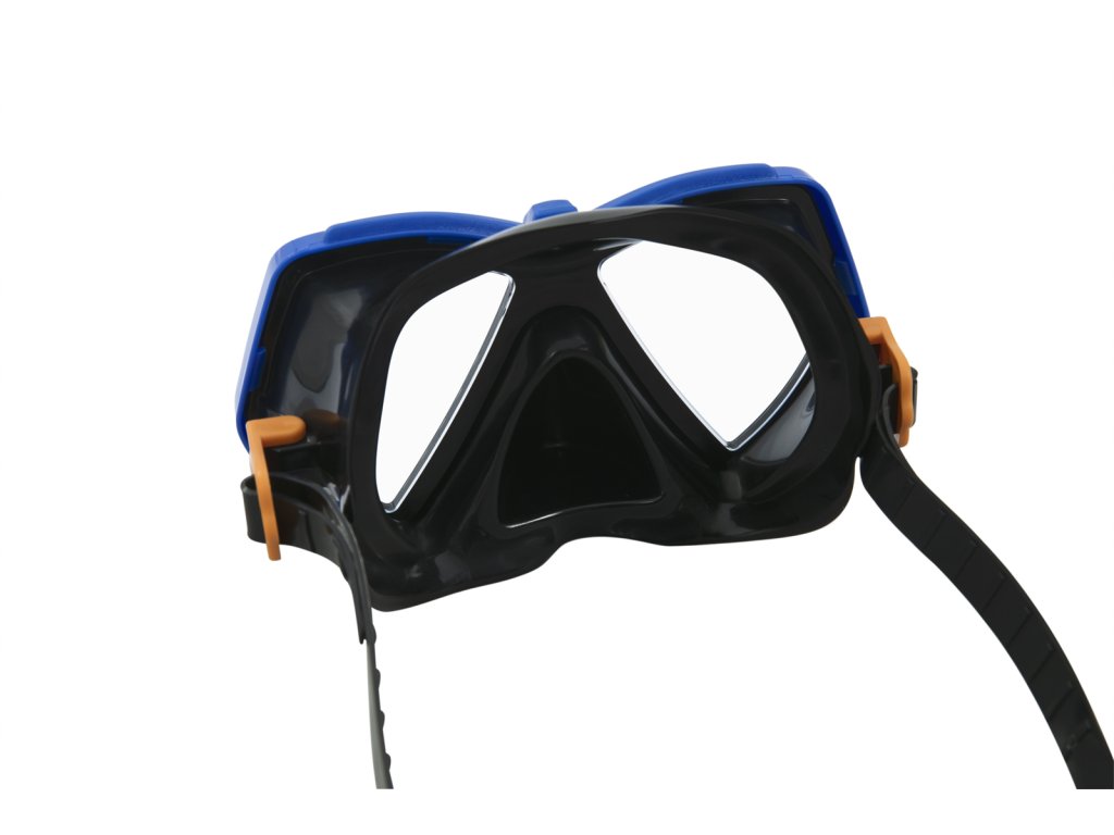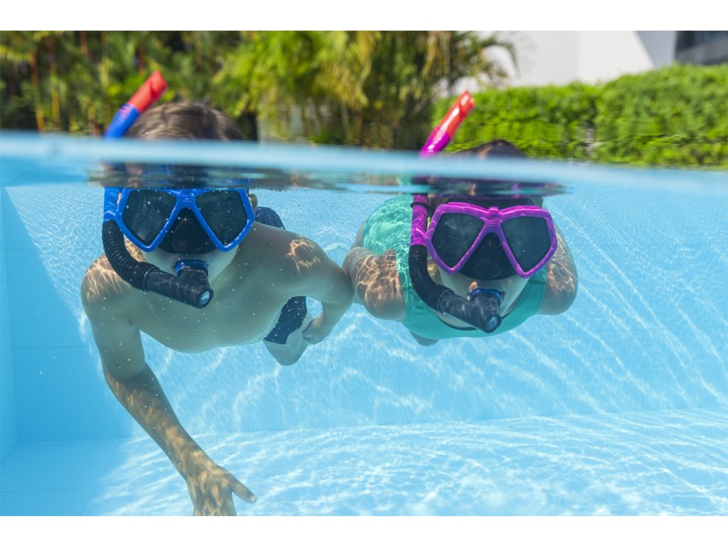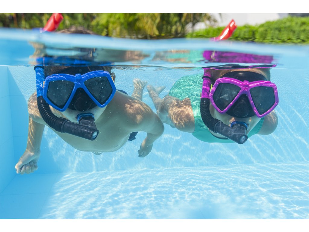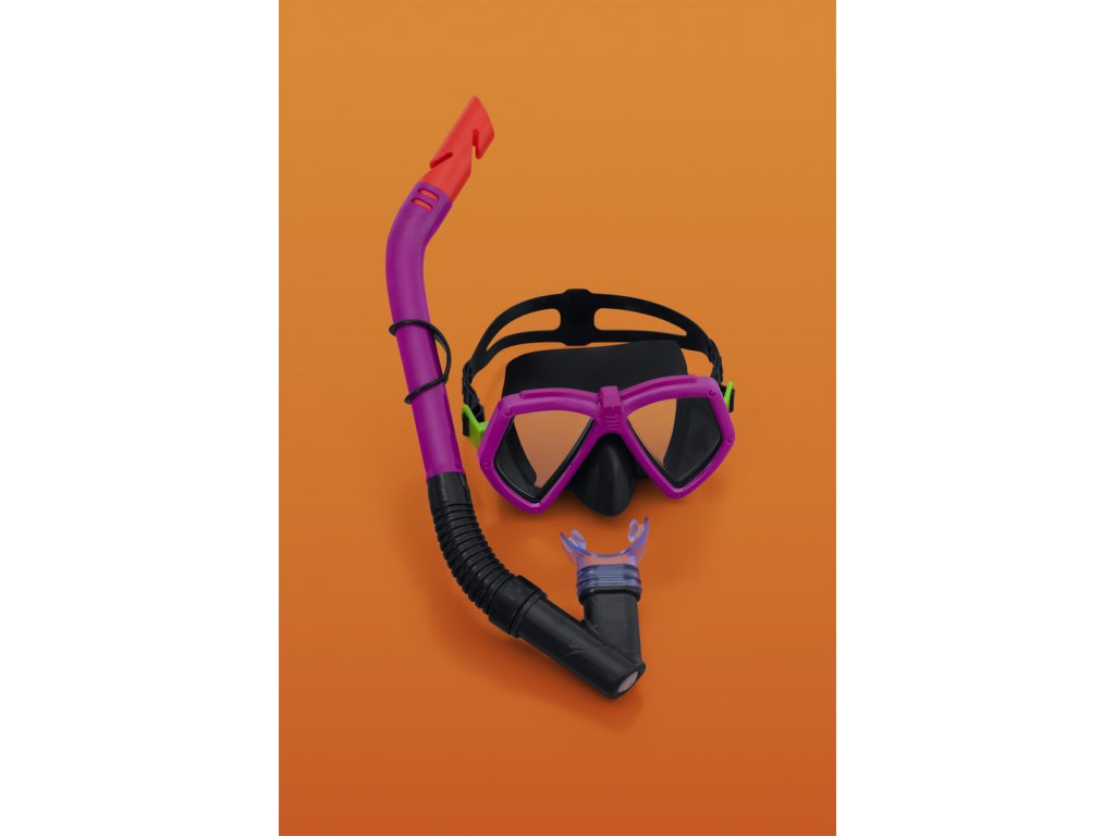 Bestway šnorchlovací set Dominator – brýle a šnorchl. Brýle mají polykarbonátové čočky ve tvaru leteckých brýlí s UV ochrannou vrstvou. Komfortní, dvojité těsnění lemu brání vnikání vody do brýlí. Plně nastavitelný dělený silikonový pásek. Šnorchl má měkký a pohodlně přiléhající náustek. Technologie Dry Top je speciální vylepšení šnorchlu, které zabraňuje průniku vody do úst. 100 % bez latexu. 2 barevné provedení (modrá, růžová). Věk: 7+