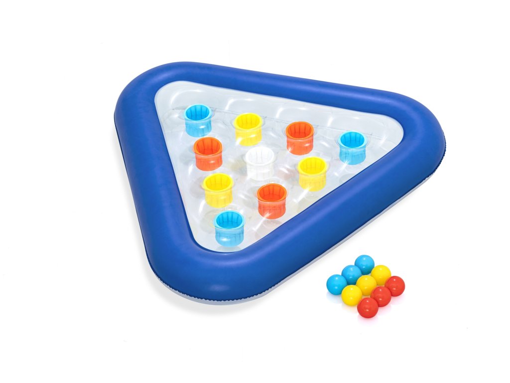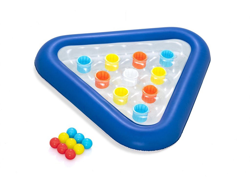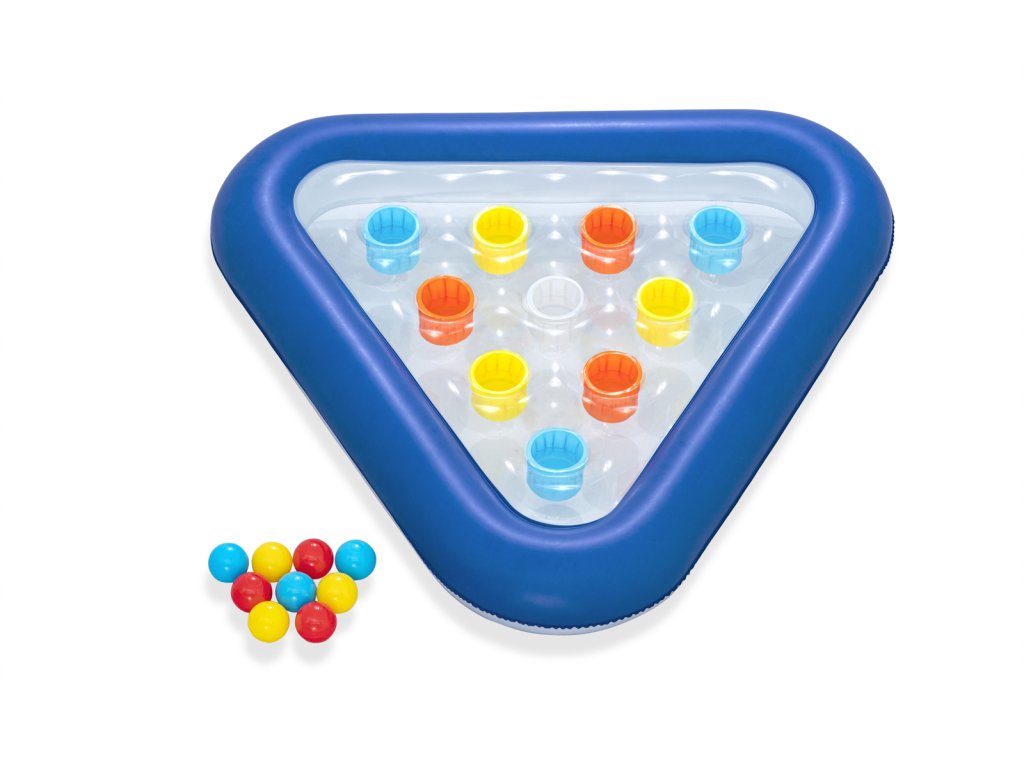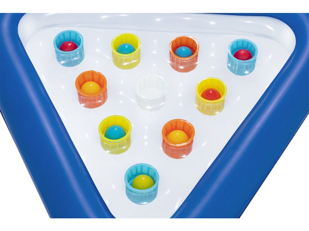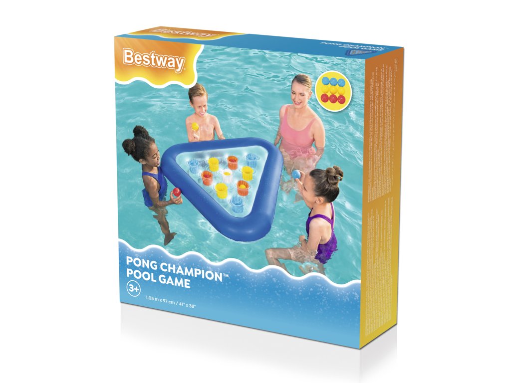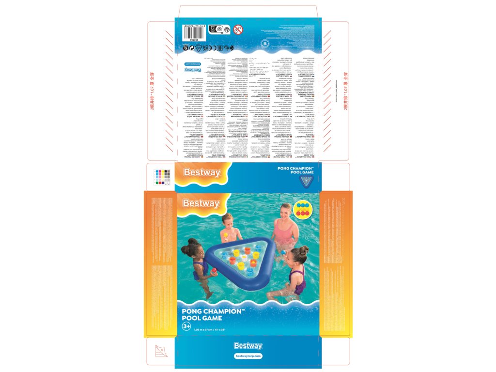 Kulečníková hra Pong Champion. Rozměry: 105cm x 97cm. 10 barevně odlišených otvorů na platformě – házejte míček do stejného otvoru a skórujte. 9 herních míčů ve 3 různých barvách pro týmovou hru. Balení: 30x30x6,5cm. Věk: 3+