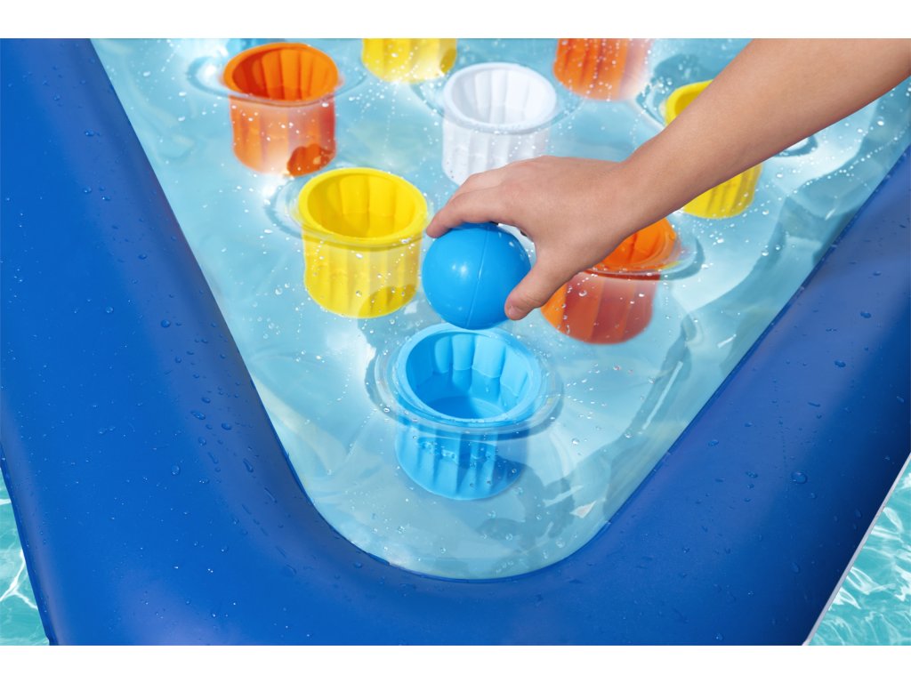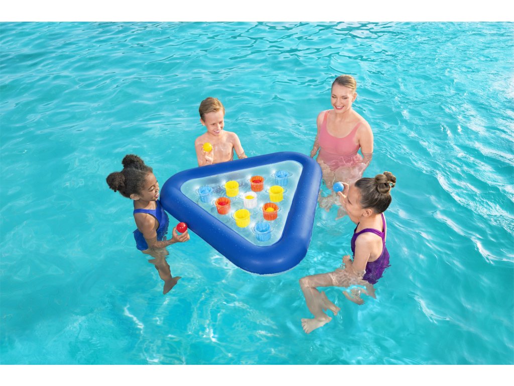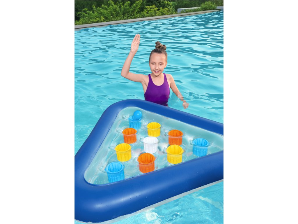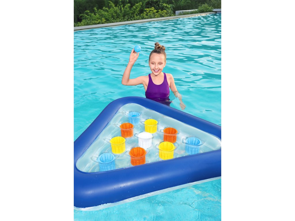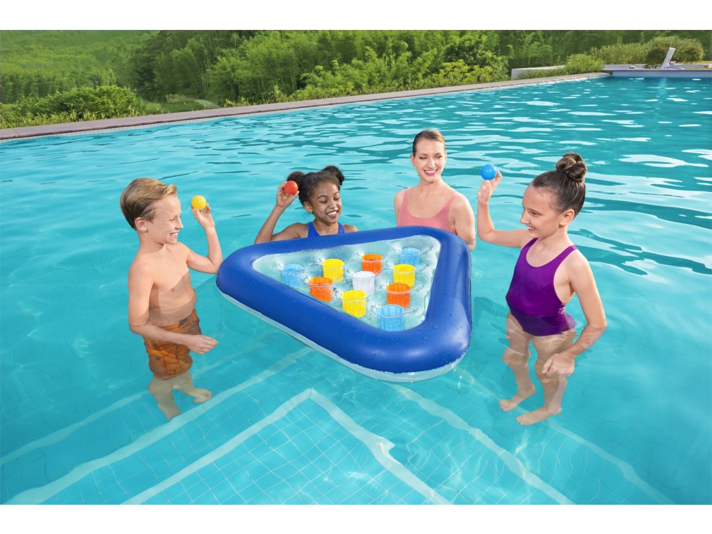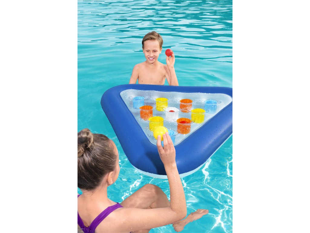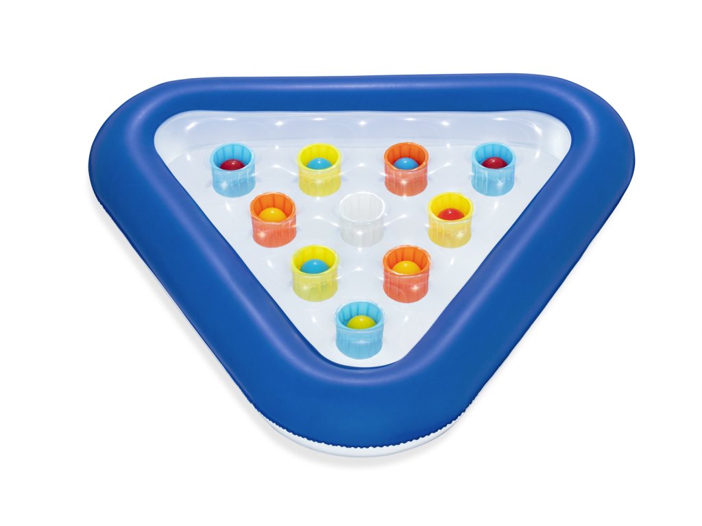 Kulečníková hra Pong Champion. Rozměry: 105cm x 97cm. 10 barevně odlišených otvorů na platformě – házejte míček do stejného otvoru a skórujte. 9 herních míčů ve 3 různých barvách pro týmovou hru. Balení: 30x30x6,5cm. Věk: 3+