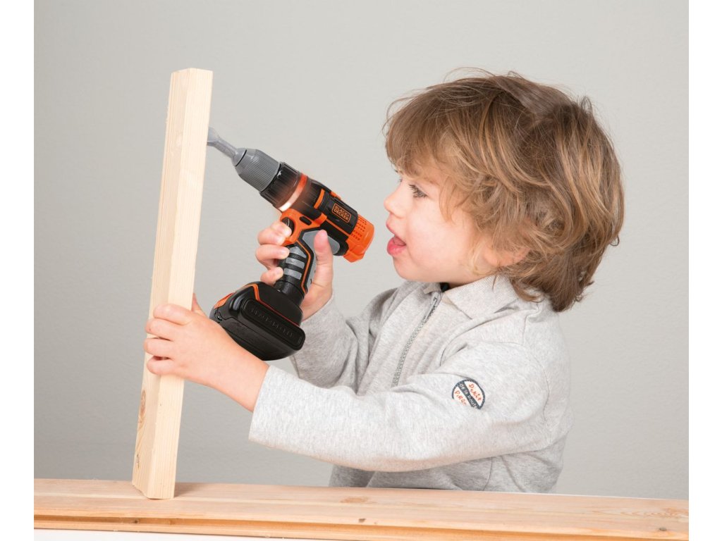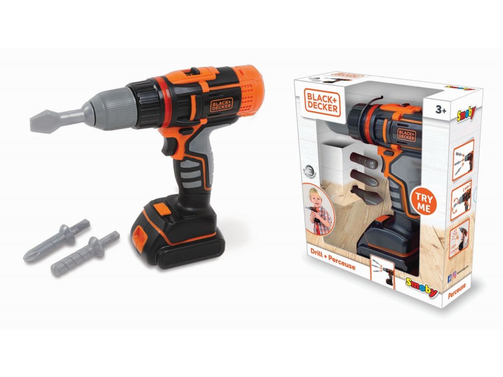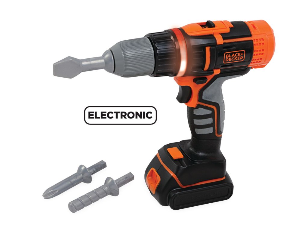 Elektronická aku vrtačka/šroubovák v licenci Black&Decker pro malé kutily. 2 směry otáčení (šroubování / odšroubování). Součástí 2 šroubovací nástavce a vrták. 2 rychlosti - vysoké otáčky pro vrtání, nízké otáčky pro kontrolované šroubování.