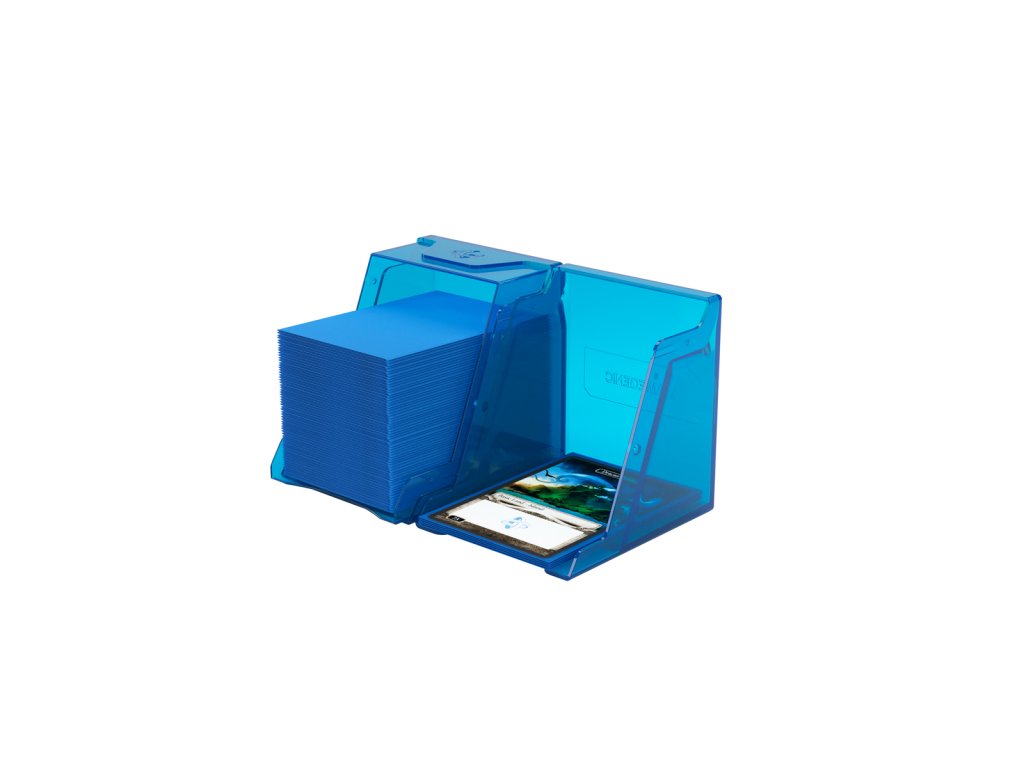 Kompaktní a odolná krabička na karty, která pojme více než 100 karet v dvojobalech. Díky průhlednému materiálu a chytrému uzavírání je vrchní karta plně viditelná zvenčí bez nutnosti otevírání krabičky. Krabička je k dispozici v 10 různých barvách, včetně exkluzivní černé/průhledné verze.