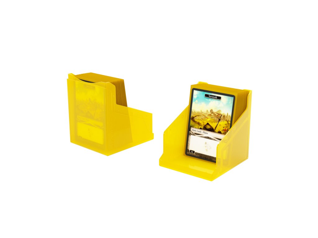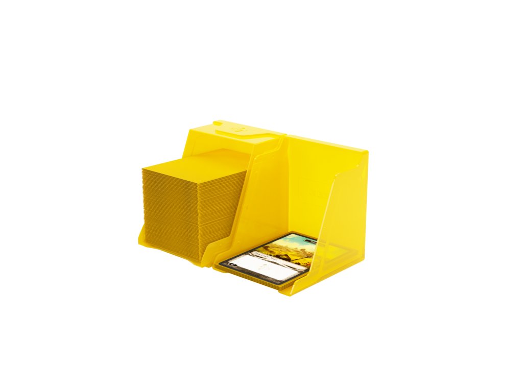 Kompaktní a odolná krabička na karty, která pojme více než 100 karet v dvojobalech. Díky průhlednému materiálu a chytrému uzavírání je vrchní karta plně viditelná zvenčí bez nutnosti otevírání krabičky. Krabička je k dispozici v 10 různých barvách, včetně exkluzivní černé/průhledné verze.