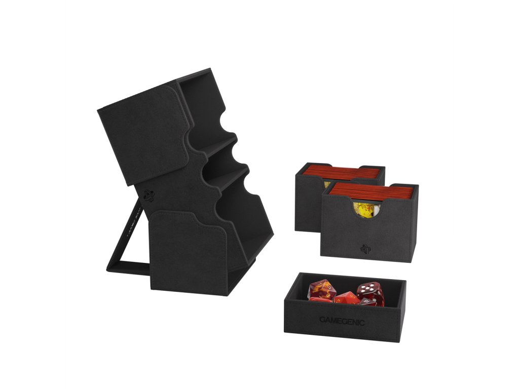 Praktická krabička na karty a herní doplňky. Krabička pojme až 200 karet v dvojobalech a ještě má extra přihrádku na kostky, žetony a drobné herní doplňky.