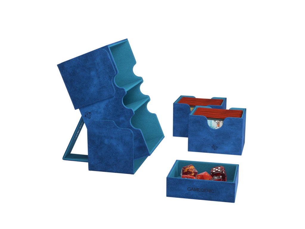 Praktická krabička na karty a herní doplňky. Krabička pojme až 200 karet v dvojobalech a ještě má extra přihrádku na kostky, žetony a drobné herní doplňky.