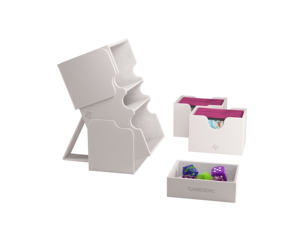 Praktická krabička na karty a herní doplňky. Krabička pojme až 200 karet v dvojobalech a ještě má extra přihrádku na kostky, žetony a drobné herní doplňky.