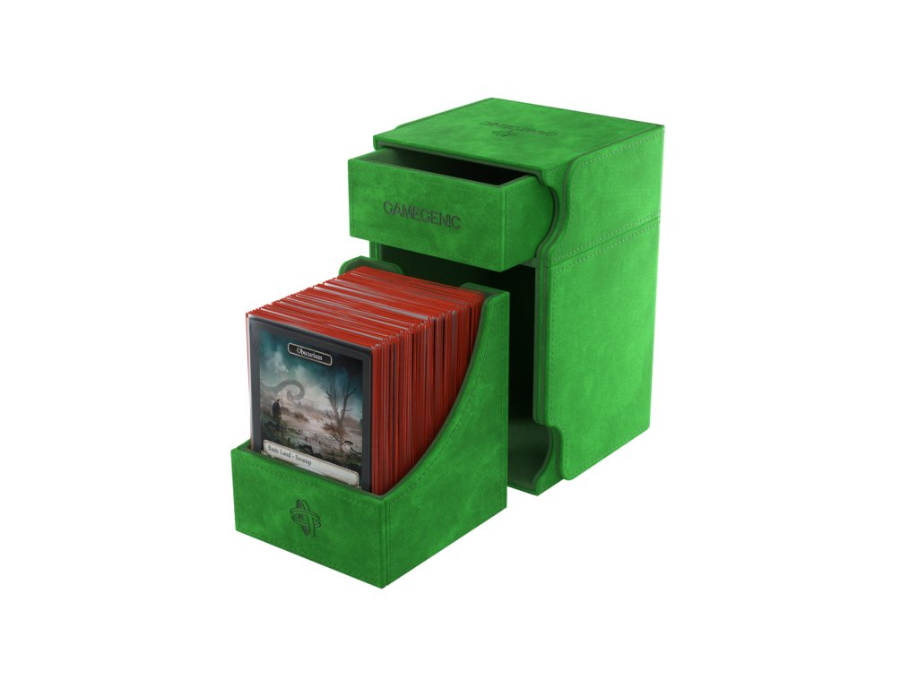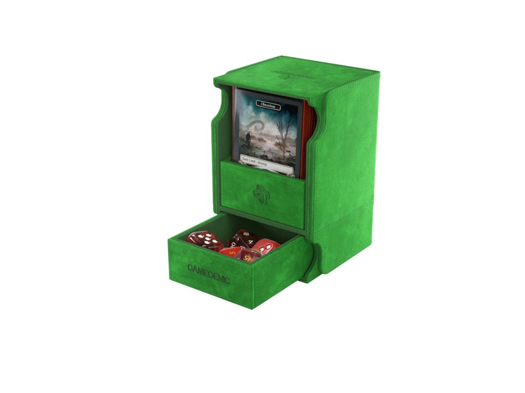 Praktická krabička na karty a herní doplňky. Krabička pojme až 100 obalených karet v dvojobalech a ještě má extra přihrádku na kostky, žetony a drobné herní doplňky.