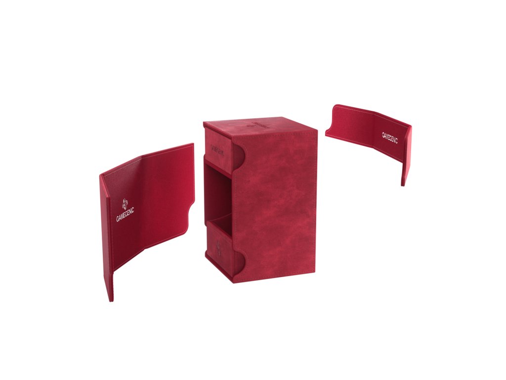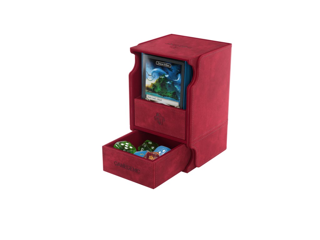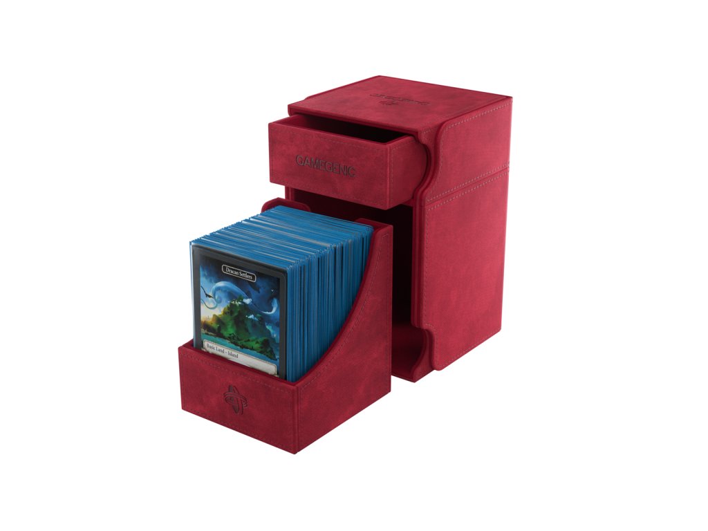 Praktická krabička na karty a herní doplňky. Krabička pojme až 100 obalených karet v dvojobalech a ještě má extra přihrádku na kostky, žetony a drobné herní doplňky.