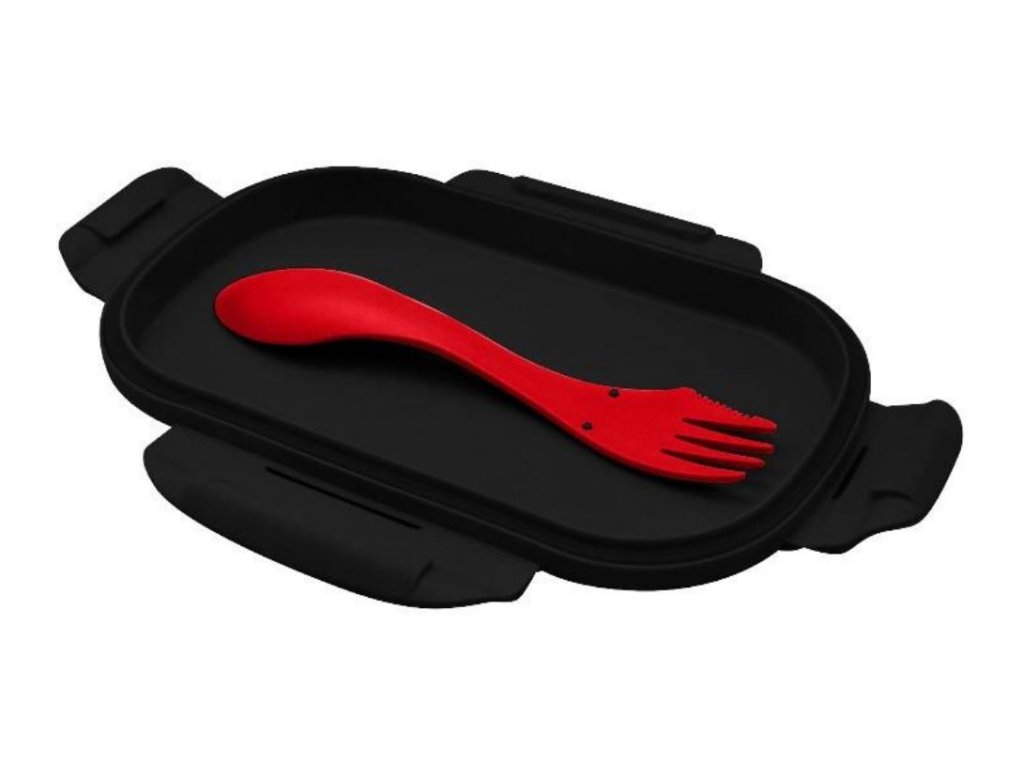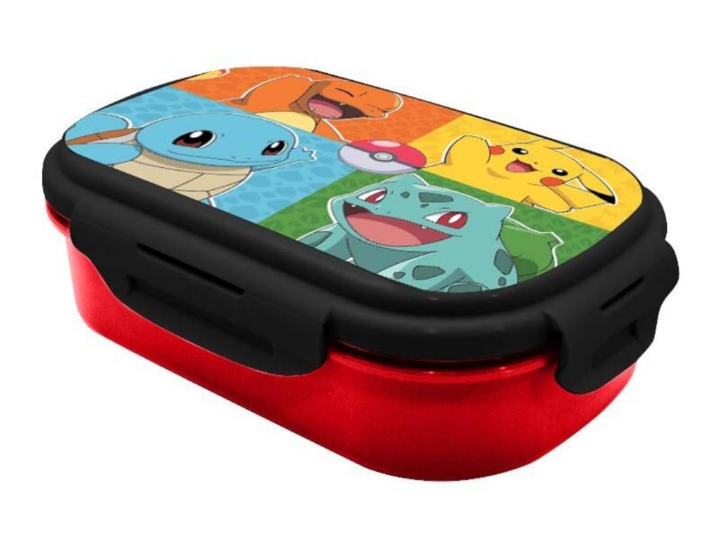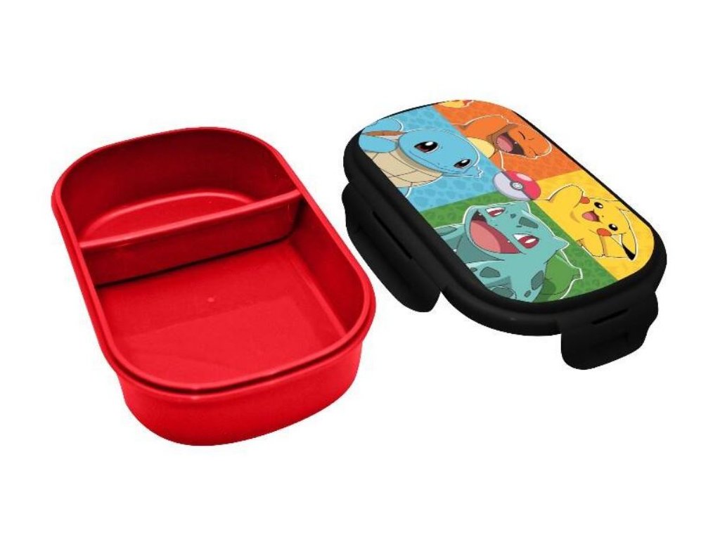 Oficiální produkt - svačinový box s příborem z katalogu výrobků s grafikou a licencí populárního seriálu a stejnojmenného brandu Pokémon.