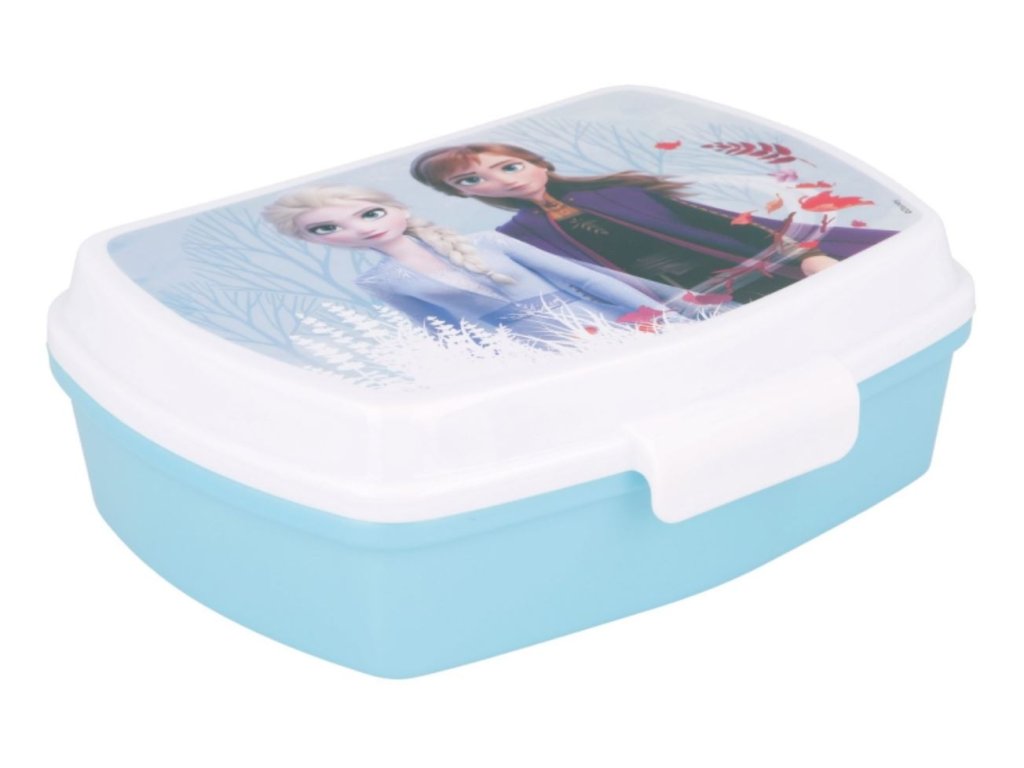 Oficiální produkt - svačinový box z katalogu výrobků s grafikou a licencí populární animované pohádky Frozen od společnosti Disney.