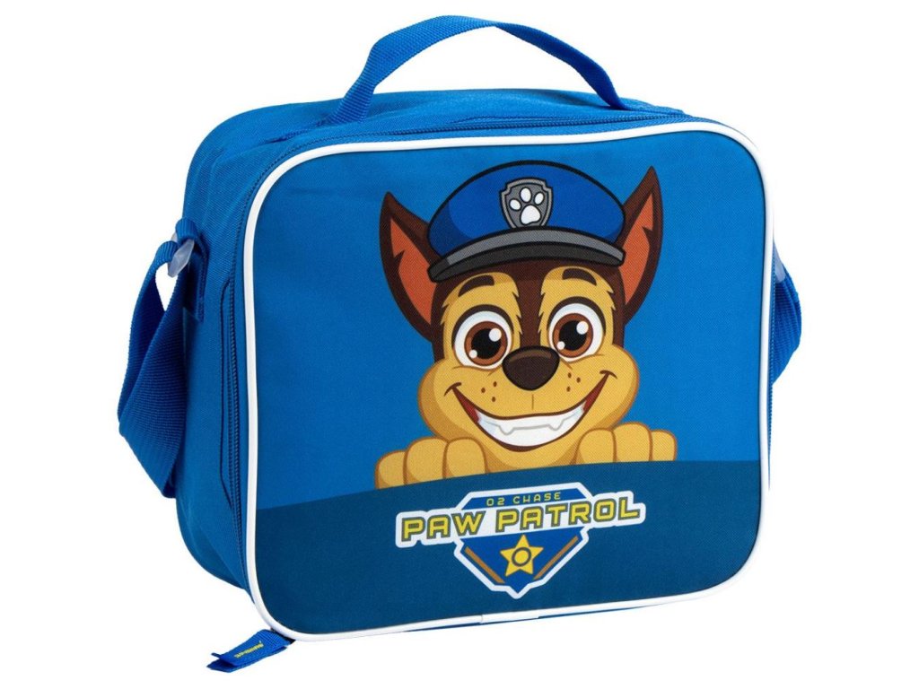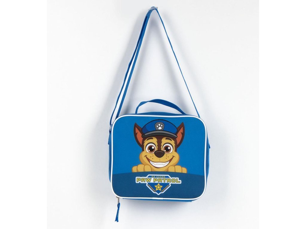 Modrá taška na svačinu vyvedená v motivu postavičky Chase z filmu Tlapková patrola. Taška má navíc i nastavitelný ramenní popruh a rukojeť pro nošení v ruce. Snadno čistitelná, protože vnější tkanina je vyrobena z vysoce kvalitního potaženého materiálu, který se snadno udržuje.