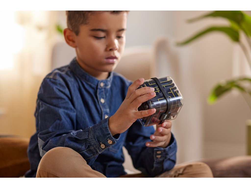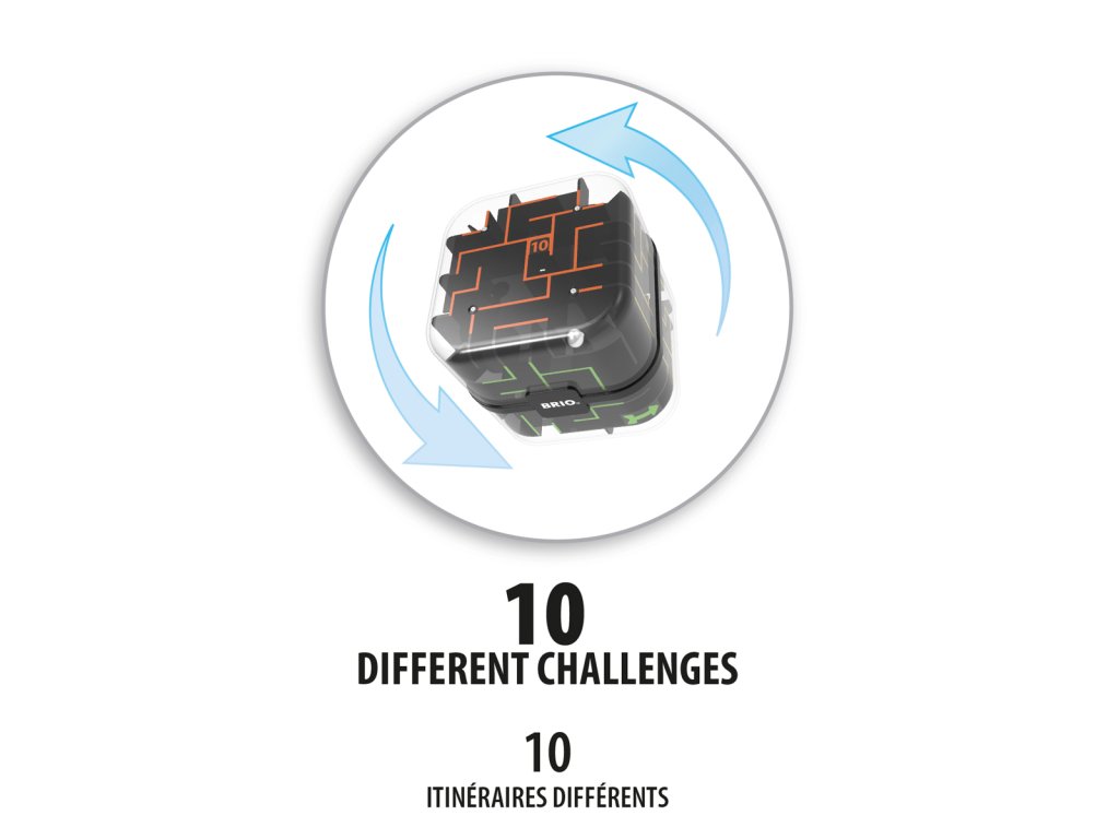 V tomto 3D bludišti musíte umístit kovovou kouli do výchozího bodu a pokusit se ji převalit do deseti různých koncových poloh. Složitost se liší v závislosti na trase. Otáčením, kroužením a otáčením kostky opatrně procházíte labyrintem. S trochou trpělivosti a velkým soustředěním můžete najít cestu. Balení: 9,6x9,6x9,4cm. Věk: 6+