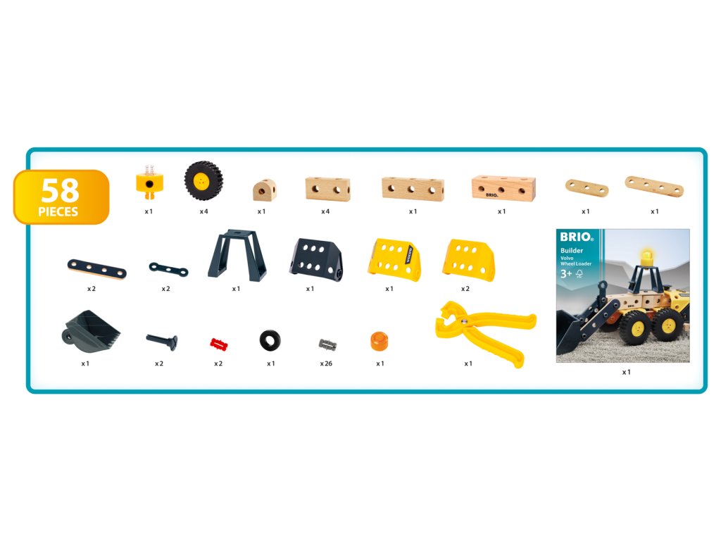 Zvedněte největší náklady pomocí kolového nakladače Volvo. Tato stavebnice založená na ikonickém stroji Volvo obsahuje realistické herní funkce, jako je vyklápěcí kbelík a také výstražné světlo baterie. Uchopte snadno ovladatelný nástroj a podle pokynů k sestavení postavte tento stroj kus po kuse. Pak nechte fantazii prozkoumat všechny aspekty stavební hry s tímto robustním kusem stroje vyrobeného z masivního bukového dřeva a vysoce kvalitních plastů. Rozměry: 31 x 20 x 9 cm. Věk: 3+