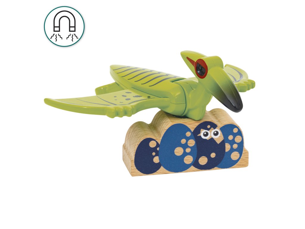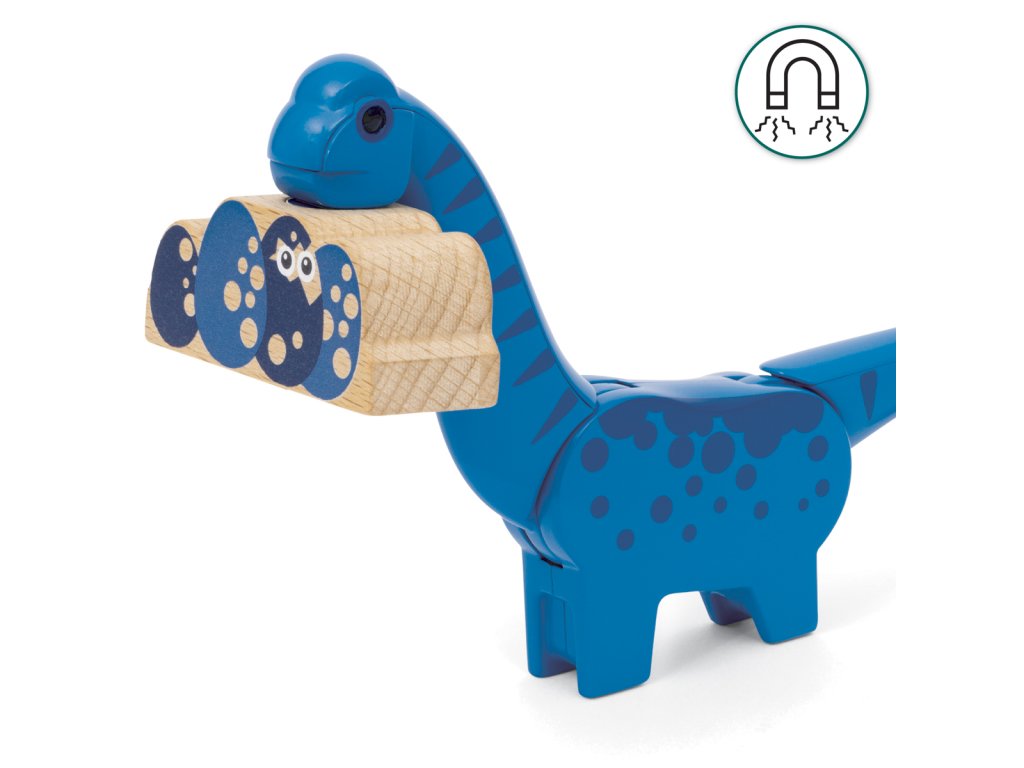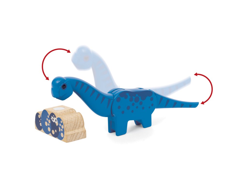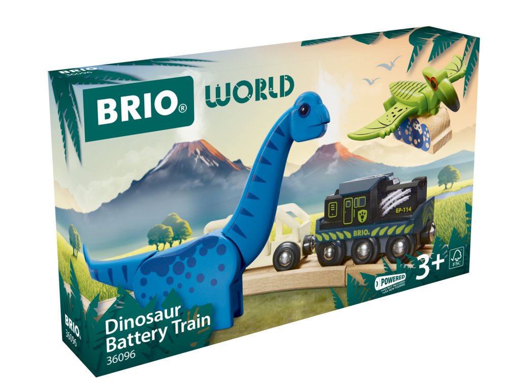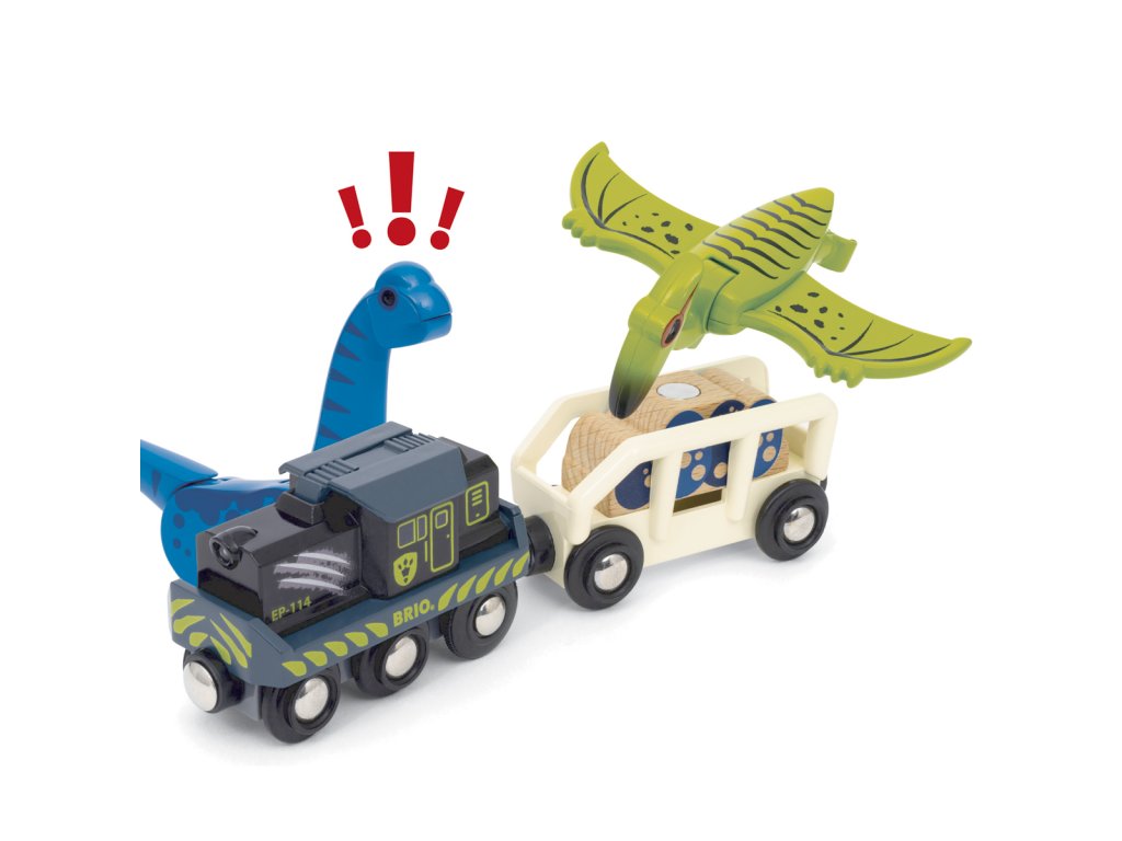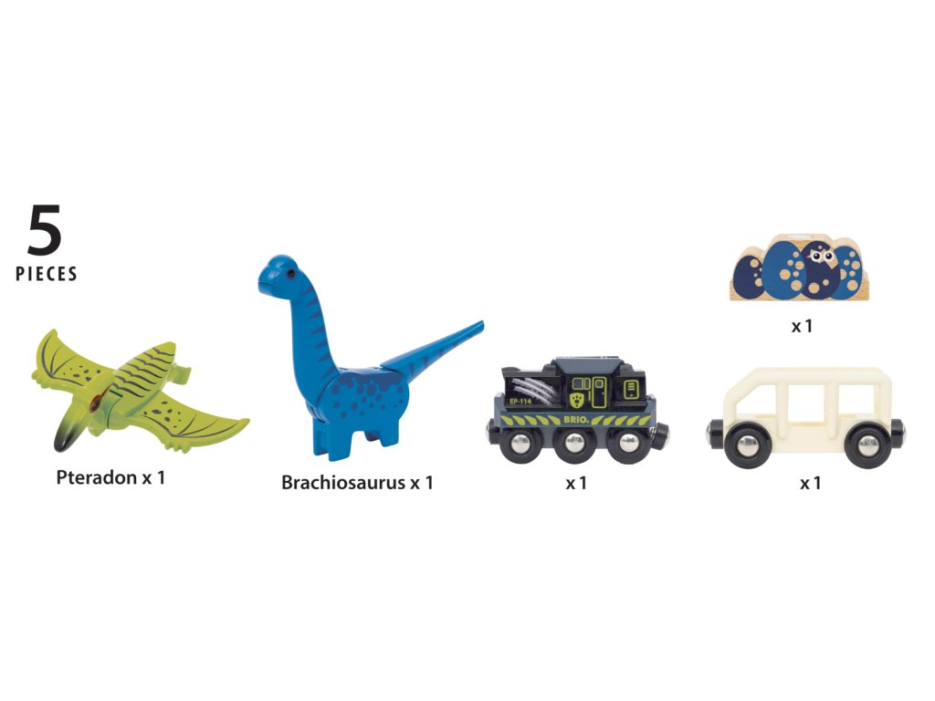 Vydejte se na prehistorické dobrodružství s Dinosauřím vláčkem na baterie. Z paluby vláčku na baterie s funkcí jízdy vpřed, vzad a předním světlem prozkoumávejte svět dinosaurů. Ve vagonku vláčku přepravíte dinosaury a jejich vejce z místa na místo po kolejích. Nechybí dva hraví barevní dinosauři, jedinečné pohyblivé součásti a klasické magnety BRIO pro interakci s okolním světem. Balení: 5x25x15cm. Věk: 3+