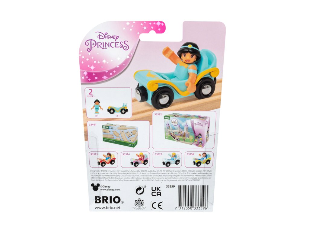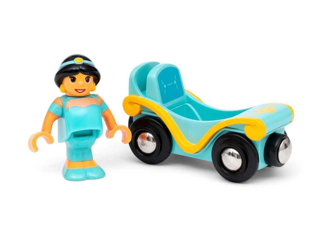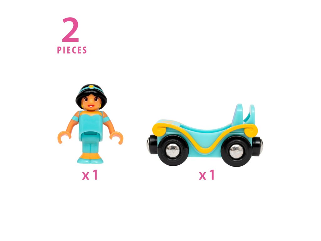 Příslušenství vlakové soupravy Disney Princess s postavou Jasmíny a jejím vlastním zámeckým vozem. Vezměte princeznu Jasmínu na fantastické železniční dobrodružství v jejím vlastním vozíku. Podpořte dětskou kreativitu při hraní rolí v nápaditých příbězích. Hra s vláčkem také pomáhá dětem zábavnou a poutavou formou rozvíjet jemnou motoriku. Rozměr balení: 15 x 20 x 5 cm. Počet dílků: 2. Věk: 3+