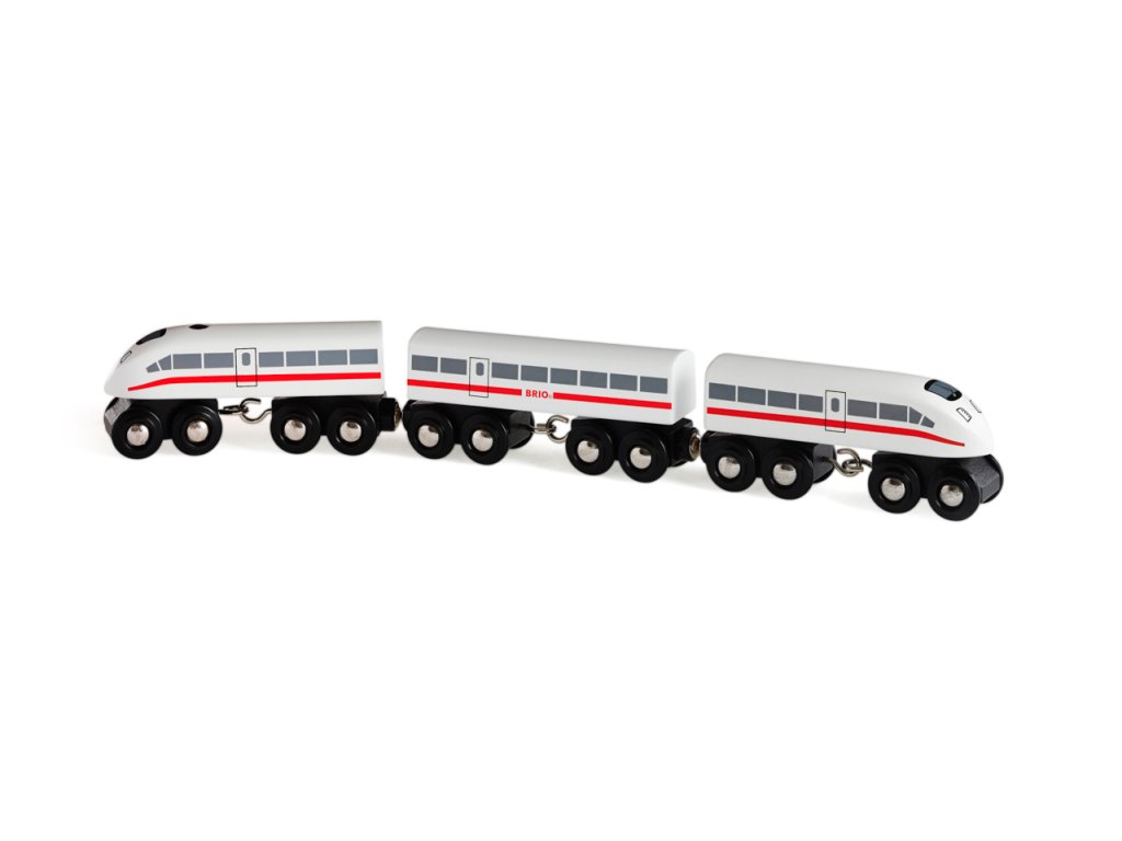 Všichni pozor, rychlovlak projíždí! Tento model kombinuje funkčnost, podstatu tradičních BRIO vláčků s přednostmi moderního, rychlého vozidla. Sada obsahuje třídilný vlak, který vydává po znáčknutí tlačítka na lokomotivě zvuk. Baterie jsou součástí balení. Rozměr hračky: 357 x 34 x 48 mm Rozměr balení: 270 x 50 x 150 Věk: 3+