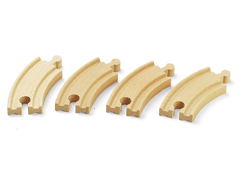 Krátké zatáčky k vláčkodráhám. Části jsou vyrobeny z vybraného bukového dřeva nejvyšší kvality.