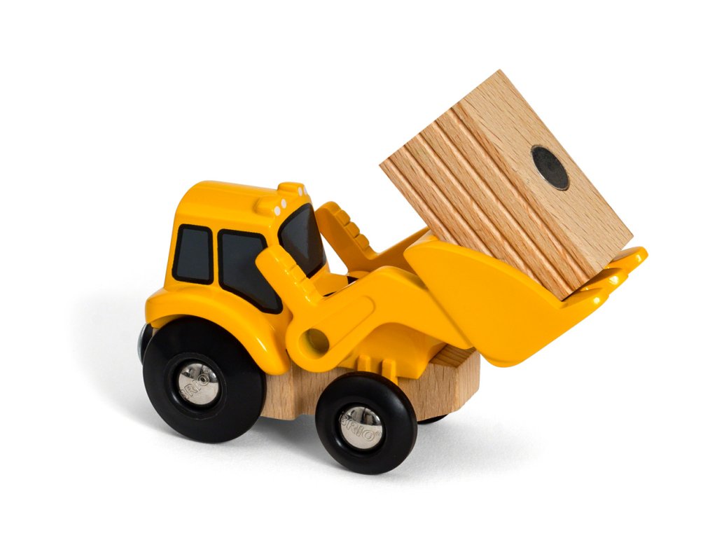 Stavební stroj naloží na svou lopatu i ten nejtěžší dřevěný náklad. Díky výrazné žluté barvě a realistické grafice působí tento nakladač jako z reálného života. Obsluhuje se jednoduše jednou rukou zdviháním a spouštěním čelní páky. Rozměr: 10 x 3,5 x 5 cm. Počet dílků: 2. Věk: 3+