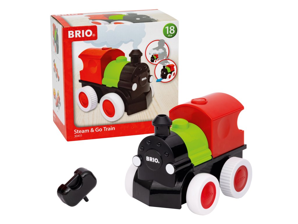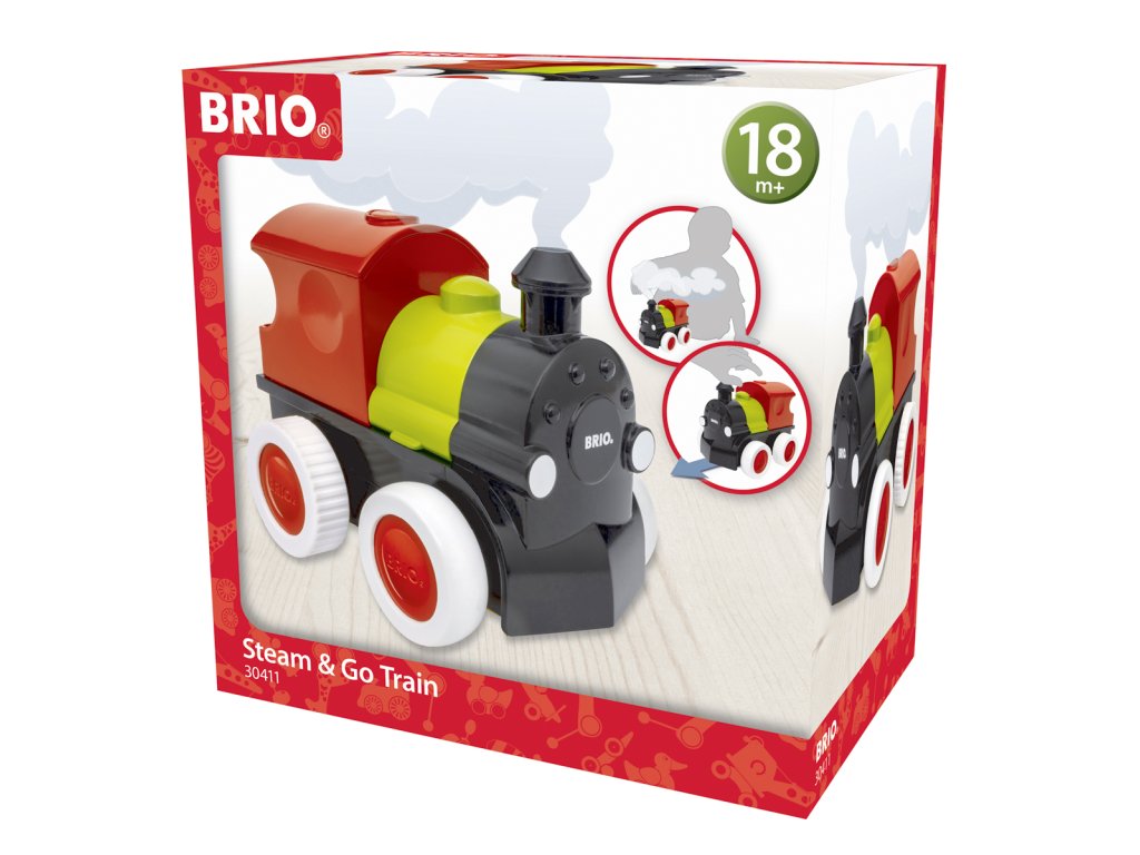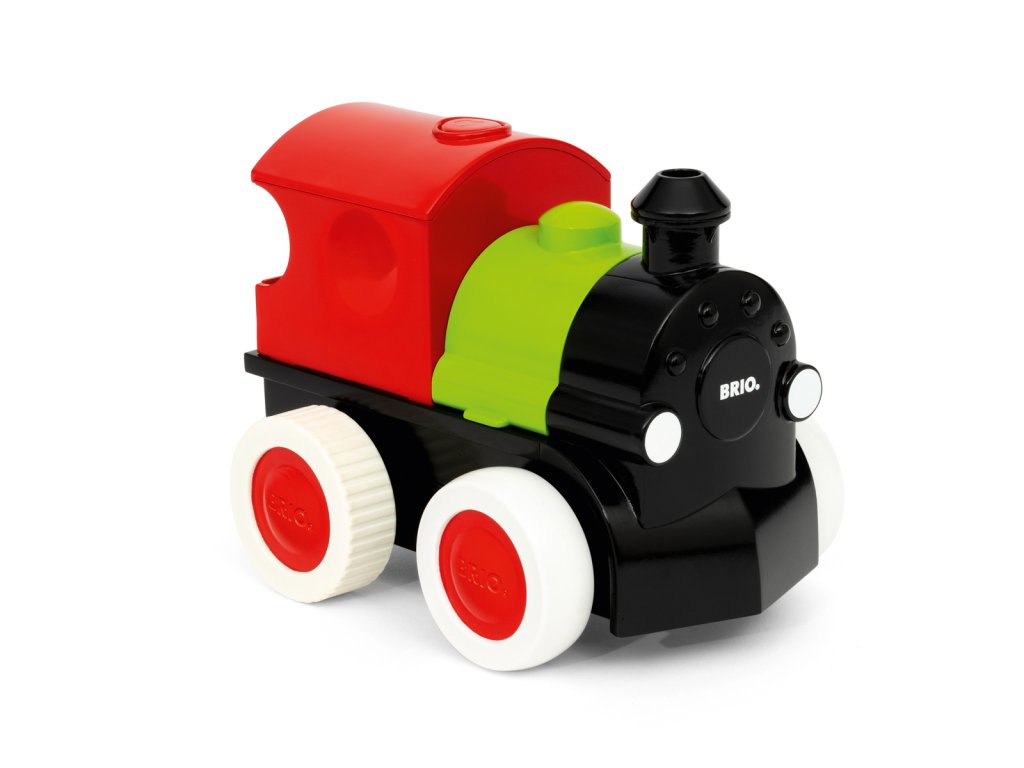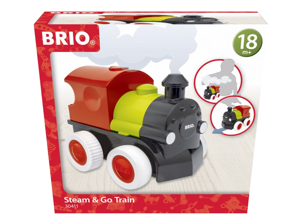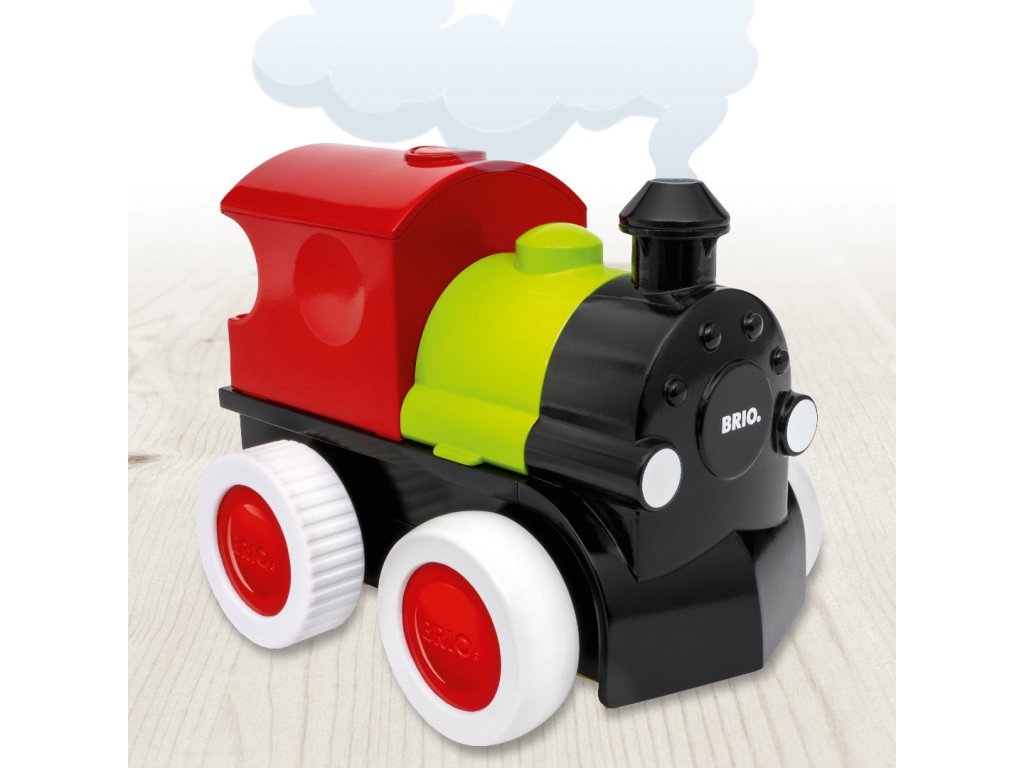 Fuj, prásk! Přijíždí vlak 30411 Push & Go s párou. Tento vláček pro batolata má funkci push-and-go na baterie, která podporuje rozvoj jemné motoriky a pohybu dětí. Po stisknutí tlačítka se vláček rozjede a z komína jde neškodná pára. Následujte vlak, chyťte ho a zábava může začít znovu. Balení: 13x21x21cm. Věk: 18m+