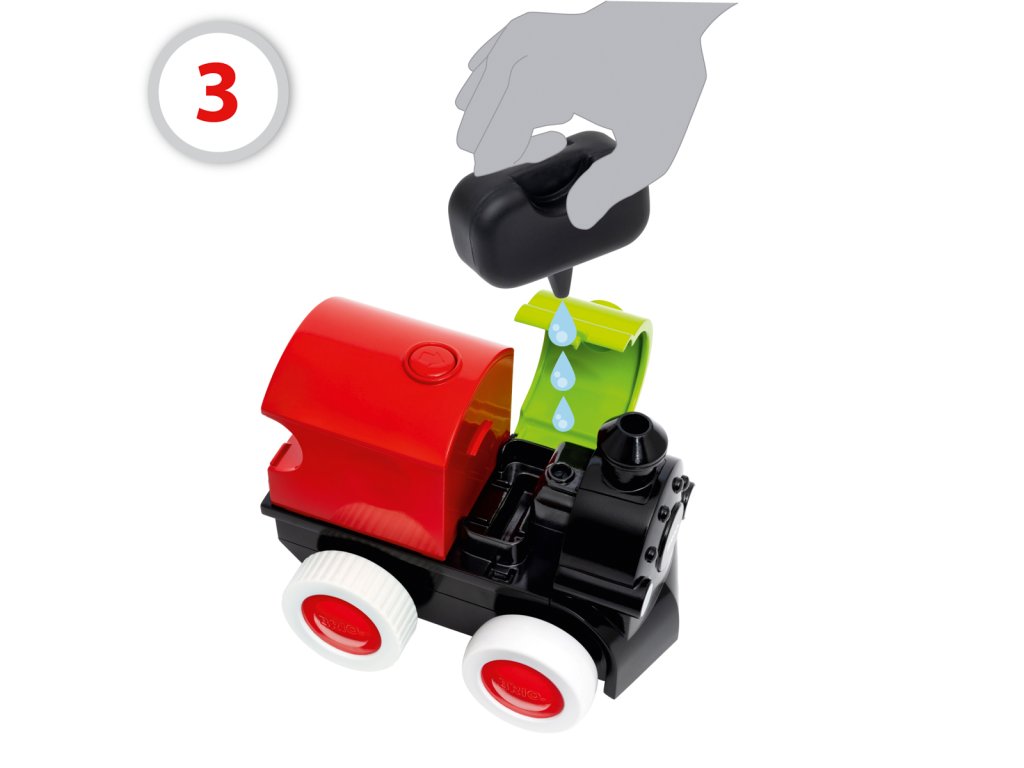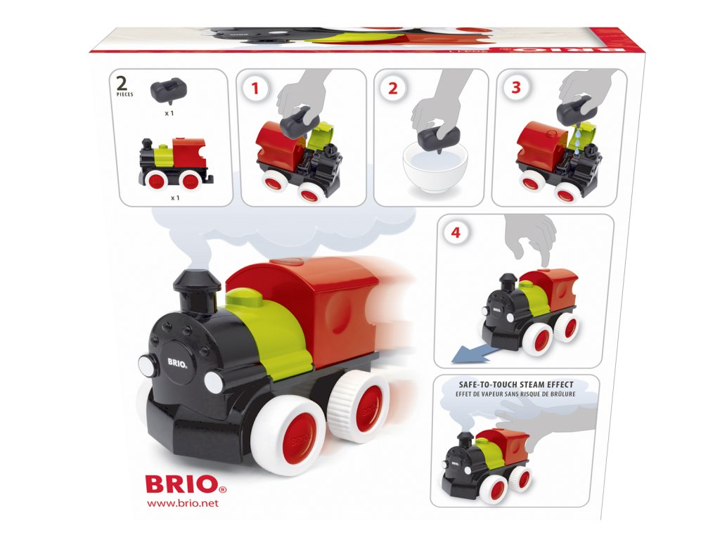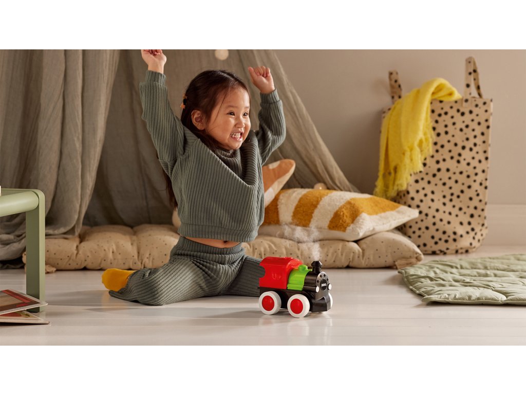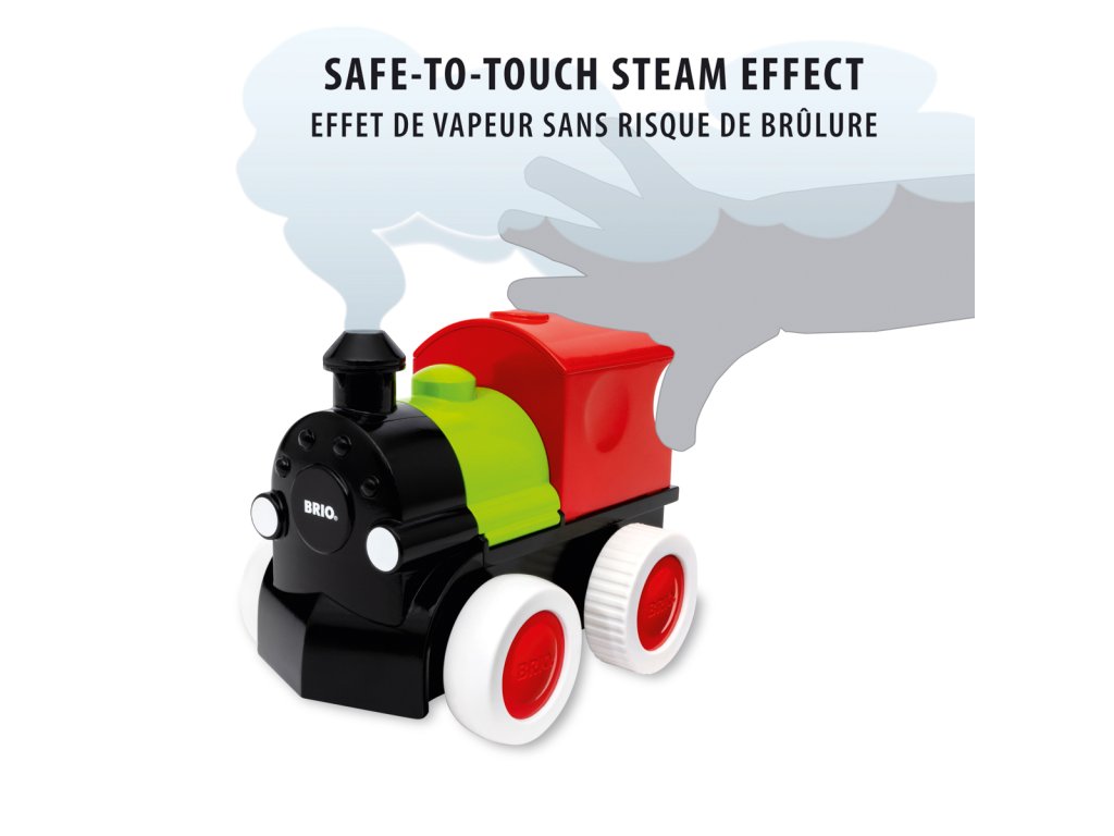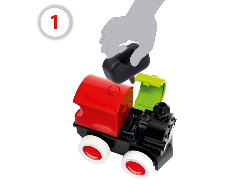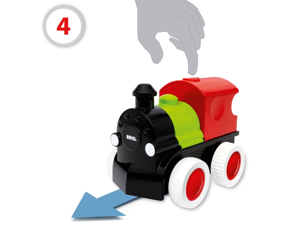 Fuj, prásk! Přijíždí vlak 30411 Push & Go s párou. Tento vláček pro batolata má funkci push-and-go na baterie, která podporuje rozvoj jemné motoriky a pohybu dětí. Po stisknutí tlačítka se vláček rozjede a z komína jde neškodná pára. Následujte vlak, chyťte ho a zábava může začít znovu. Balení: 13x21x21cm. Věk: 18m+