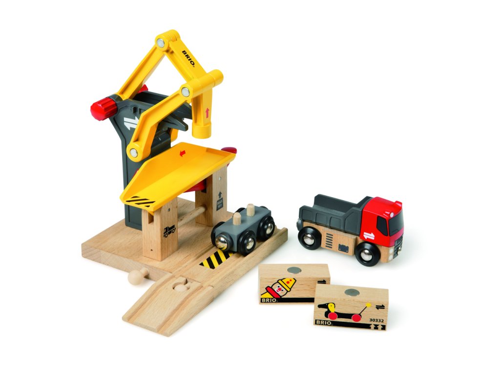 Pomocí silného ramene naložíte snado a bezpečně svůj náklad do vagónku nebo nákladního vozu. Tento set je výborným doplňkem k ostatním vláčkodráhám Brio.