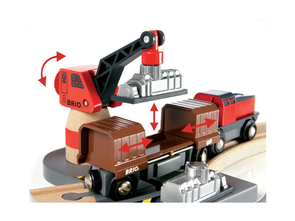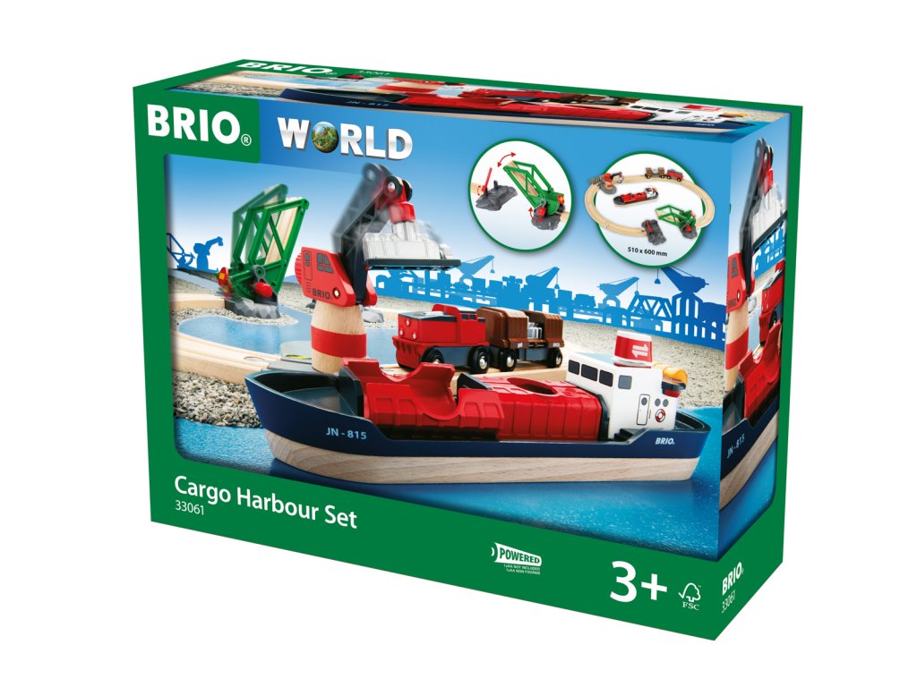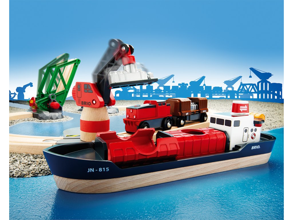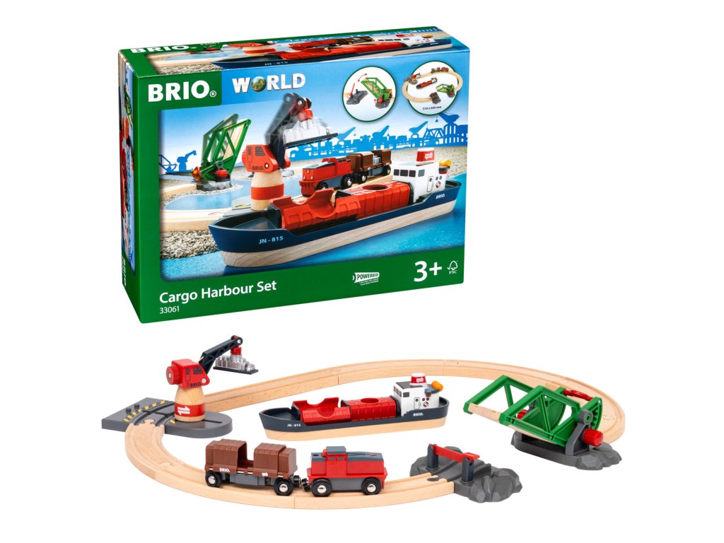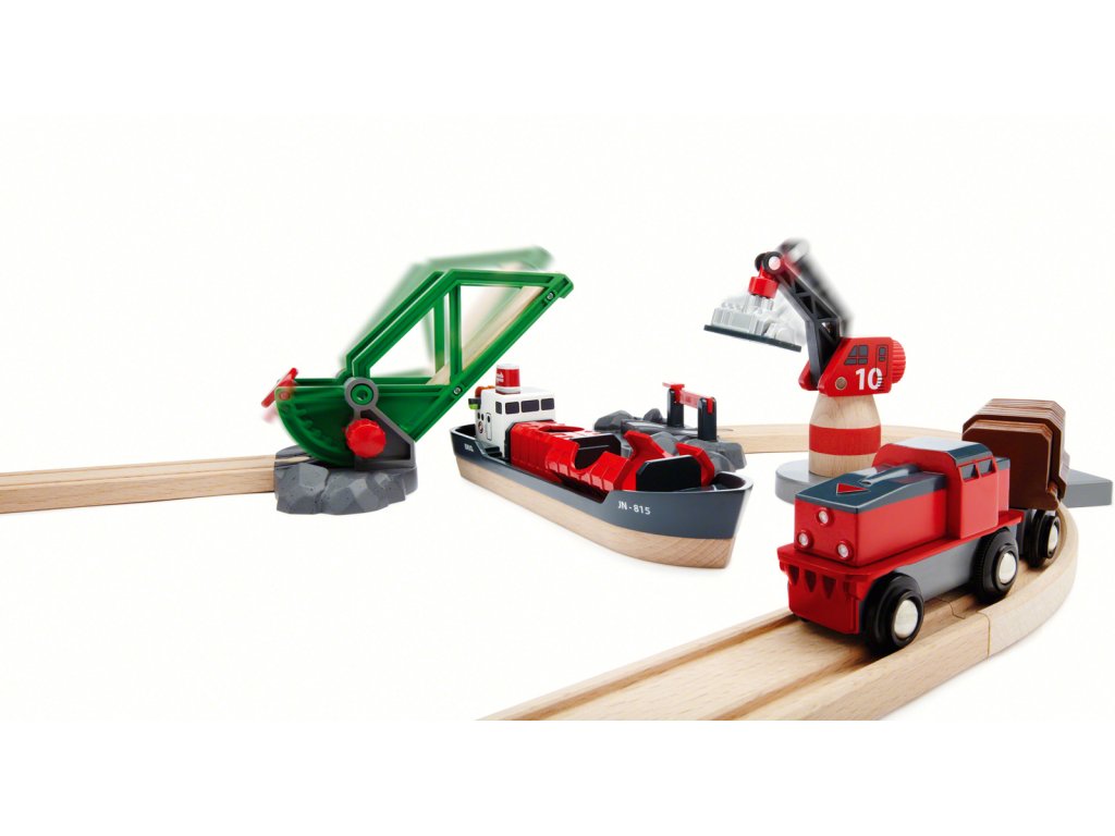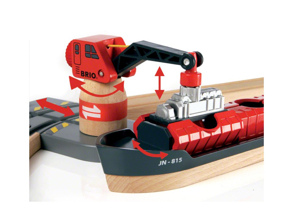 Krásná vláčkodráha Brio Přístaviště s nákladní lodí, kolejemi a lokomotivou okouzlí každého chlapce. Když loď vplouvá do přístavu, je třeba zvednout most a pomocí jeřábu přeložit náklad na vláček. S touto detailně zpracovanou sadou si Vaše dítě užije spoustu zábavy. Tato souprava je kompatibilní s ostatními dřevěnými vláčkodráhami Brio.