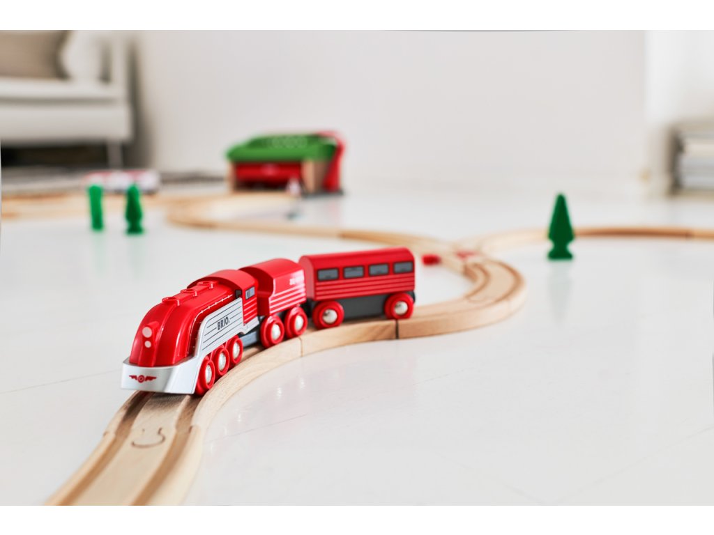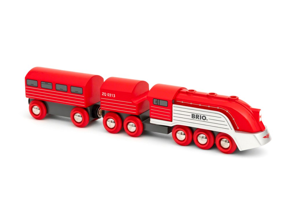 Brio rychlovlak je úžasným doplňkem každé železnice BRIO World. Unikátní retro-futuristický design vlaku je inspirován vlaky z celého světa. Rychlovlak je sytě červený s lesklými stříbrnými detaily. Tento mimořádně dlouhý vlak má dva dřevěné vozy s jemnými detaily a sedm párů kol, aby se bezpečně udržel na trati i při vysoké rychlosti. Rychlovlak je vyroben z vysoce kvalitních plastových a kovových dílů a bukového dřeva certifikovaného FSC®. Obsahuje: 3 dílky. Rozměr: 253 x 34 x 49 mm. Rozměr balení: 27 x 15 x 5 cm. Věk: 3+