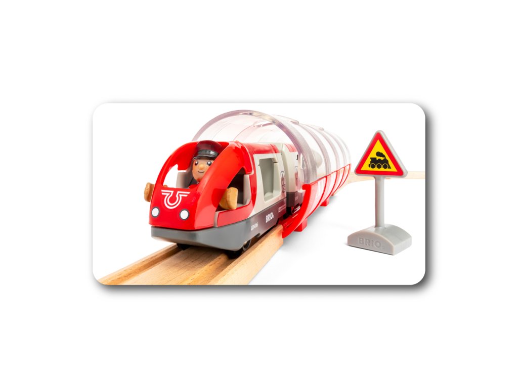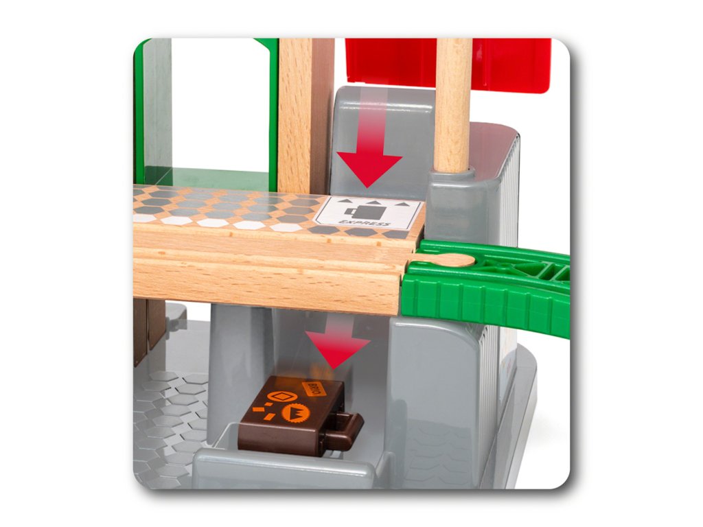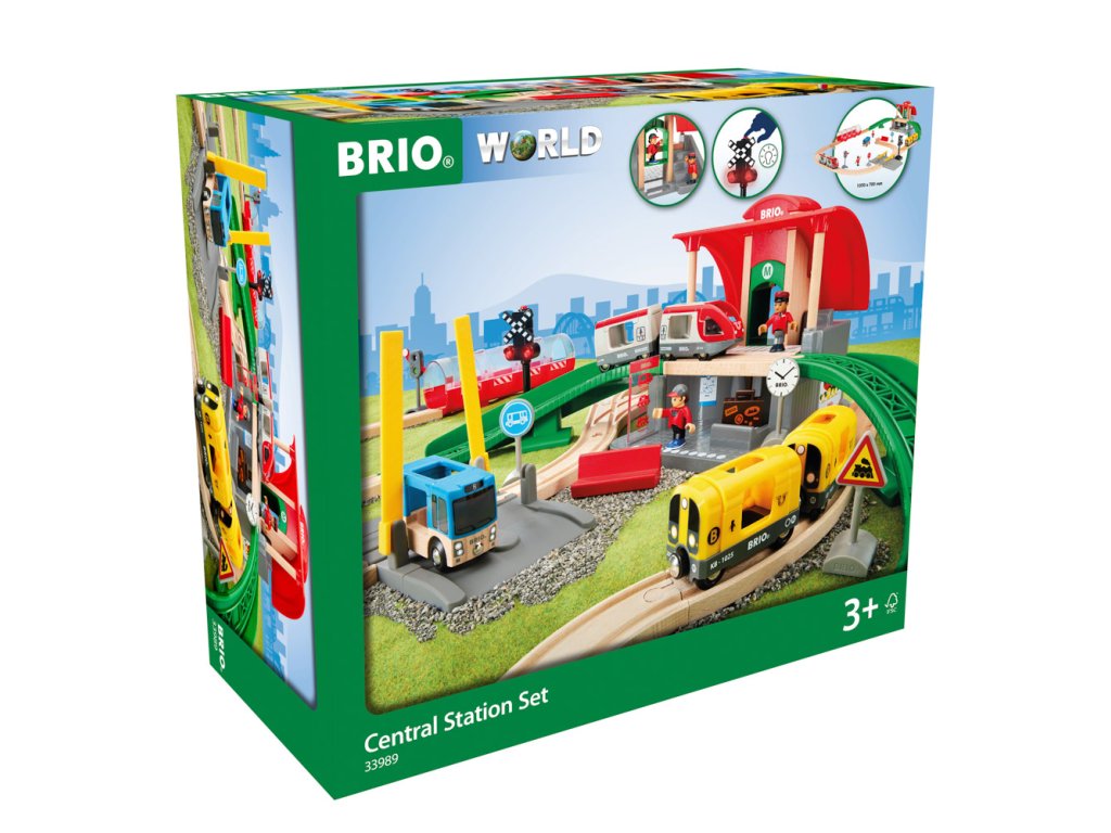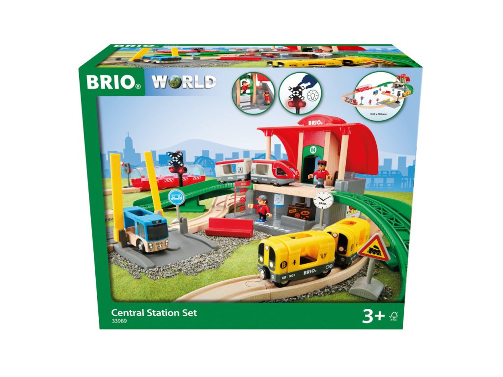Vezměte si lístek a vydejte se na výlet s touto klasickou 24dílnou soupravou vlakového nádraží s vlaky, stanicemi a příslušenstvím. Začněte svou cestu na velké centrální stanici, kde se cestující mohou vydat nahoru výtahem nebo po schodech a dále mohou přestupovat mezi autobusovými a vlakovými linkami. Vyrobeno z evropského bukového dřeva a vysoce kvalitních plastů s precizními kovovými detaily. Rozměr cca: 144,8 x 20,3 x 69,7 cm. Rozměr balení: 45 x 39 x 21 cm. Baterie: 2x LR44 (jsou součástí balení). Počet dílků: 37. Věk: 3+
