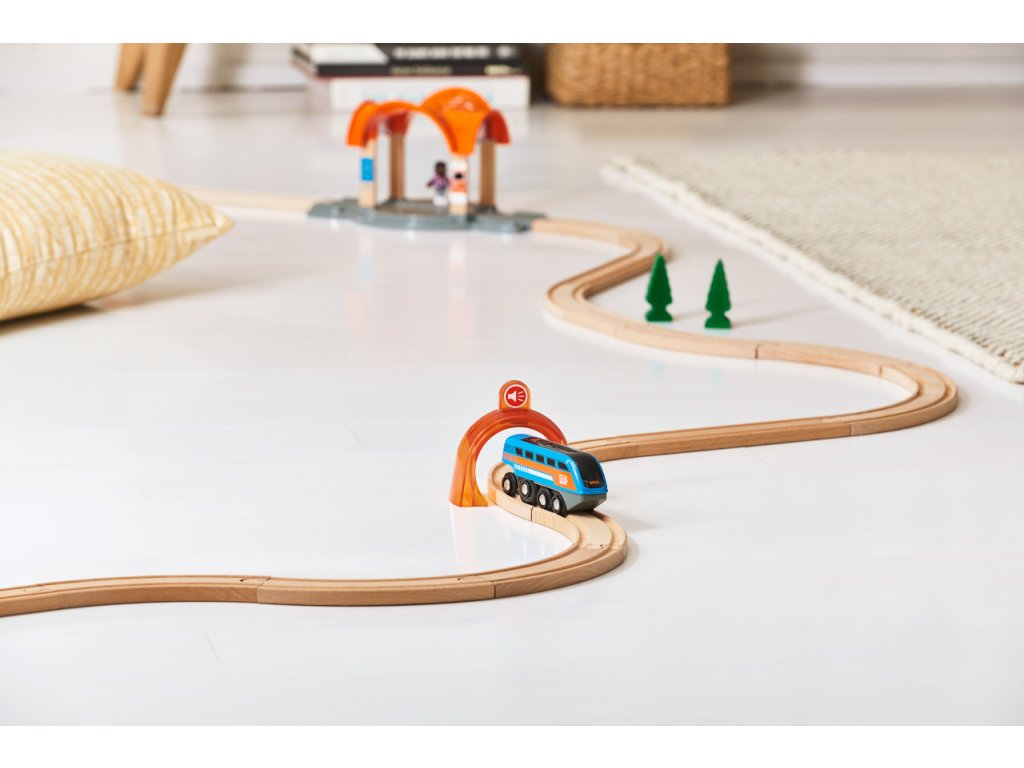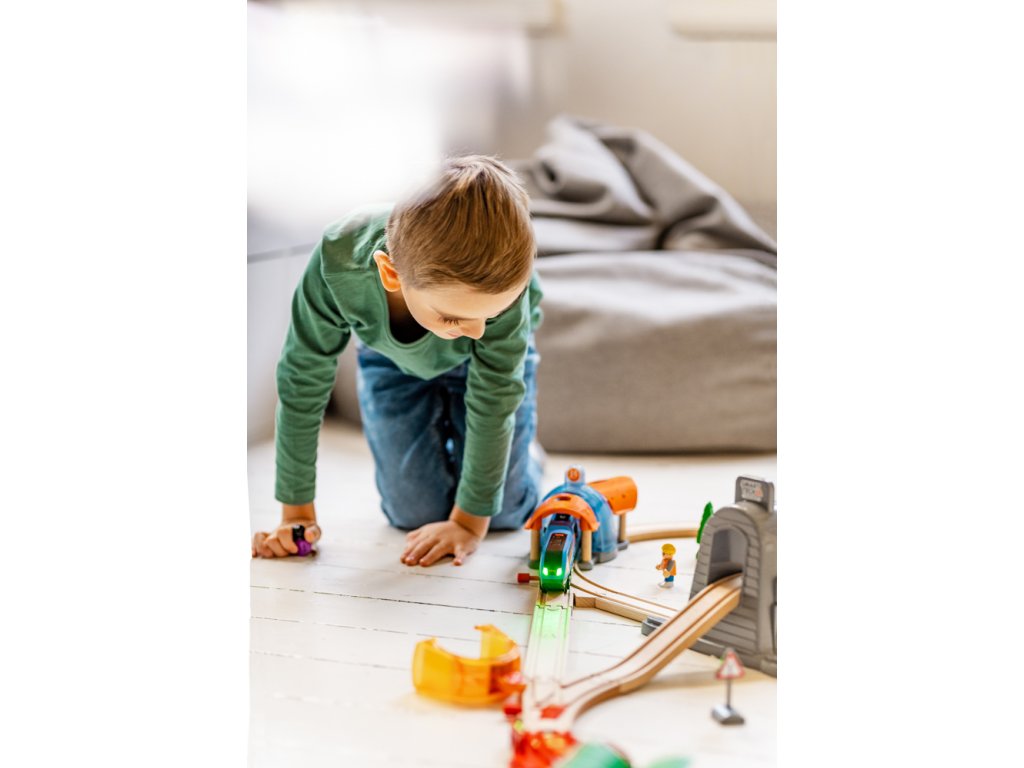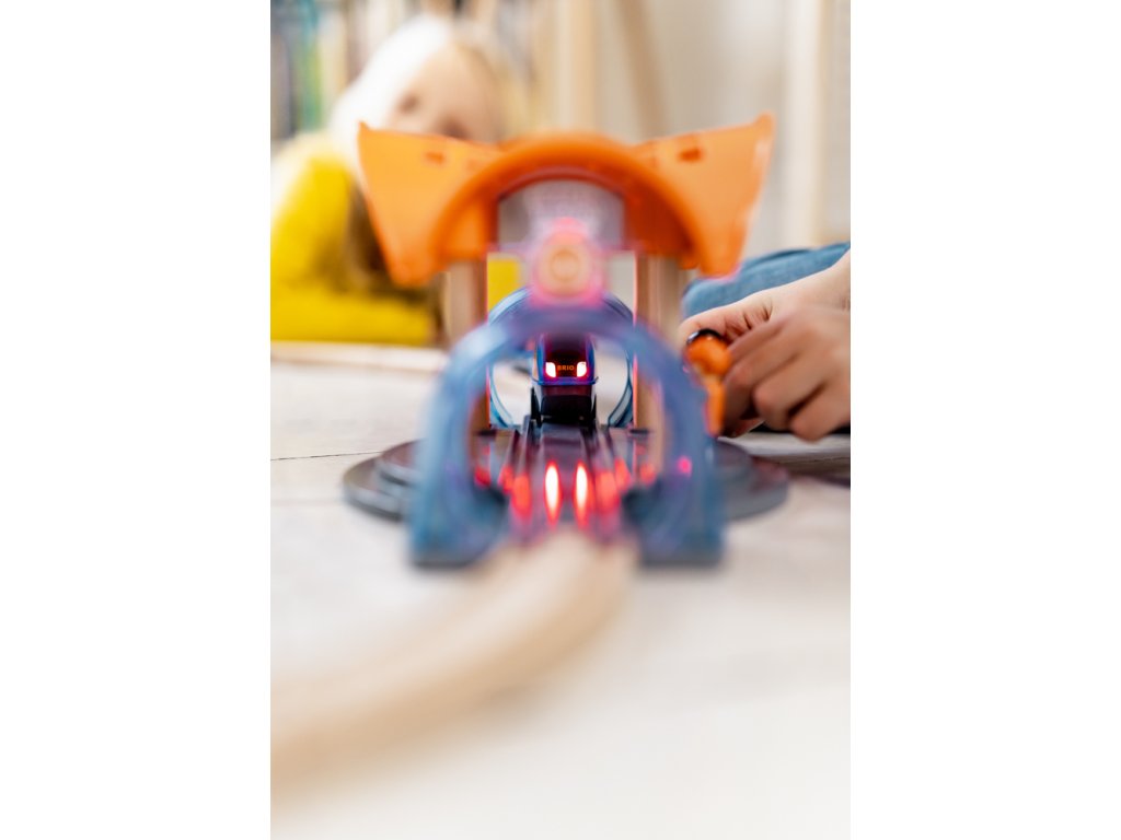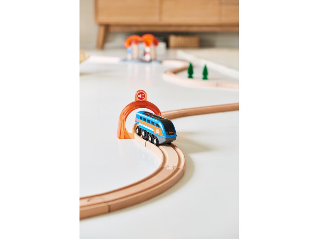 Lokomotiva SMART TECH SOUND se SOUND ACTION tunelem a možností nahrávání vlastních zvuků. Vyzkoušejte inteligentní lokomotivu, která umí komunikovat se svým okolím a automaticky reagovat na příslušenství SMART TECH SOUND. Vícebarevná světla, pohyb a zvuky dělají hru zábavnější. Lokomotiva je dostatečně výkonná, aby zvládla i ty nejtěžší náklady. Zkombinujte lokomotivu se sadou SMART TECH SOUND Myčka s dílnou (33975, prodejné samostatně) nebo SMART TECH SOUND Požární služba (33976, prodejné samostatně) a užijte si chytré a zábavné funkce. Sada obsahuje 2 dílky (lokomotiva, tunel). Baterie: 2 x AAA (baterie jsou součástí balení). Rozměr balení: 29 x 15 x 11 cm. Věk: 3+. Video: https://vimeo.com/438521051