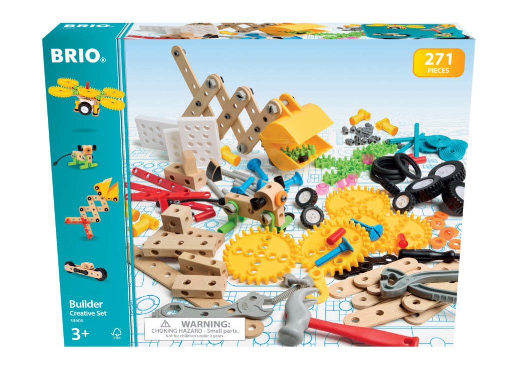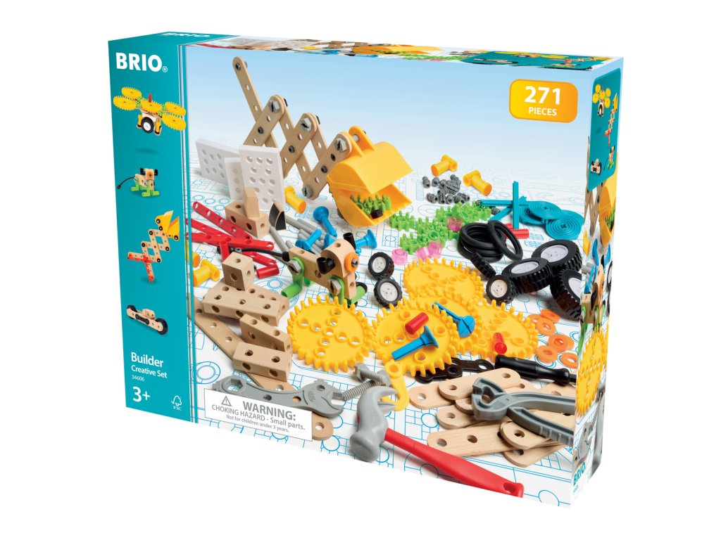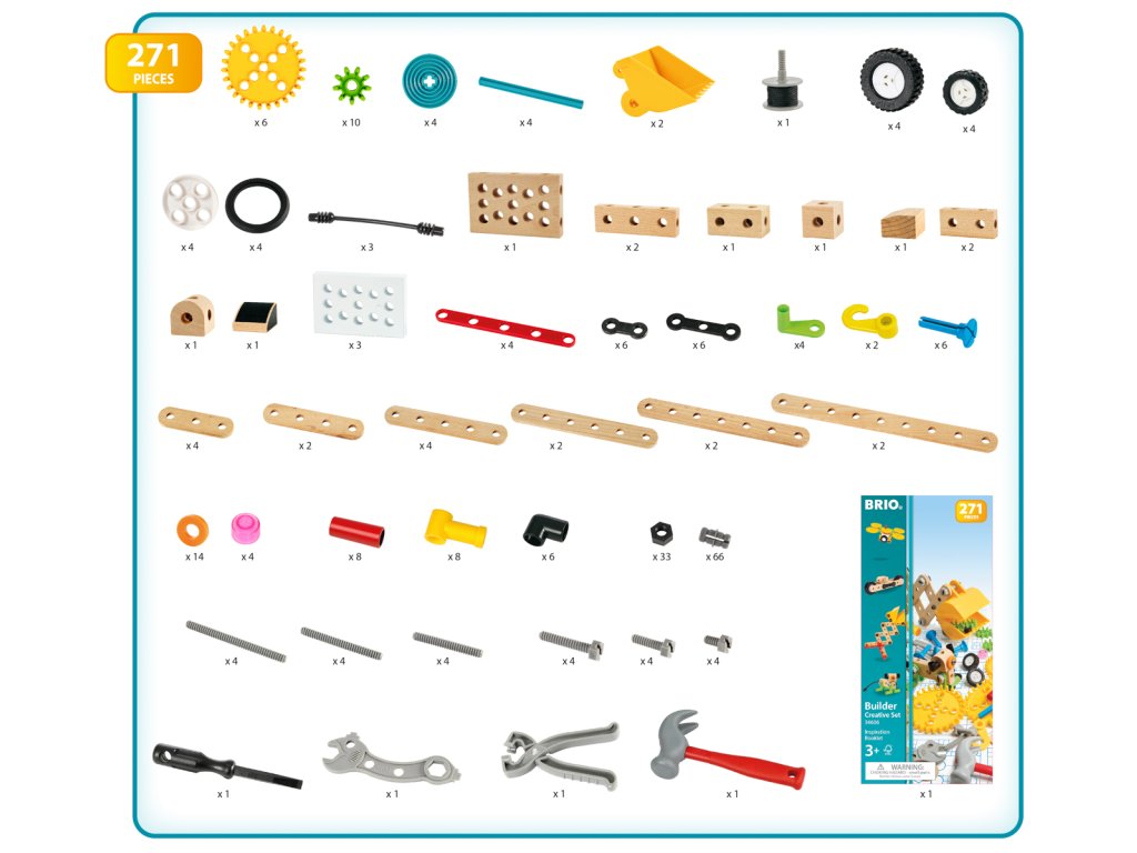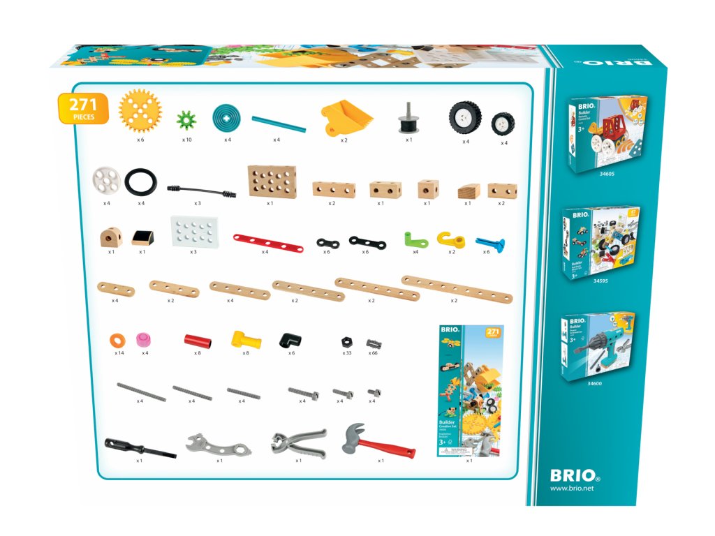 Oživte svoji představivost s kreativní sadou Brio Builder. Tato 271dílná stavebnice je skvělá pro mladé inženýry a obsahuje vše, co potřebují, aby proměnili nápady ve skutečnost. Detailní nástroje, jako jsou šroubováky, kladiva a klíče, spolu se složitými součástmi, jako jsou ozubená kola, převody a další, lze použít k vytvoření jakýchkoli výtvorů, které je napadnou. Tento otevřený přístup ke stavební hře poskytuje dětem zábavný způsob experimentování a procvičování koordinace ruka-oko. Stavebnice přináší dětem spoustu zábavy. Podporuje fantazii a jemnou motoriku. Certifikace FSC®: FSC 100 %. CE certifikace: Ano. Rozměry balení: 30 x 39 x 8 cm. Věk: 3+