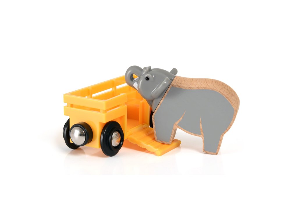 Vlakový vagónek a realistická hračka slona s odolným dřevěným tělem a detailní plastovou hlavou. Kovové magnetické konektory na žlutém vagónku připojíte k jakémukoliv železničnímu vozidlu z BRIO World. Hračka slon a vagónek vybízí malé hráče ke hře na zvířecí safari a podporuje jejich kreativní myšlení. Rozměr: 8,6 x 3,4 x 5 cm. Počet dílků: 2. Věk: 3+