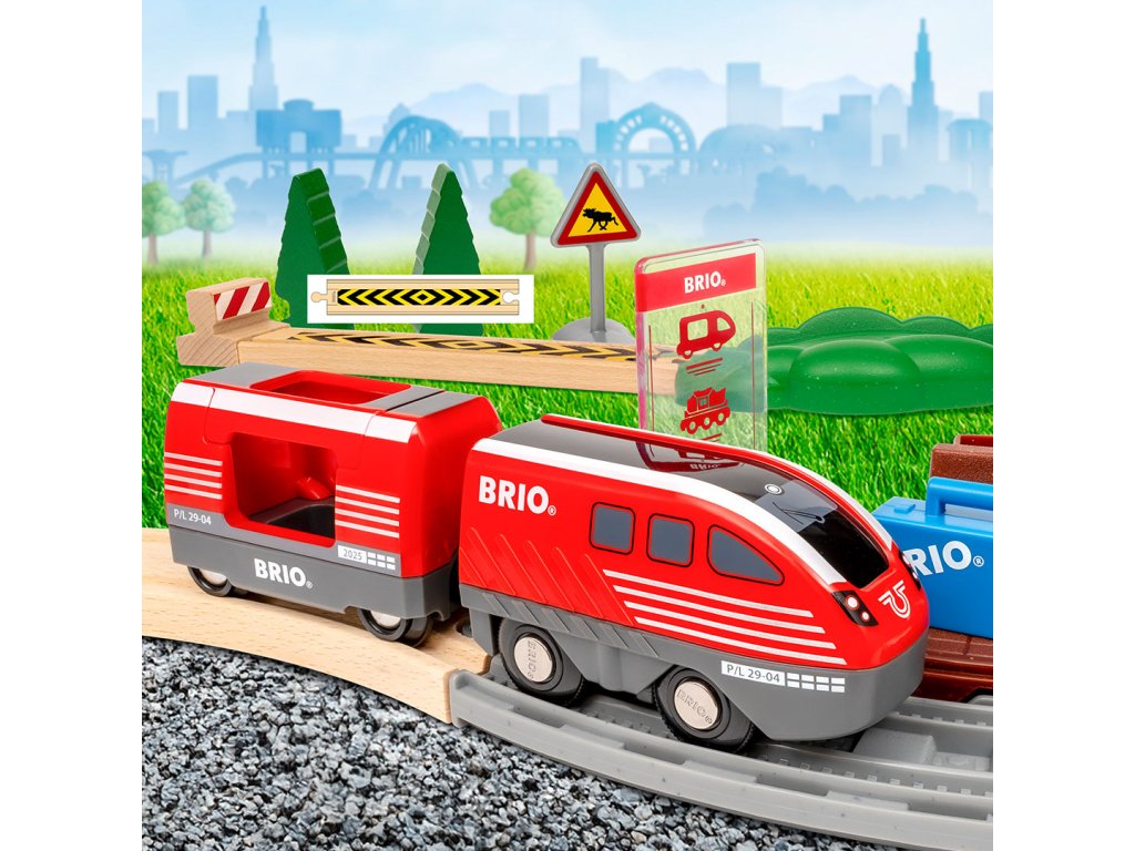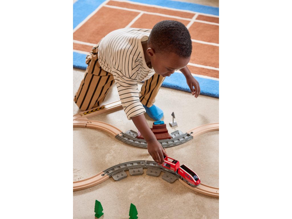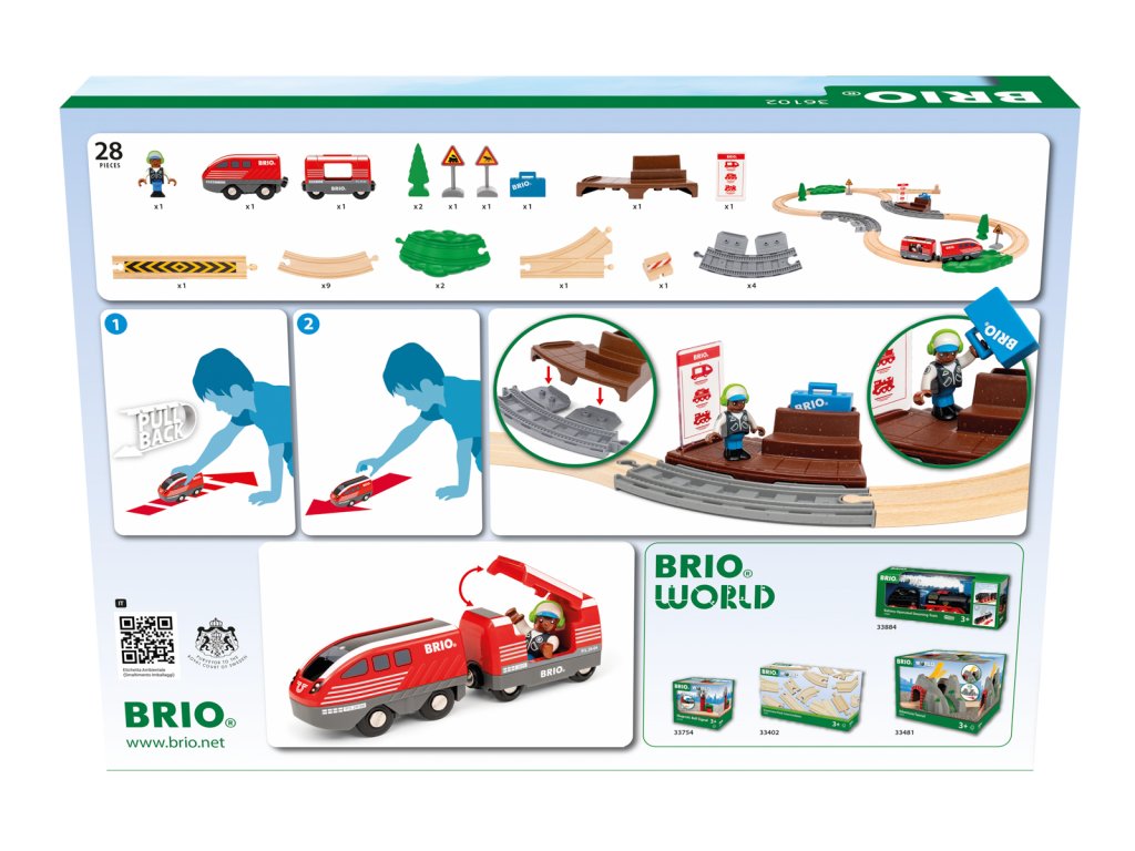 S vlakovou sadou a natahovacím vláčkem si užijete spoustu zábavy. Vláček je poháněný 100 % energií batolat, nepotřebuje žádné baterie, aby vykouzlil úsměv na dětských tvářích. Nechte cestující nastoupit na nádraží, natáhněte červený vláček a sledujte, jak uhání. Když zpomalí, stačí jej znovu natáhnout a hra může pokračovat – bez zbytečných slziček. Díky jednoduchým funkcím a klasickým BRIO magnetům je tato vláčková sada s venkovským motivem skvělým rozšířením každé kolekce BRIO World, které přináší nekonečnou radost malým strojvůdcům. Sada obsahuje 28 dílů: 1x natahovací vláček, 1x vagon pro cestující, 1x figurka cestujícího, 1x nástupiště, 4x kolejnice, 2x dřevěný strom, 2x scénické kolejnice, 12x dřevěné kolejnice a spoustu dalšího příslušenství. Certifikace FSC®. Rozměry balení: 27 x 37 x 6 cm. Věk: 3+