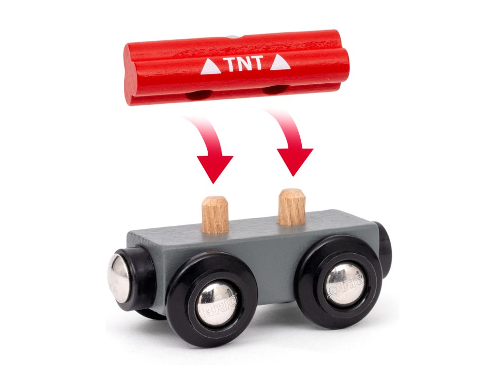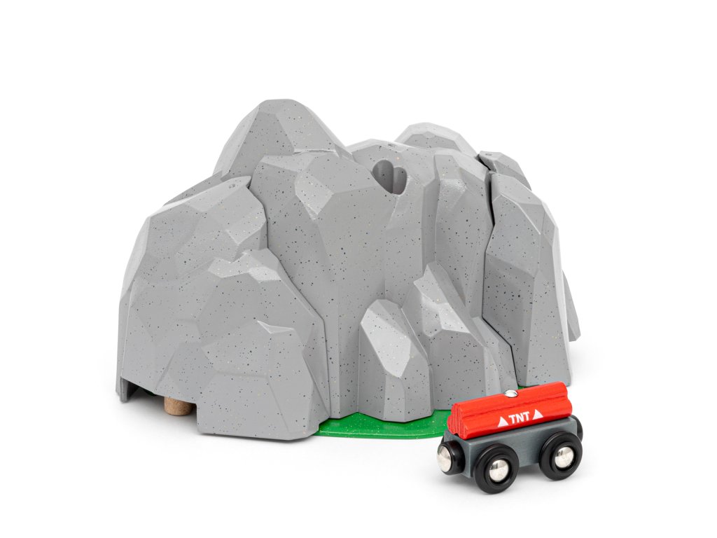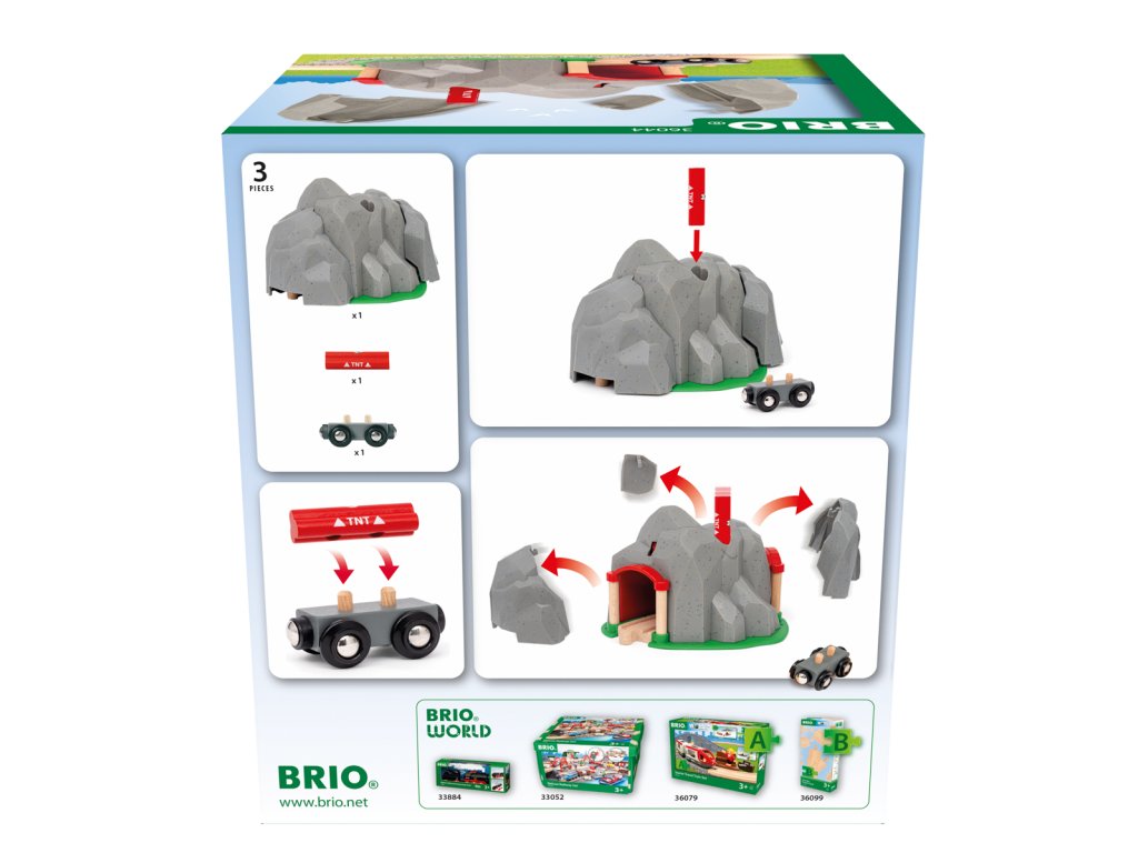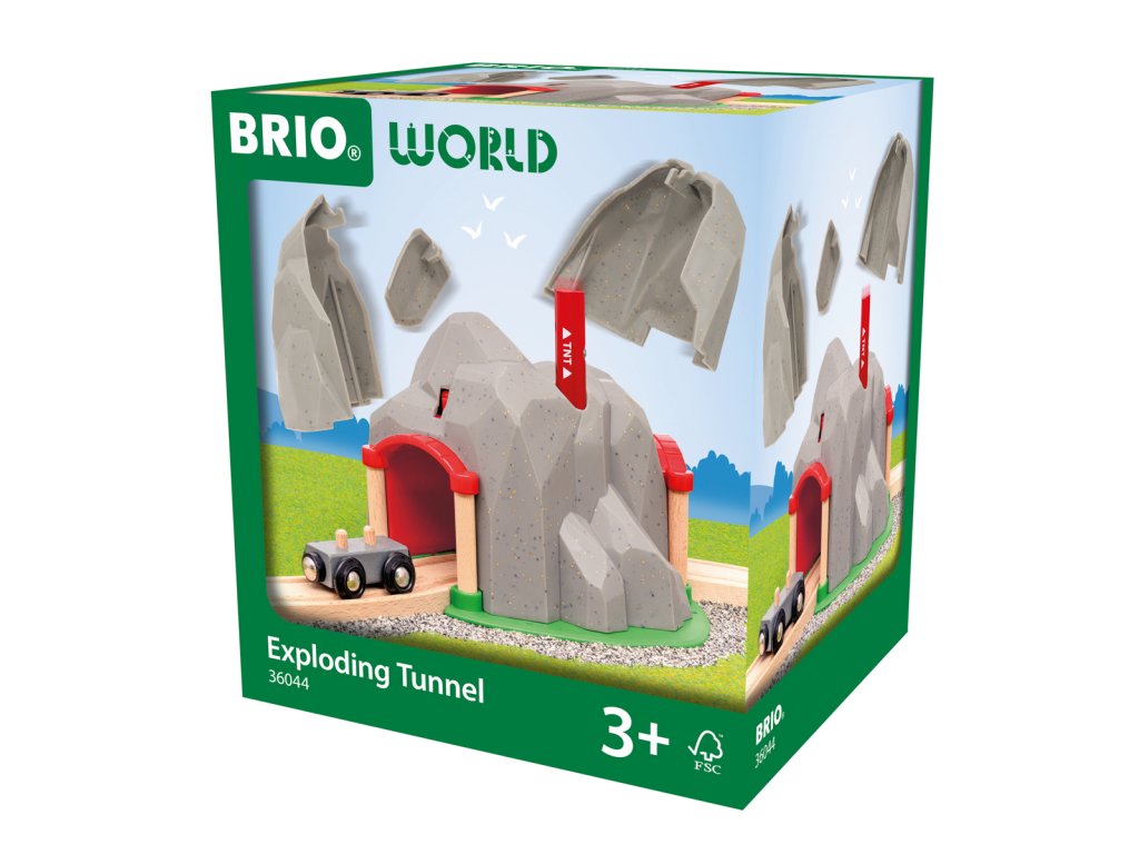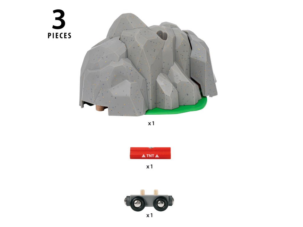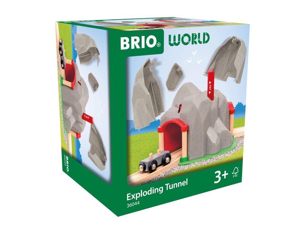 BUM! Vyhoďte horu do povětří a projeďte jejím středem – vybuchujícím tunelem. Velká sada s realistickým kamenným povrchem a skrytým železničním tunelem bude skvělým doplňkem každé sady BRIO World. Do vrtu vložte TNT nálož a sledujte, jak hora exploduje a odhalí tajný tunel. Hračka je vyrobena z robustních plastových a dřevěných dílů a díky průchozí zakřivené dřevěné dráze ji snadno propojíte s ostatními hračkami BRIO World. Vybuchující tunel obsahuje 3 díly: 1× vybuchující tunel s oddělitelnými částmi, 1× TNT nálož a 1× vagon. Rozměry balení: 20 x 18 x 16 cm. Věk: 3+