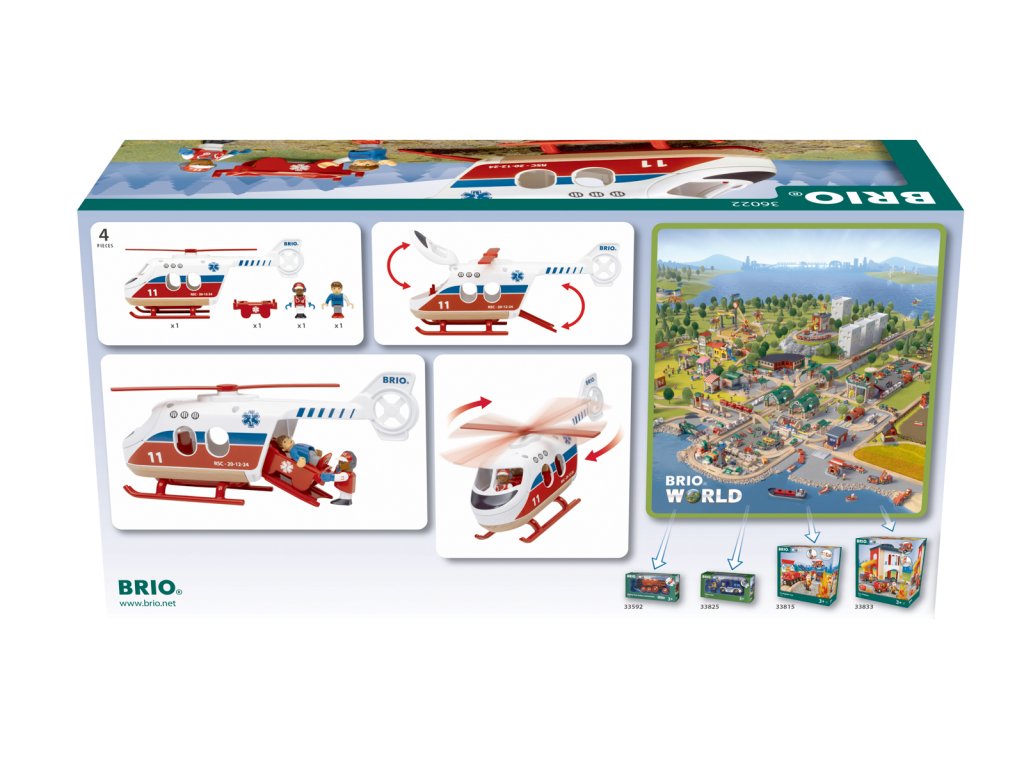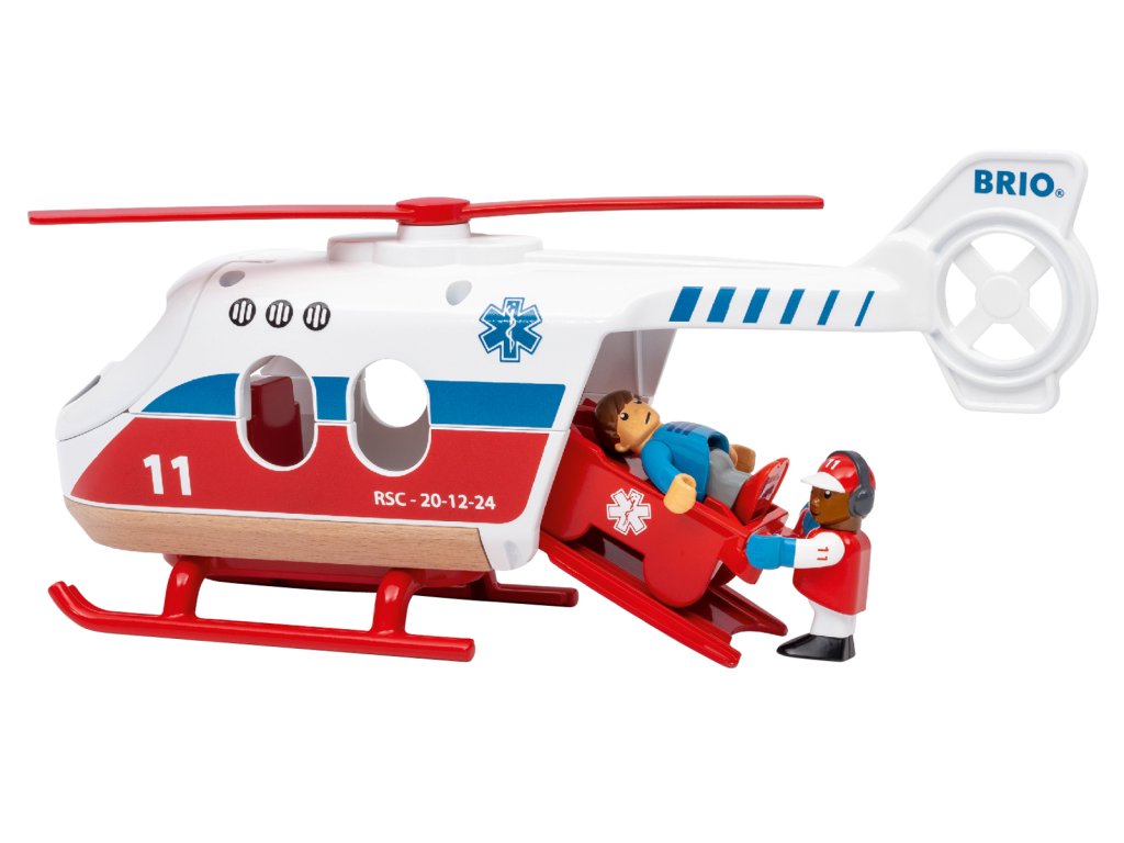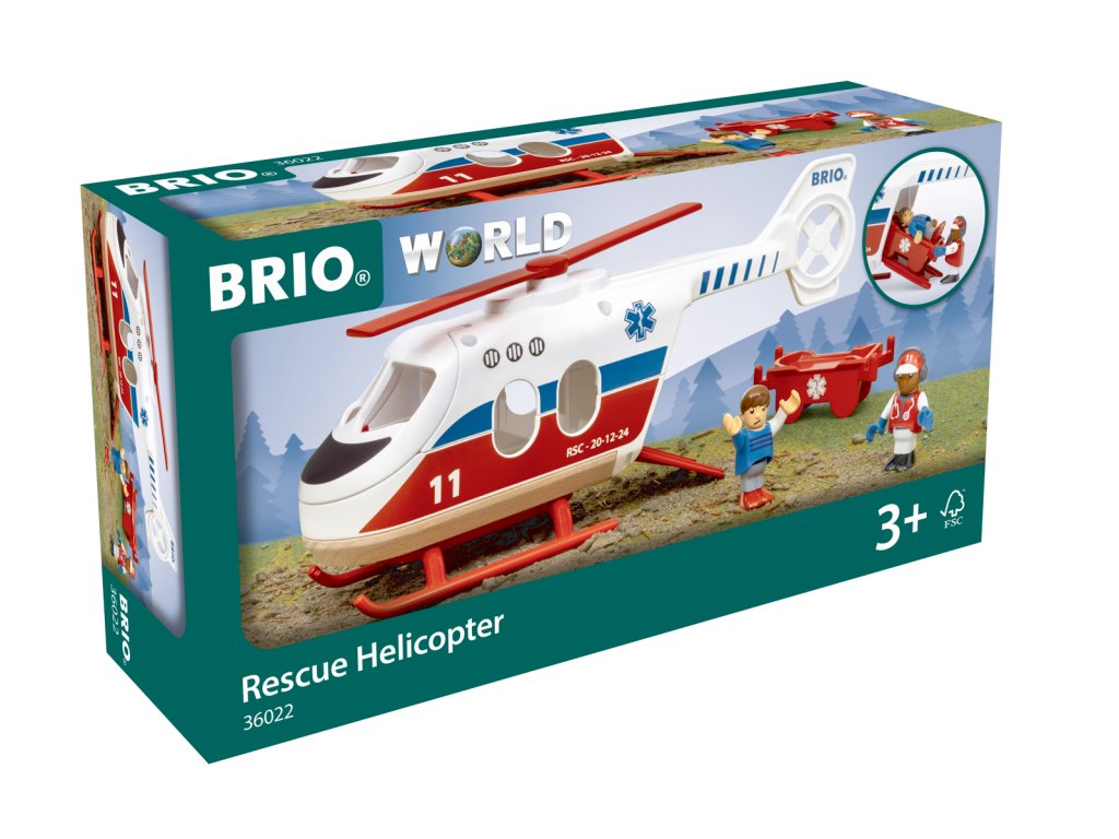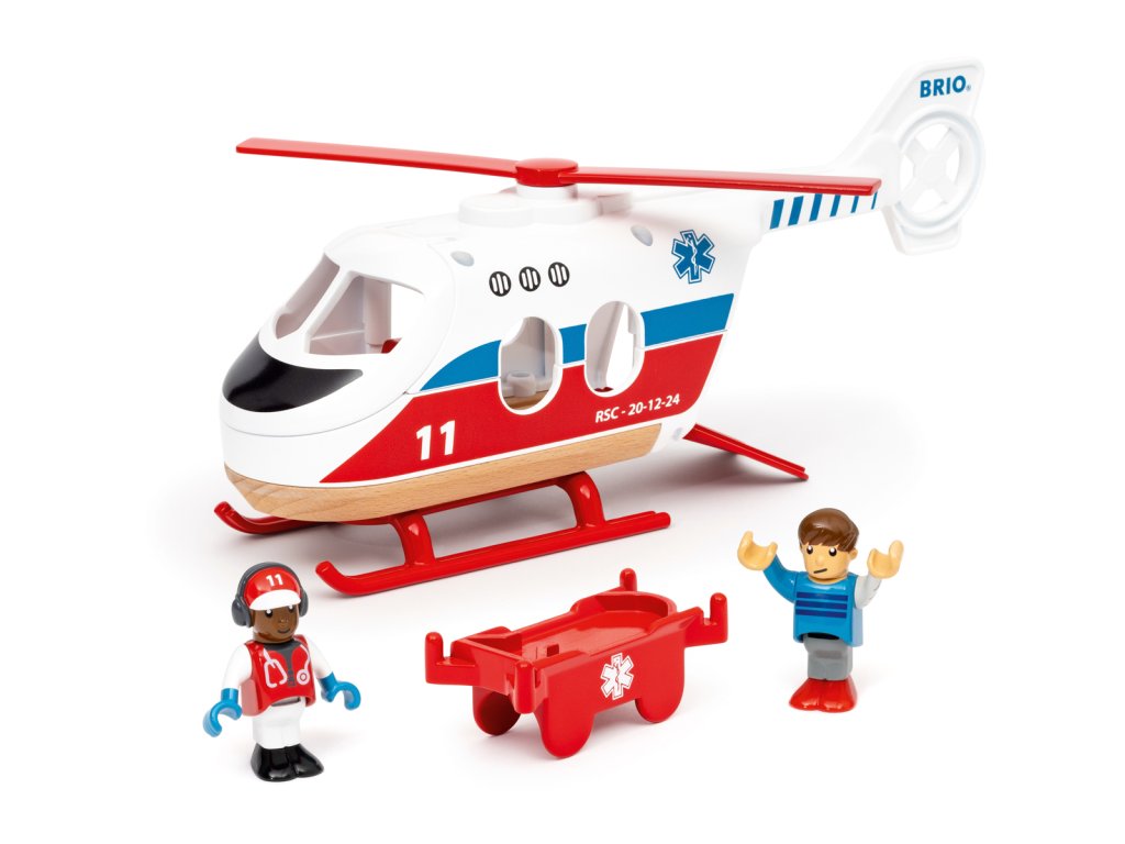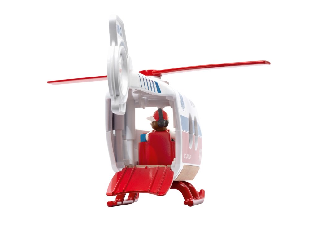 Vydejte se na záchranu se záchranným vrtulníkem! Vrtulník má rotující listy rotoru, otevírací přední a zadní dveře a nosítka. Pilot někdy riskuje život a končetiny, aby pomohl zraněné osobě. Položí pacienta na nosítka a poté nosítka naloží do zadní části vrtulníku, než znovu vzlétne a odletí zpět na základnu. Balení: 20x12,5x27,8cm. Věk: 3+