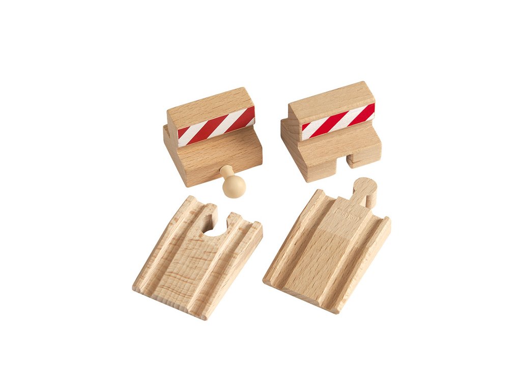 2 ukončovací zarážky ke slepé koleji a 2 nájezdové rampy. Části jsou vyrobeny z vybraného bukového dřeva nejvyšší kvality.