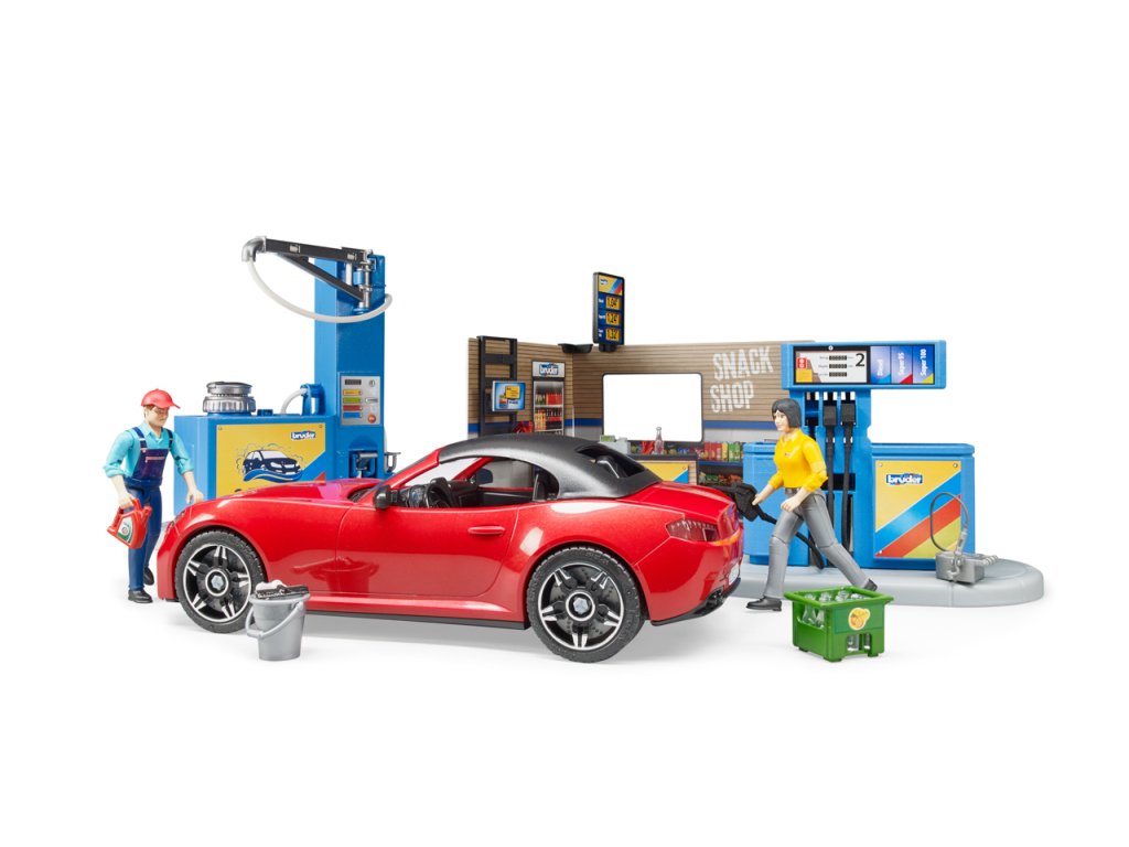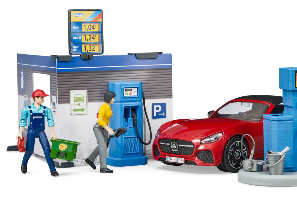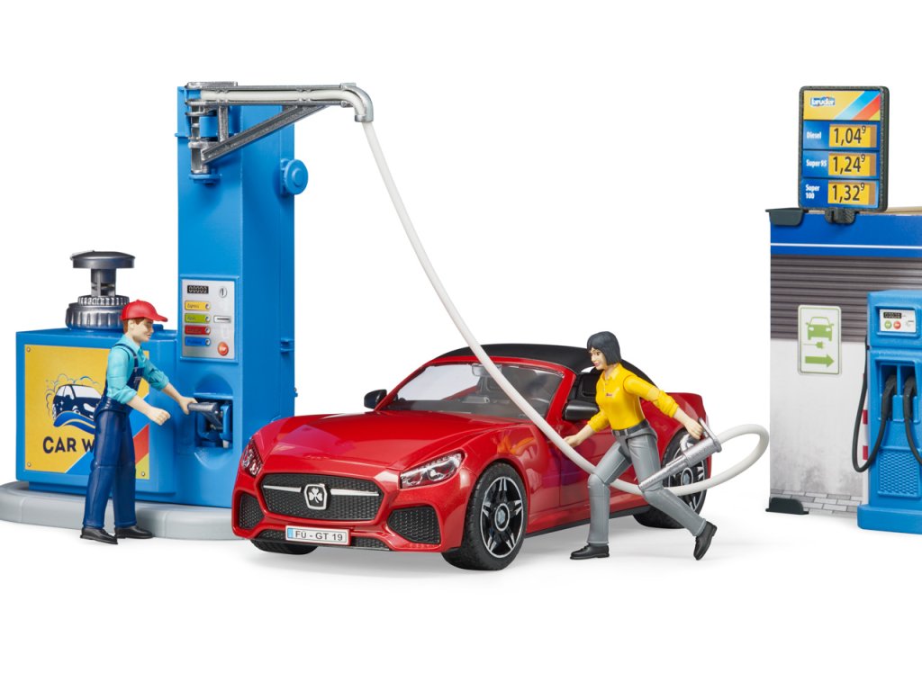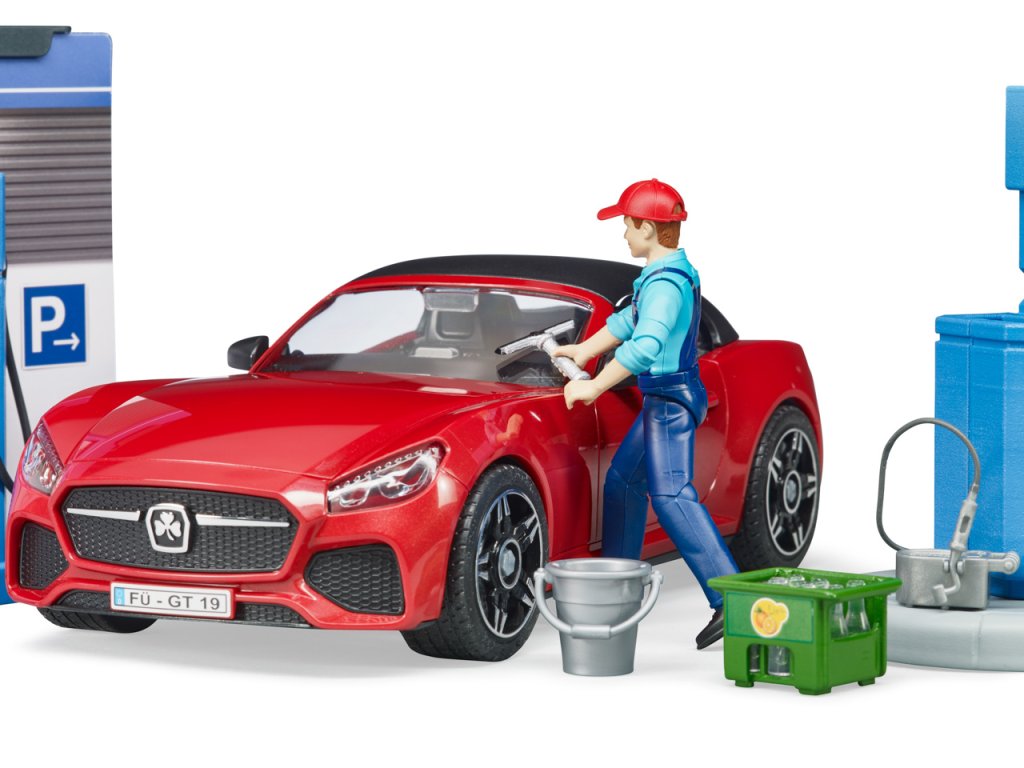 Bworld, to je herní svět BRUDER. Skládá se z pohybujících se figurek, zvířat, doplňků, tematických sad a je zařazen do známých kategorií BRUDER. Ať už jako řidič, jezdec, obsluha čerpací stanice, lékař na ošetřovně nebo servis v motocyklové dílně, sady z Bworld nabízejí spoustu zábavy a jsou ideálním rozšířením světa vozidel. Všechna vozidla potřebují tankovat a občas i umýt. K tomu slouží nová, skvěle vybavená čerpací stanice Bworld. Na čerpací stanici jsou k dispozici všechny běžné druhy paliva včetně nabíjecí stanice pro e-vozidla. Obsluha čerpací stanice pracuje v moderní prodejně s monitorem a pokladním systémem. K čištění vozidel je zde připravena plně funkční myčka. Vodu lze naplnit do integrované nádrže. Tlak se zvyšuje pomocí vestavěné ruční vzduchové pumpy a čištění vodou lze spustit/vypnout vypínačem. BRUDER Roadster s odnímatelnou střechou a systémem výměny kol včetně figurky zákazníka doplňují tuto úžasnou sadu. Hračka není vhodná pro děti mladší 3 let. Vhodné pro hru uvnitř i venku. Měřítko: 1:16. Rozměr balení: 19,5 x 26 x 56,5 cm. Věk: 4+