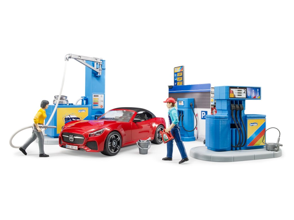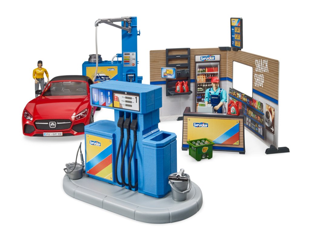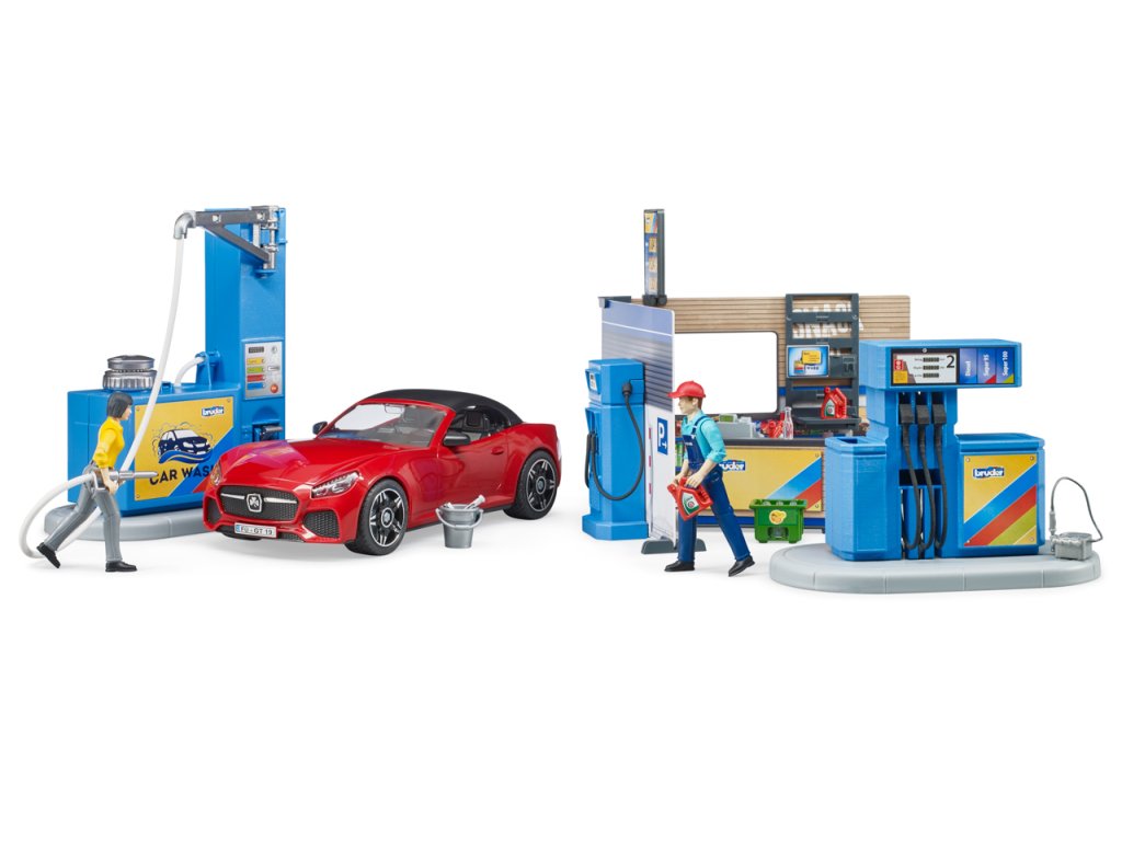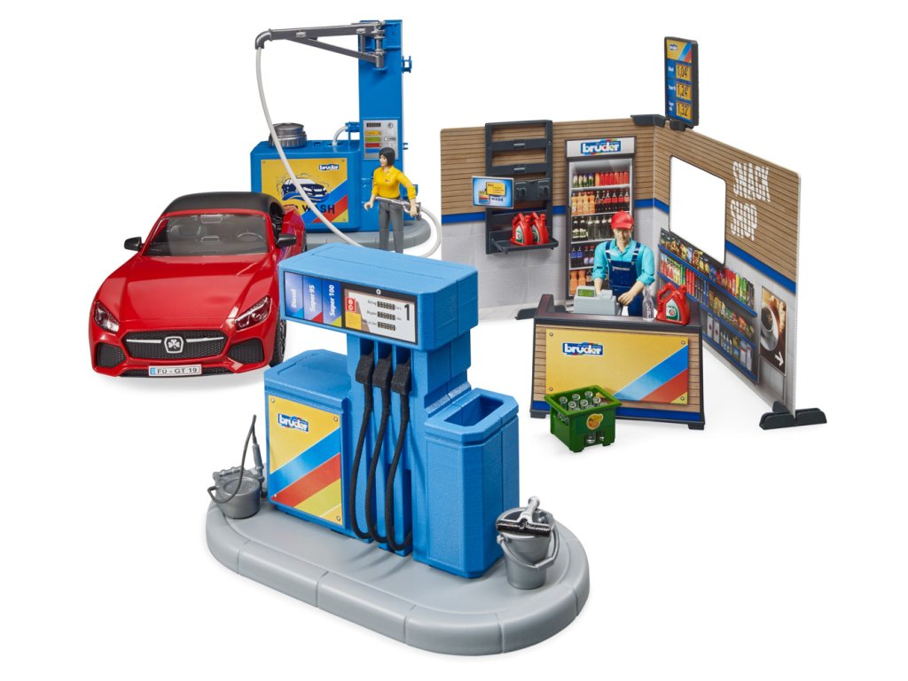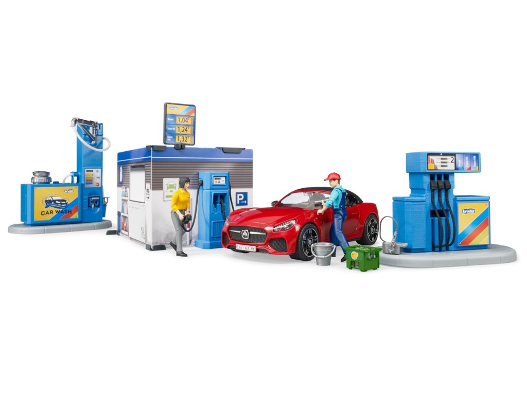 Bworld, to je herní svět BRUDER. Skládá se z pohybujících se figurek, zvířat, doplňků, tematických sad a je zařazen do známých kategorií BRUDER. Ať už jako řidič, jezdec, obsluha čerpací stanice, lékař na ošetřovně nebo servis v motocyklové dílně, sady z Bworld nabízejí spoustu zábavy a jsou ideálním rozšířením světa vozidel. Všechna vozidla potřebují tankovat a občas i umýt. K tomu slouží nová, skvěle vybavená čerpací stanice Bworld. Na čerpací stanici jsou k dispozici všechny běžné druhy paliva včetně nabíjecí stanice pro e-vozidla. Obsluha čerpací stanice pracuje v moderní prodejně s monitorem a pokladním systémem. K čištění vozidel je zde připravena plně funkční myčka. Vodu lze naplnit do integrované nádrže. Tlak se zvyšuje pomocí vestavěné ruční vzduchové pumpy a čištění vodou lze spustit/vypnout vypínačem. BRUDER Roadster s odnímatelnou střechou a systémem výměny kol včetně figurky zákazníka doplňují tuto úžasnou sadu. Hračka není vhodná pro děti mladší 3 let. Vhodné pro hru uvnitř i venku. Měřítko: 1:16. Rozměr balení: 19,5 x 26 x 56,5 cm. Věk: 4+