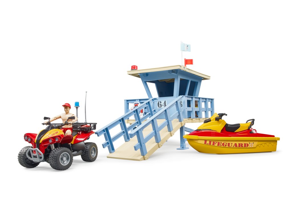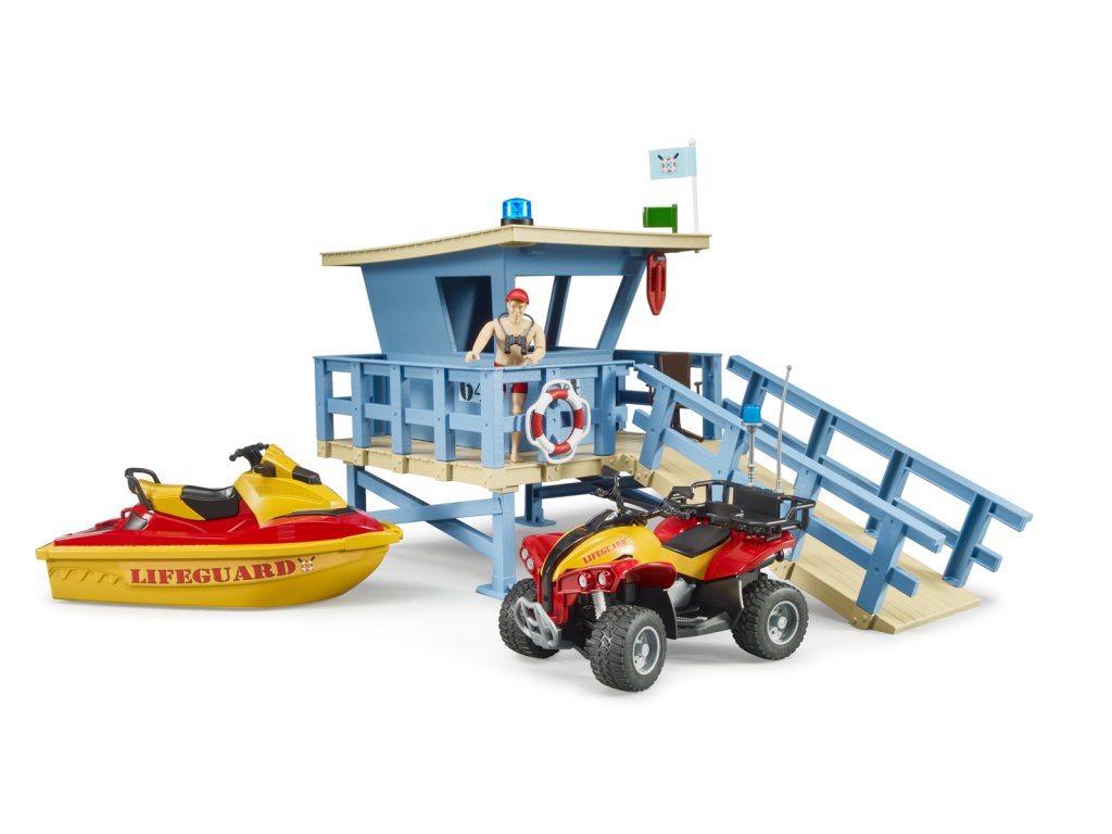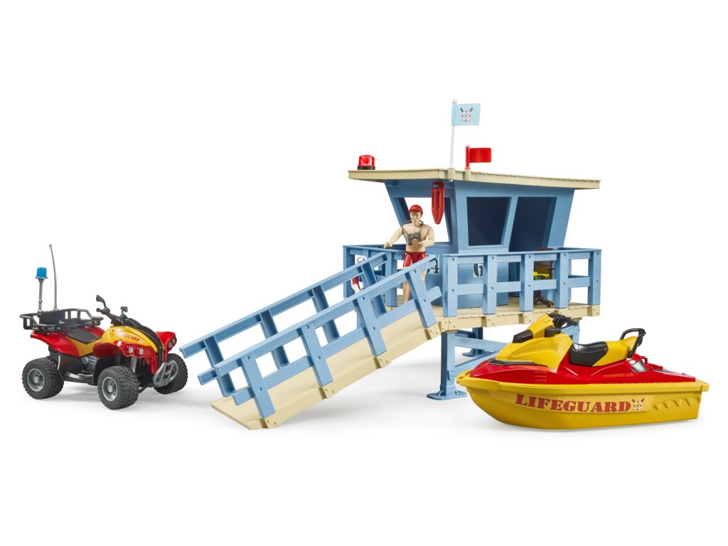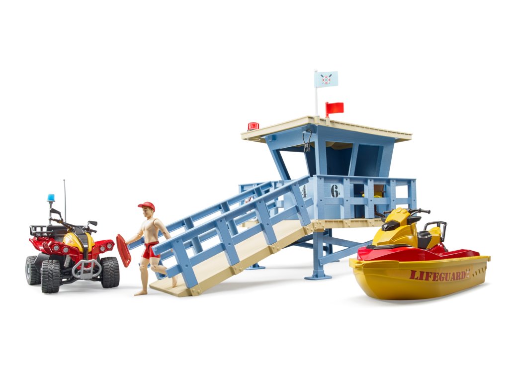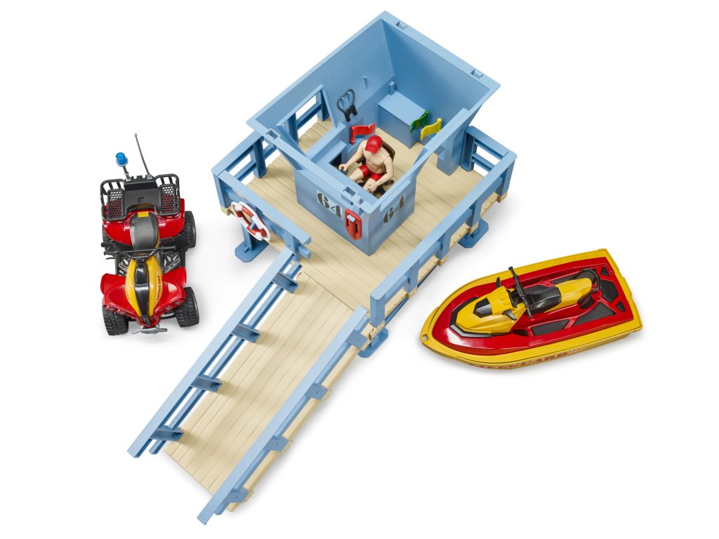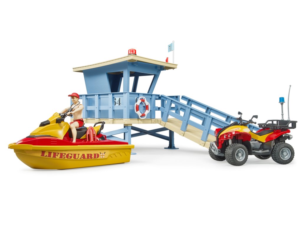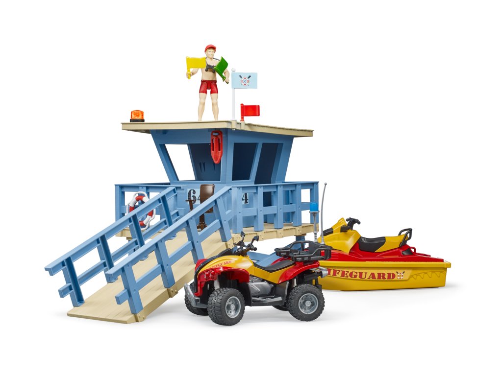 Rekreace a sporty na vodě a ve vodě jsou ve světě volného času velmi důležité. Od nynějška bude plavčík a jeho stanice zodpovědní za bezpečnost všech milovníků vodních sportů. Jeho úkolem je rozpoznat a jednat v nebezpečných situacích na vodě i ve vodě. Stanice plavčíka je vybavena novým otočným majákem pro signalizaci nebezpečných situací. Pro operace ve vodě plavčík využívá vodní plavidlo. Balení: 18,8x25,4x56cm. Věk: 3+