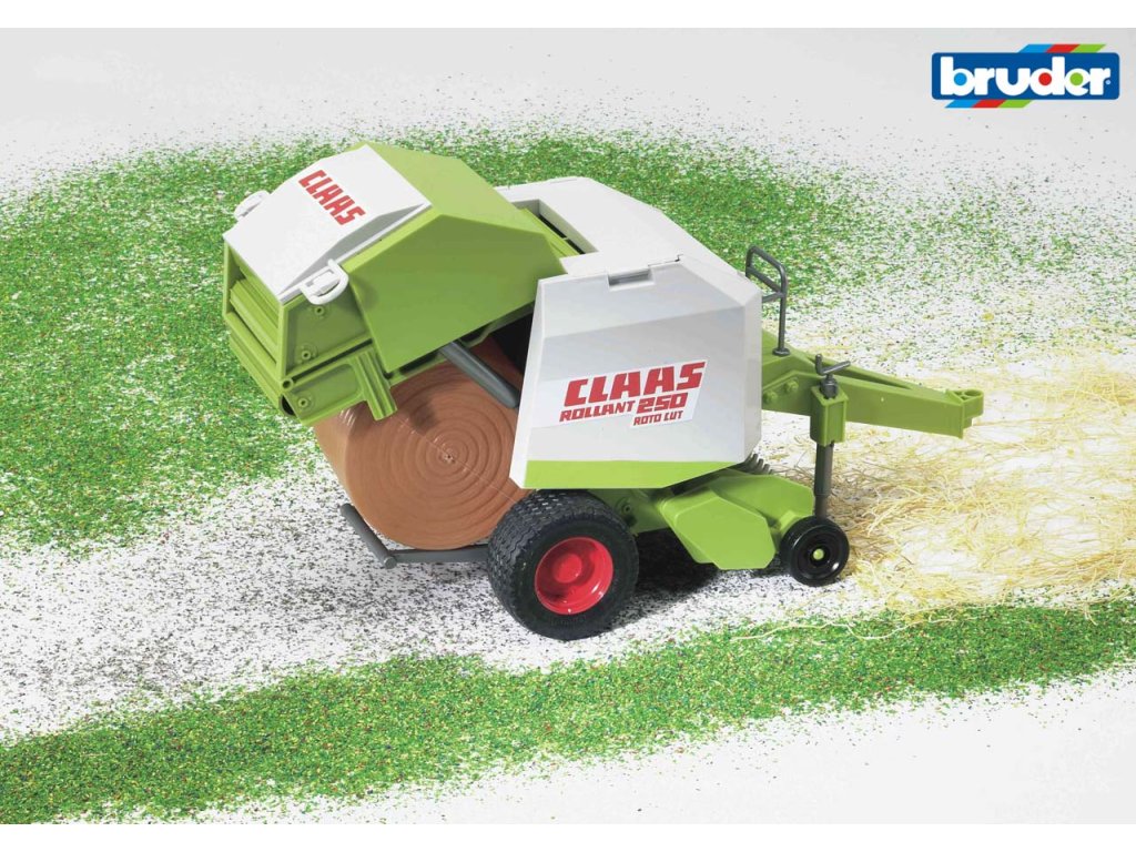 Farmer - Claas Rollant 250 vlek k traktoru na výrobu balíků slámy 1:16. Tento vlek na výrobu slámy je vyroben z vysoce kvalitního a odolného plastu.Během jízdy je sběrač,který se pohybuje pomocí opěrného kolečka,plně funkční. Zadní část lisu i boční kryty je možné otevřít a nahlédnout tak na lisovací zařízení. Pro další hrací kombinace je samozřejmě možné dokoupit další kulaté balíky. Lis lze kombinovat se všemi traktory z řady Profi série a s navíječkou balíků. Je vhodný pro exteriér i interiér. Rozměry 290 x 150 x 150 Upozornění: Toto zboží není určeno pro distribuci v ČR.