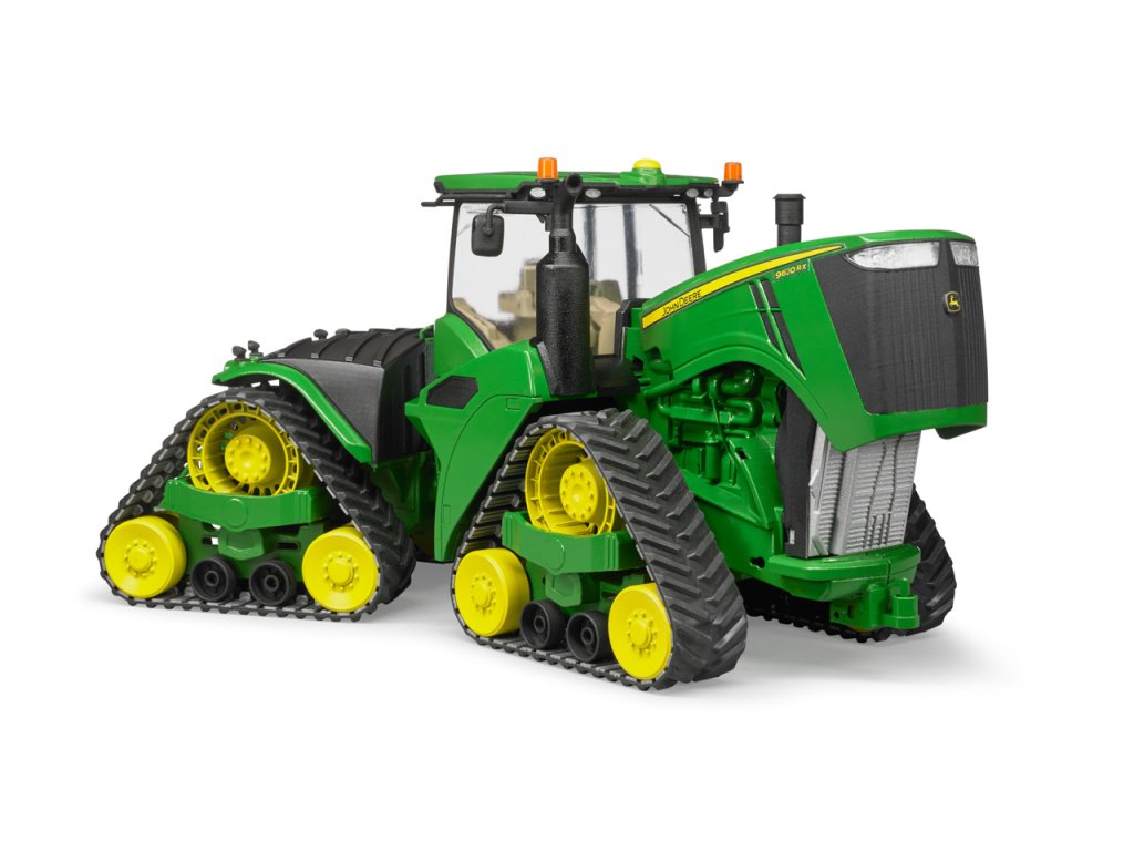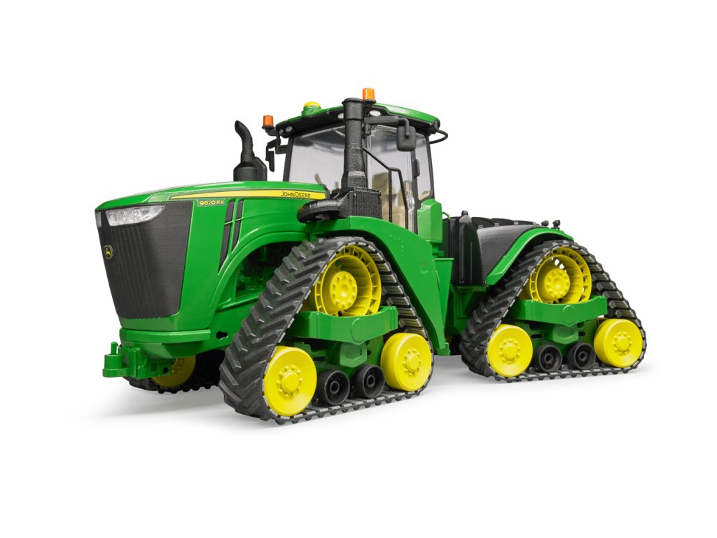 Strojem 9620RX představuje John Deere dosud nejvýkonnější a největší pásový traktor. S výkonem motoru až 670 koní a čtyřmi pásovými pásy, které mu dodávají neuvěřitelnou tažnou sílu a současně nejlepší možnou ochranu půdy, je dokonalým partnerem, pokud jde o zvládnutí nejtěžší tažné práce s přídavnými zařízeními, jako je kultivátor, pluh a setí (prodejné samostatně). Tento impozantní traktor je nyní k dispozici také v měřítku 1:16 s jedinečnou úrovní detailů. Stejně jako originál má model 4 nově vyvinuté pohony housenek a terénní kloubové řízení. Kabina řidiče má dveře, které lze otevřít, a také impozantní kapotu lze otevřít a ukazuje obrovský motor. K spojce přívěsu lze pomocí výškově nastavitelného zvedacího zařízení připojit řadu přívěsných zařízení ze zemědělské řady BRUDER. Vyrobeno z vysoce kvalitních plastů. Vhodné pro hru doma i venku. Měřítko: 1:16. Věk: 3+