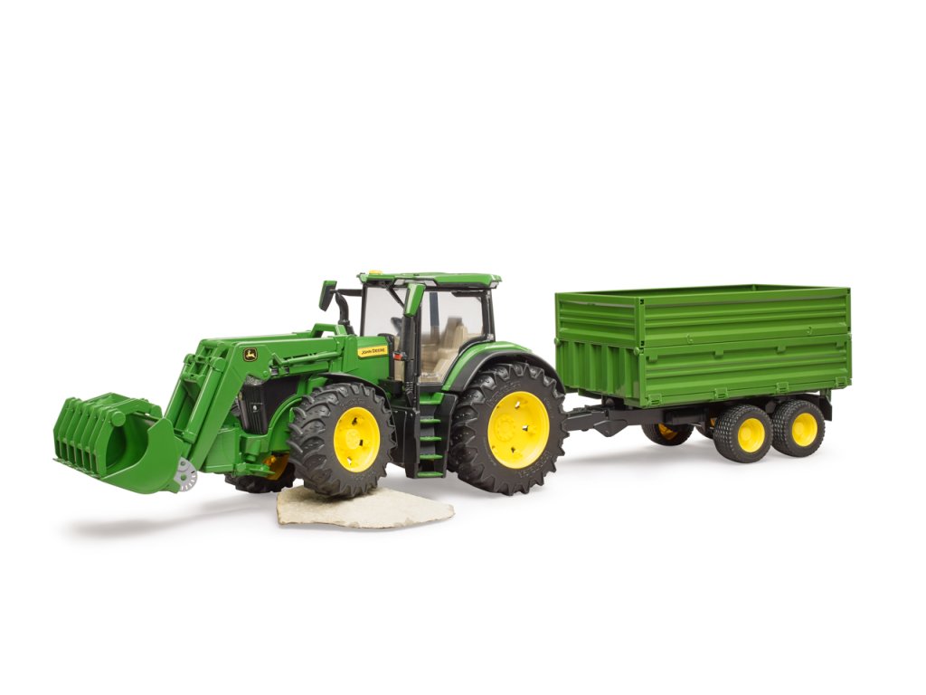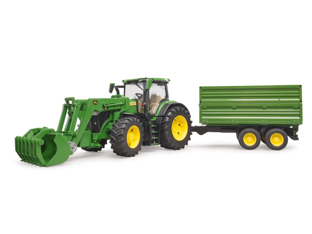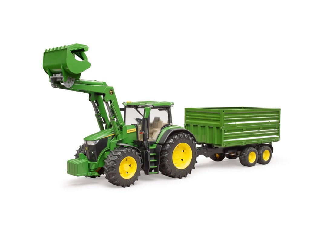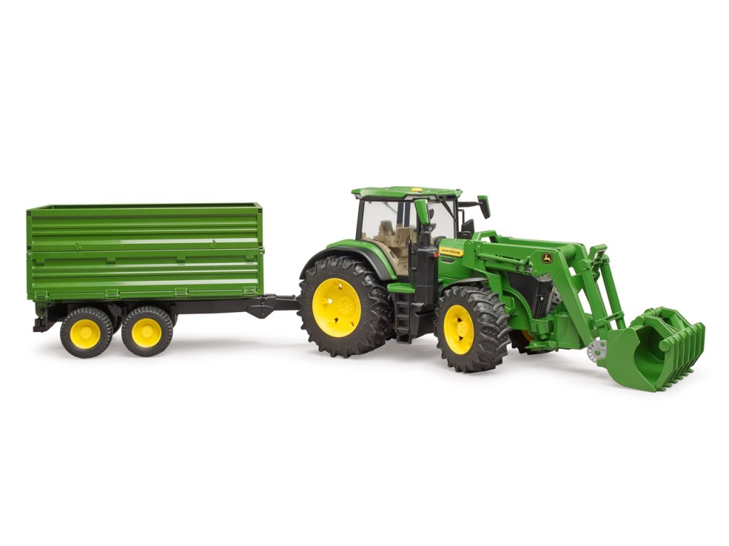 Traktory John Deere řady 7R: kombinují nízkou celkovou hmotnost s vysokým výkonem. Tento obratný traktor nejen zrychluje přepravu, ale také posouvá vpřed každé podnikání. Traktor je vybaven mnoha realistickými detaily. Kapota se otevře a odhalí impozantní motor. Dveře lze otevřít a přepravovat postavy bworld v moderní kabině. Pro BRUDER je typická vynikající ovladatelnost a jízdní komfort díky vestavěné kyvadlové nápravě a prodloužení řízení, které lze použít přes střešní okno. Přívěs má sklápěcí funkci. Horní boční stěny lze sejmout a spodní boční stěny otevřít na 3 strany. Díky výškově nastavitelnému zadnímu závěsu traktoru lze pomocí stávajícího čelního nakladače používat a současně nakládat i všechny ostatní přívěsy ze světa zemědělské tématiky. Měřítko: 1:16 Rozměr balení: 19 x 22 x 75 Věk: 3+