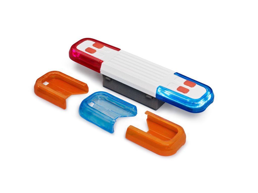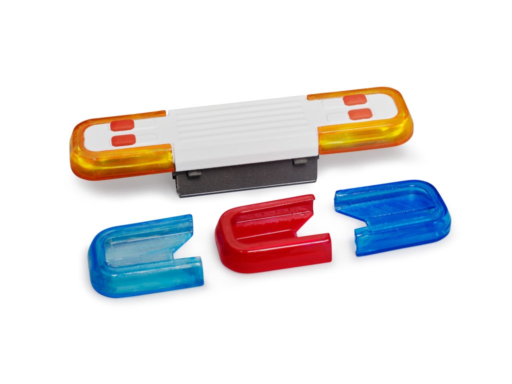 Světelný a zvukový modul pro nákladní vozy zaujme svým moderním designem a obohacuje všechny nákladní vozy BRUDER. Pomocí čtyř různých funkčních tlačítek lze zapnout zvuk motoru, policejní sirénu a požární sirénu a také signál Yelp. Tento signál se používá zejména v provozu v hustém provozu a na křižovatkách k upoutání ještě větší pozornosti, když vozidla záchranné služby blikají modrými světly. Funkce osvětlení je aktivní i po zaznění příslušného zvuku. Lze kombinovat dvě modré čepice (policie), dvě oranžové čepice (např. služební vozidla) a modrou + červenou čepici (US policie). Světelný a zvukový modul lze díky standardním konektorům BRUDER použít různými způsoby. Součástí dodávky je také adaptér, s nímž lze modul světla a zvuku použít na všech nákladních vozidlech se střešním oknem. Balení je navrženo tak, aby bylo možné modul před zakoupením otestovat. Funkce automatického vypnutí po 30 sekundách. Okamžité vypnutí příslušné funkce opětovným stisknutím tlačítka. Baterie: 3 x AAA, jsou součástí. Rozměry modulu: 3 x13 x 2,5 cm. Rozměry balení: 16 x 15,8 x 14,8 cm. Věk: 4+