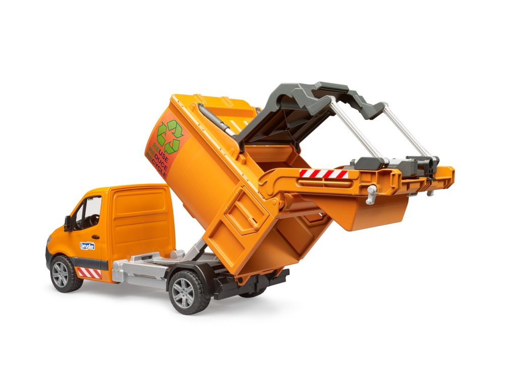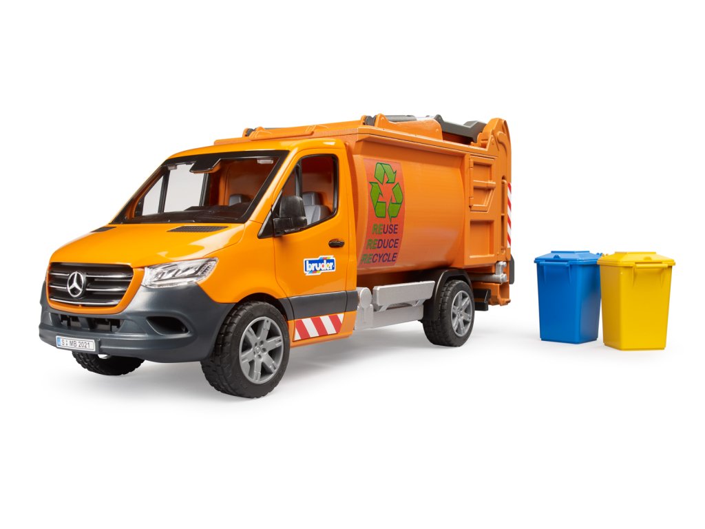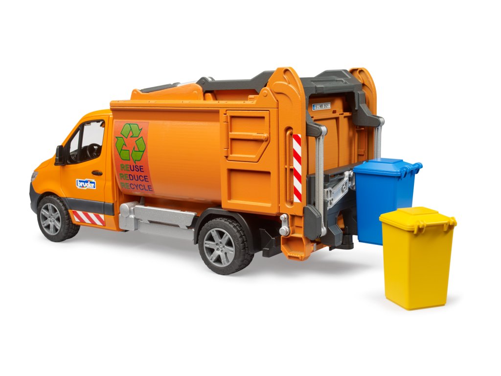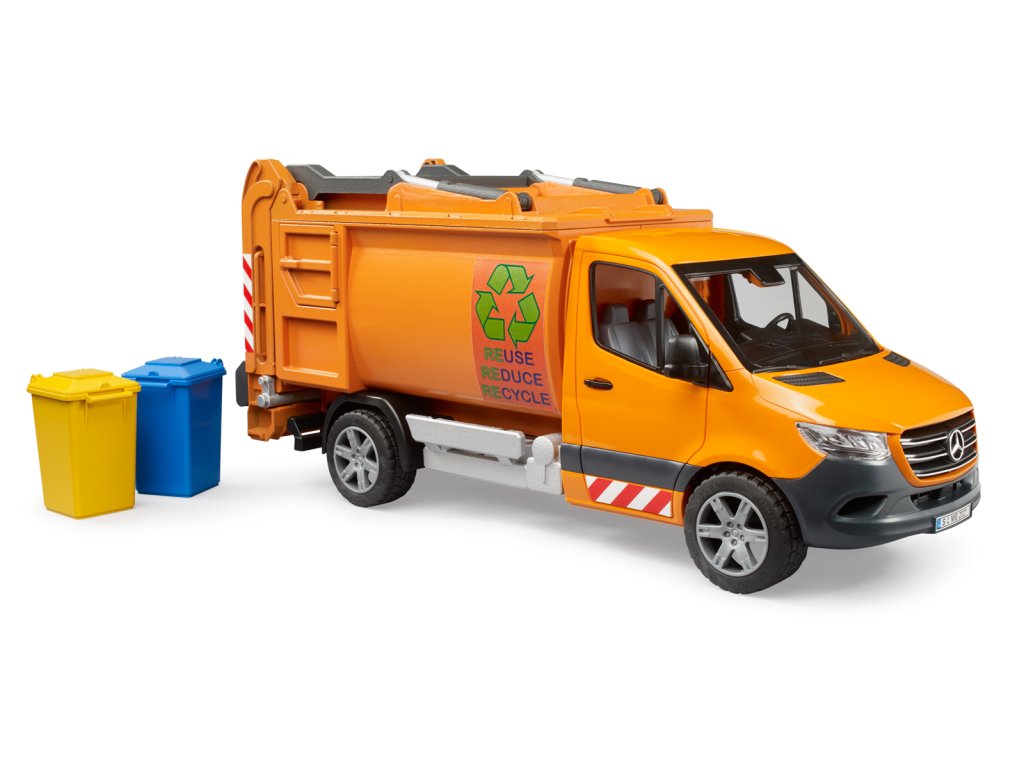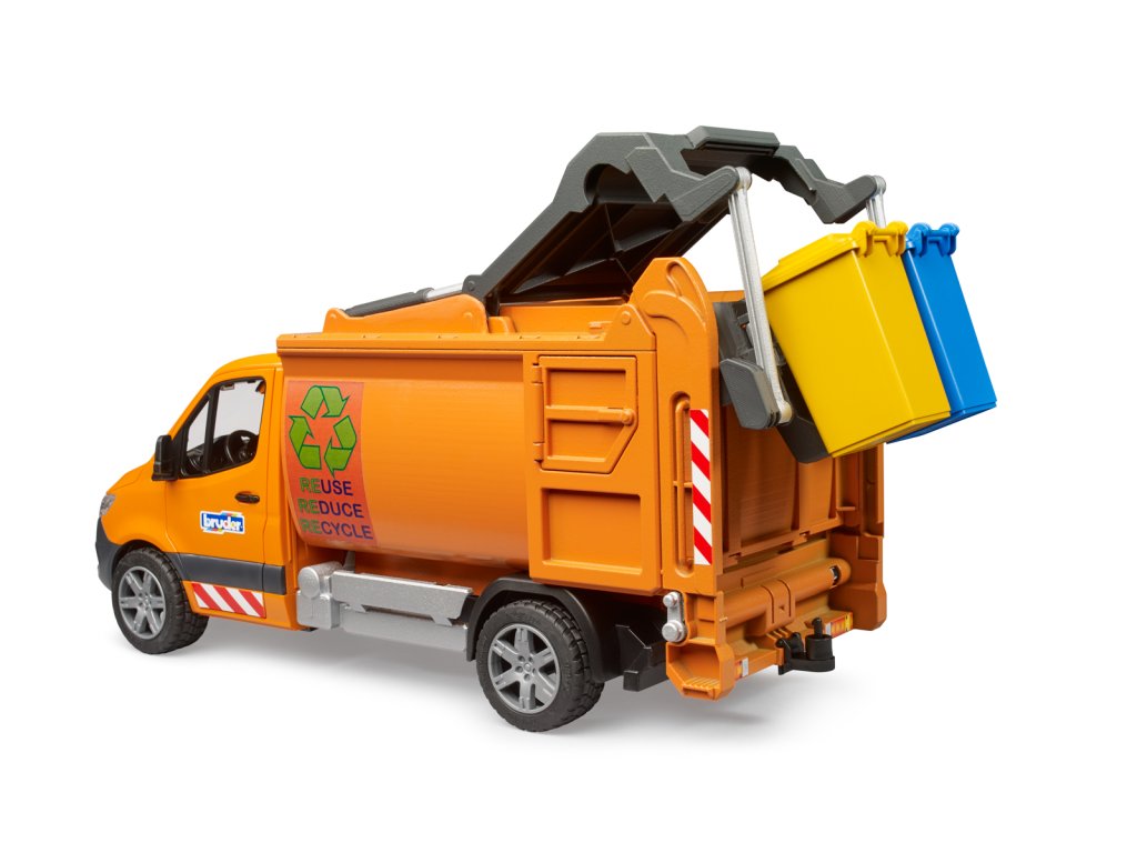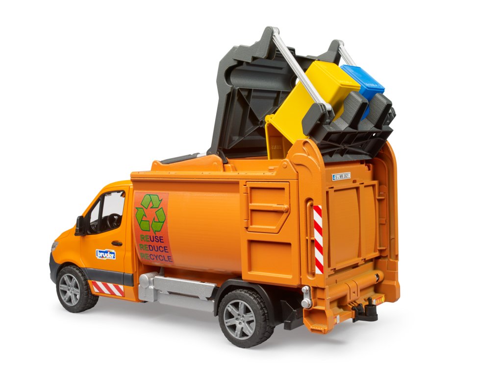 Výhledový, efektivní, spolehlivý – tak Mercedes Benz popisuje nový Sprinter. Kompaktní vůz pro svoz odpadu je k dispozici v úzkých městských částech a v pěších zónách. Toto důležité vozidlo pro všechny poskytovatele komunálních služeb se nyní opět objevuje v měřítku 1:16. Malé popelnice a pytle na odpad lze vyprazdňovat se stejným důrazem na detail jako originál. Dvě boční dvířka jsou zde pro pytle a zapomenuté odpadky. Při vyprazdňování popelnic nebo kontejnerů na odpad se automaticky otevře horní koncový poklop vozidla. Po spuštění popelnic se poklop opět uzavře. Vozidlo se vyprázdní odemknutím a otevřením zadních výklopných dveří. Sada popelnic BRUDER (č. položky 02607) je k dispozici s vozidlem. 44,2 cm × 16,5 cm × 19,8 cm. Vyrobeno z vysoce kvalitního ABS plastu. Rozměry vozidla: 44,2 cm × 16,5 cm × 19,8 cm. Věk: 4+