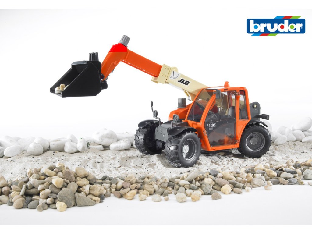 Konstrukční vozy - JLG 2505 nakladač s teleskopickým předním ramenem 1:16. Tento teleskopický nakladač je vyroben z vysoce kvalitního a odolného plastu.Model je pečlivě ovládán čtyřmi stříbrnými otočnými ovladači. Kromě nastavení výšky ramene lze rameno prodloužit až do délky 40 cm. Naklápět lze i přední lžíci. Nakladač má plně funkční čtyřkolové řízení - zatáčejí obě nápravy protisměrně, což umožňuje nakladači zmenšit poloměr zatáčení. Kabina je z průhledného nerozbitného polykarbonátu. Vozidlo je vybaveno profilovými pneumatikami, které si poradí v každém terénu. Je vhodné do interiéru i exteriéru. Rozměry 360 x 140 x 140 Upozornění: Toto zboží není určeno pro distribuci v ČR.